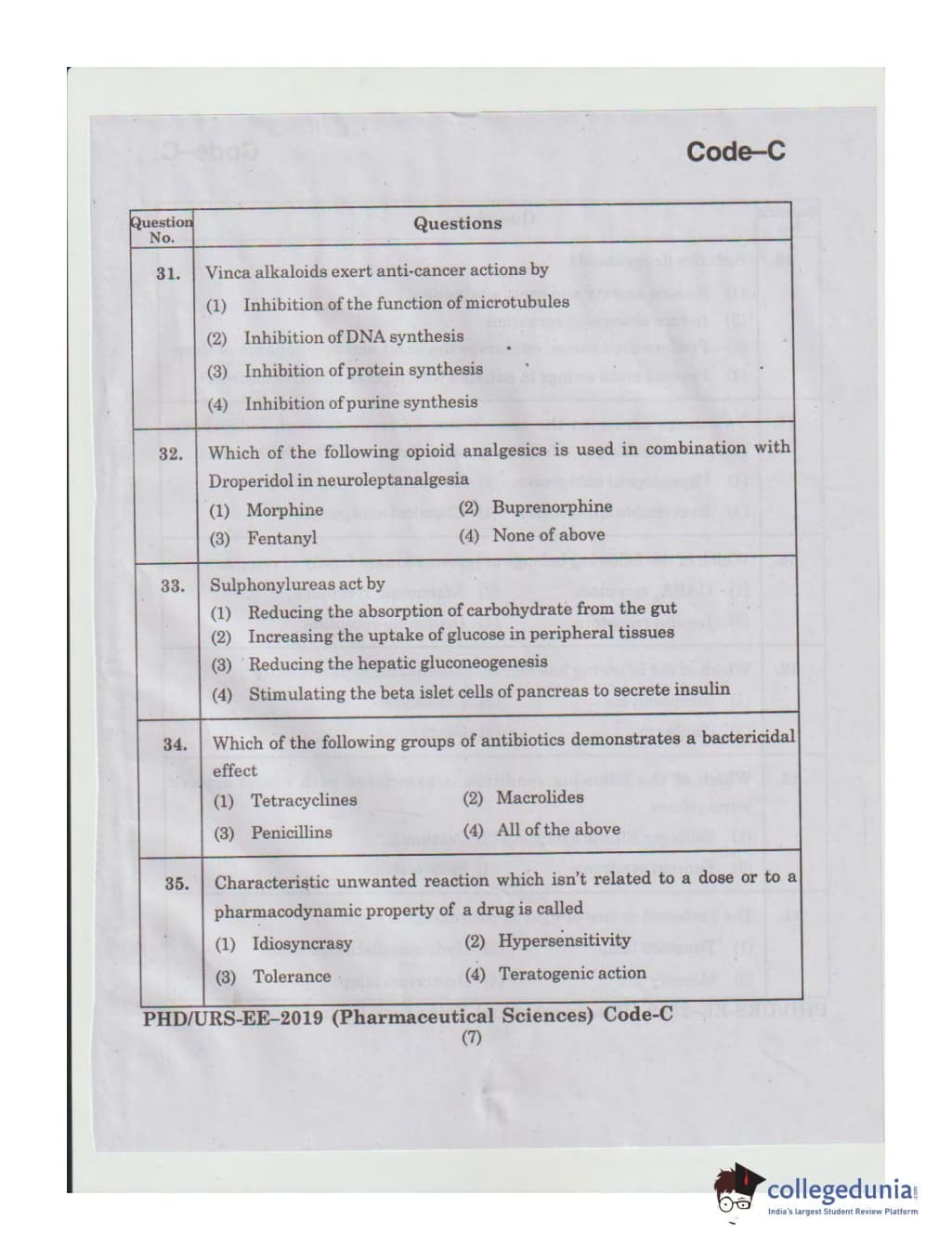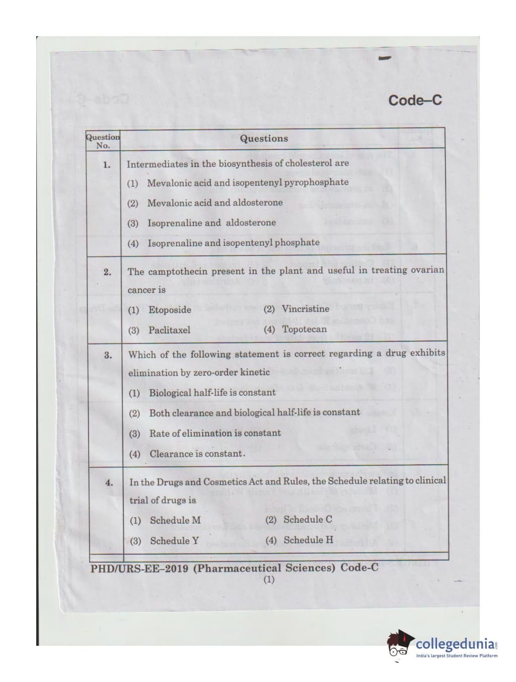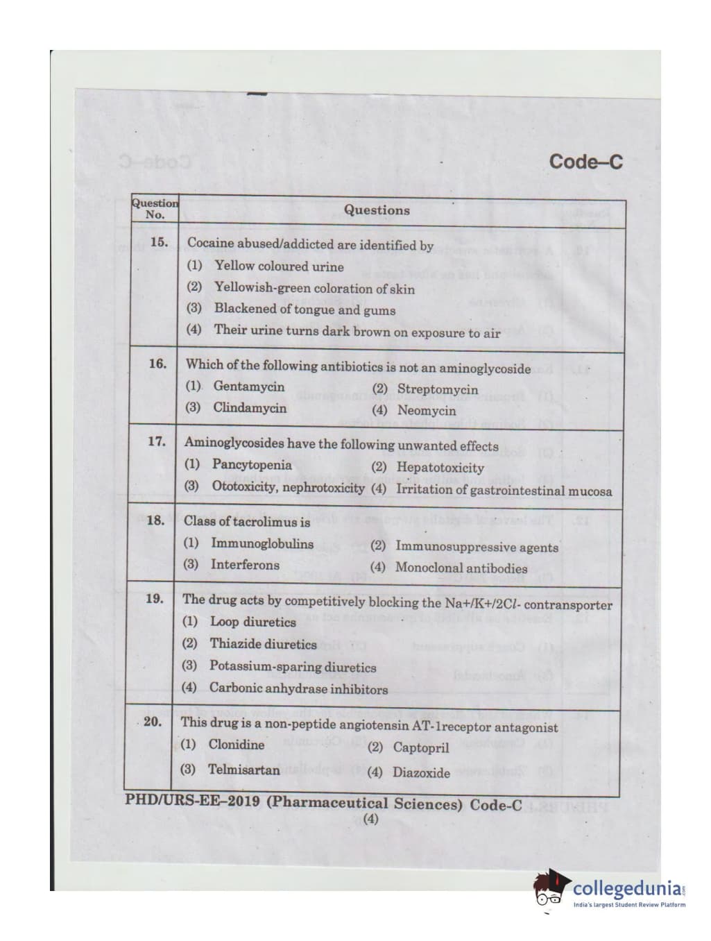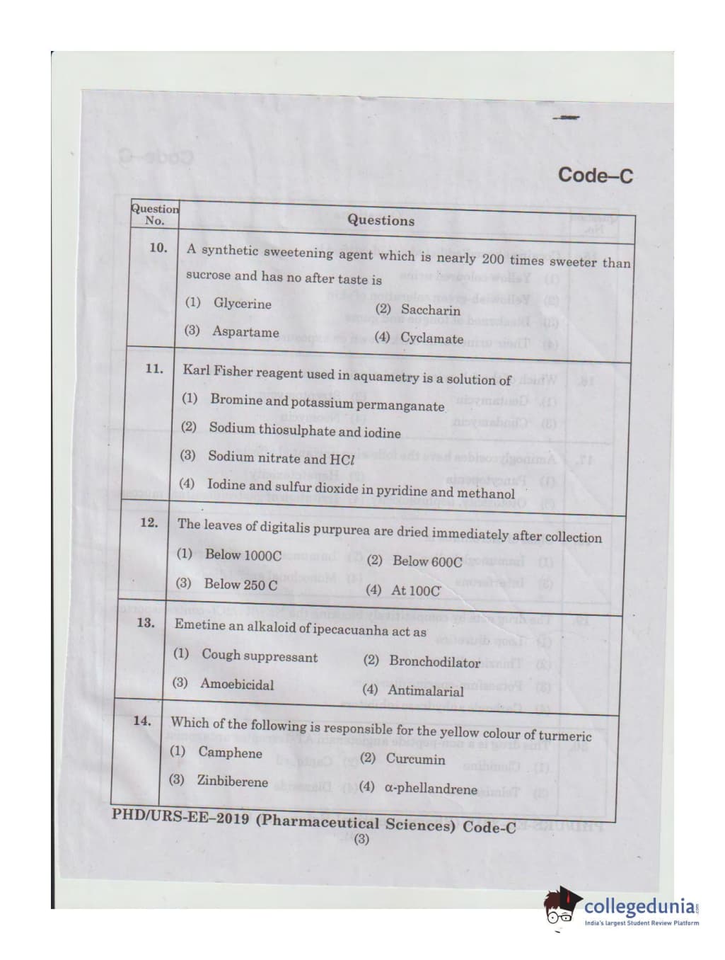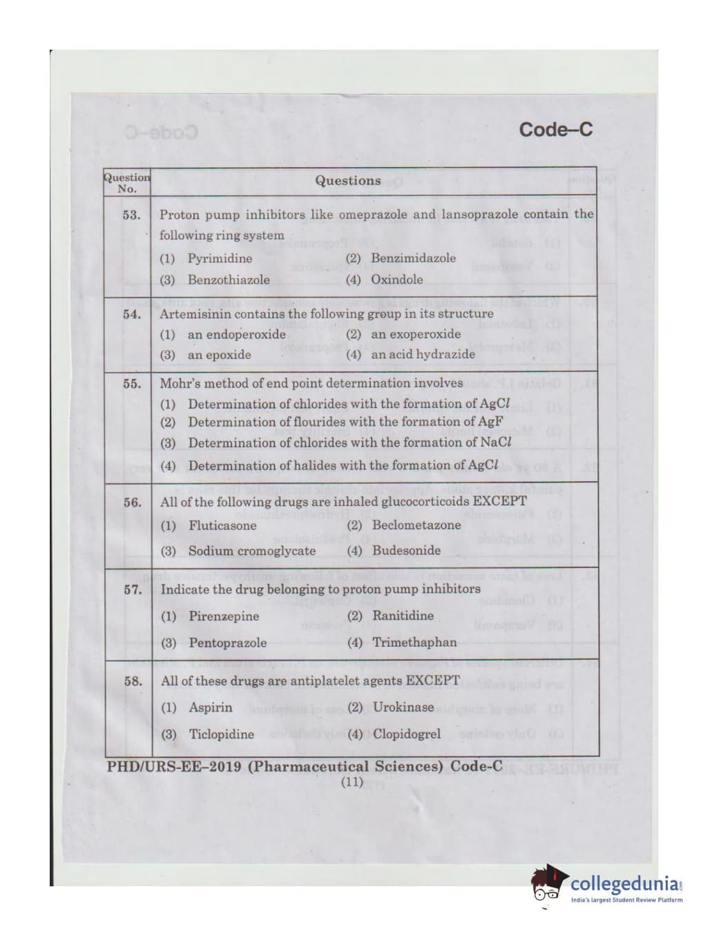 MDUCEE 2019 Ph.D./M.Phil./URS Pharmaceutical Sciences Set C Question Paper with Answer Key PDFs