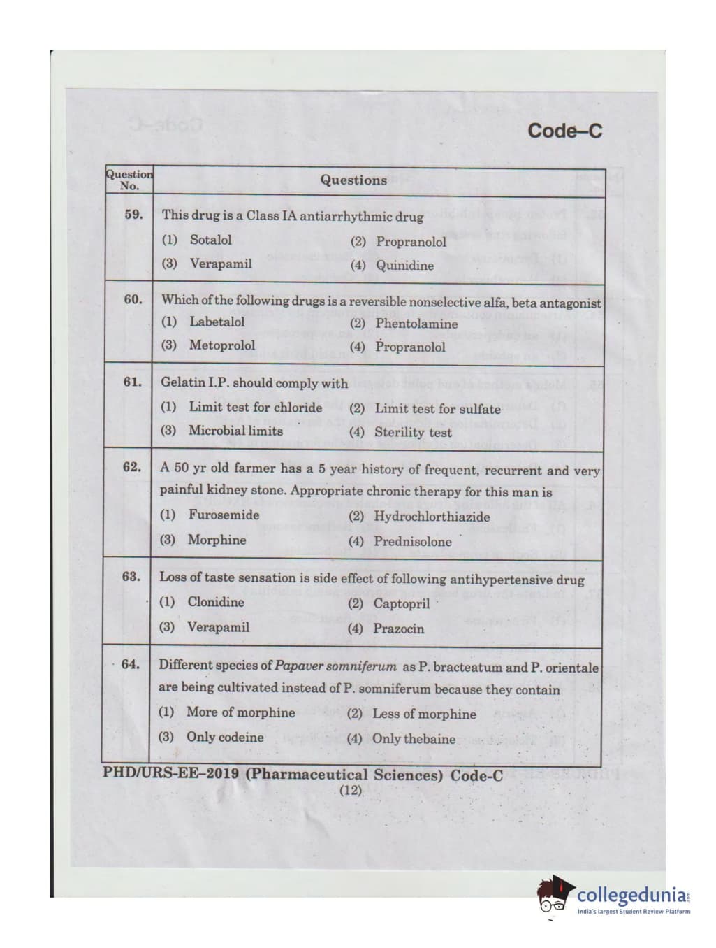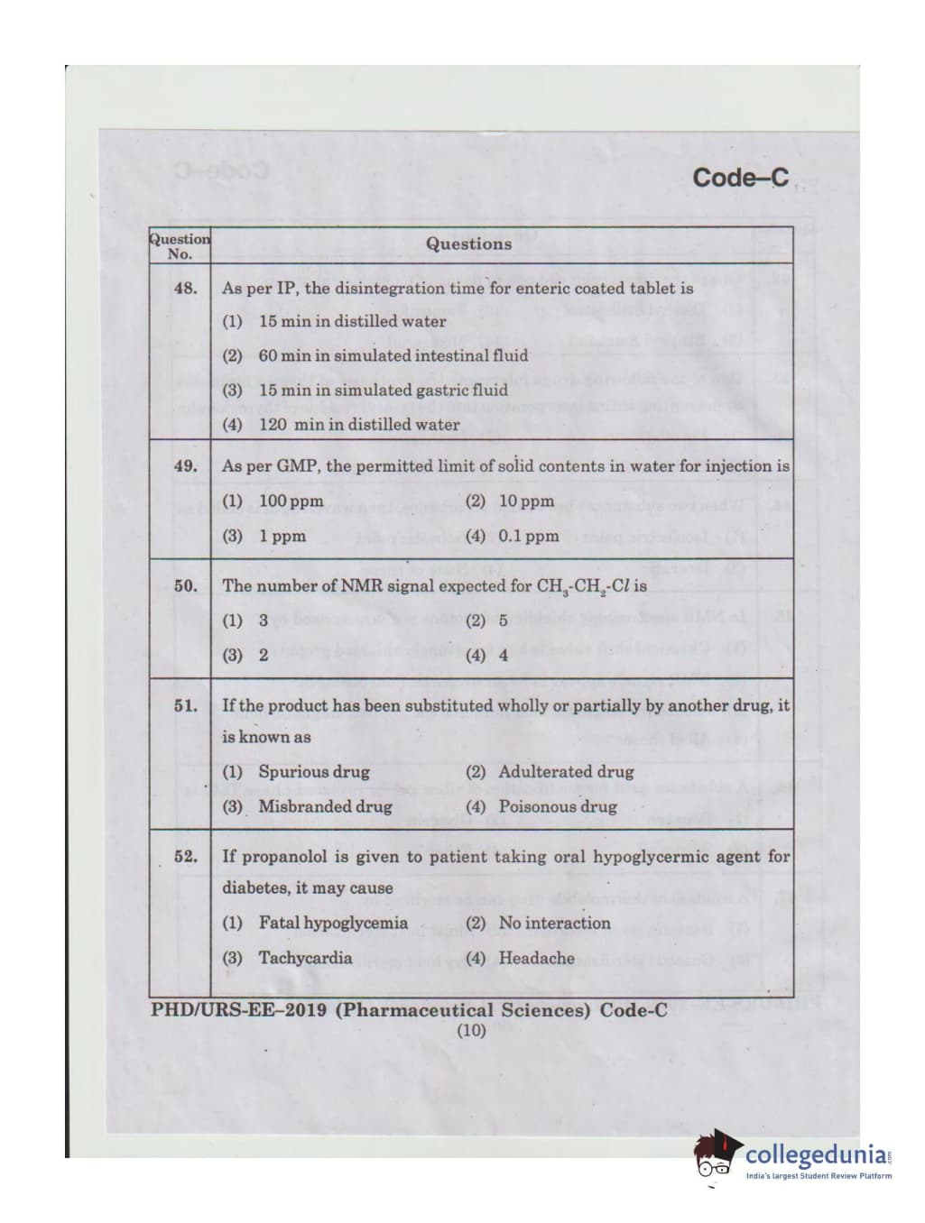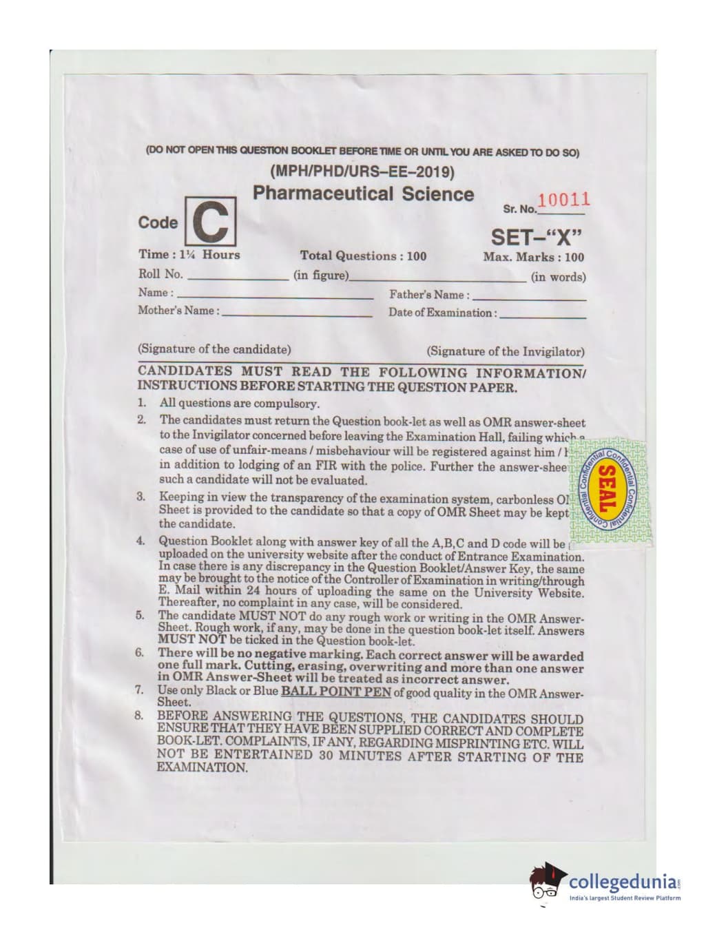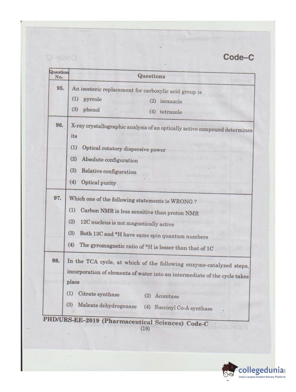 MDUCEE 2019 Ph.D./M.Phil./URS Pharmaceutical Sciences Set C Question Paper with Answer Key PDFs