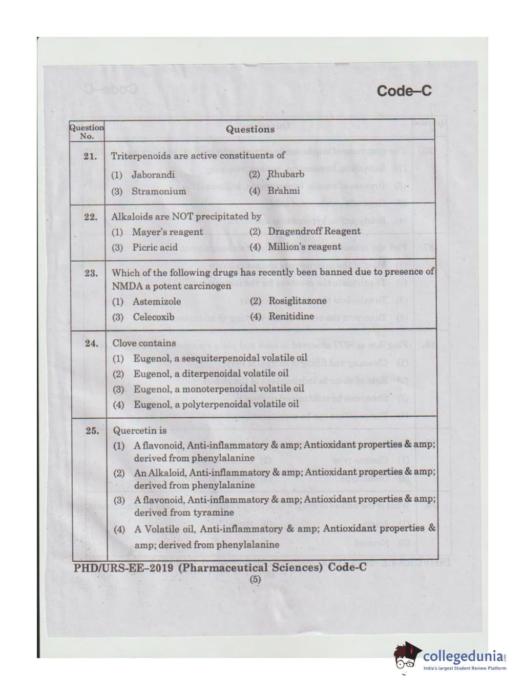 | MDUCEE 2019 Ph.D./M.Phil./URS Pharmaceutical Sciences Set C Question Paper PDF | MDUCEE 2019 Ph.D./M.Phil./URS Pharmaceutical Sciences Set C Answer Key PDF |