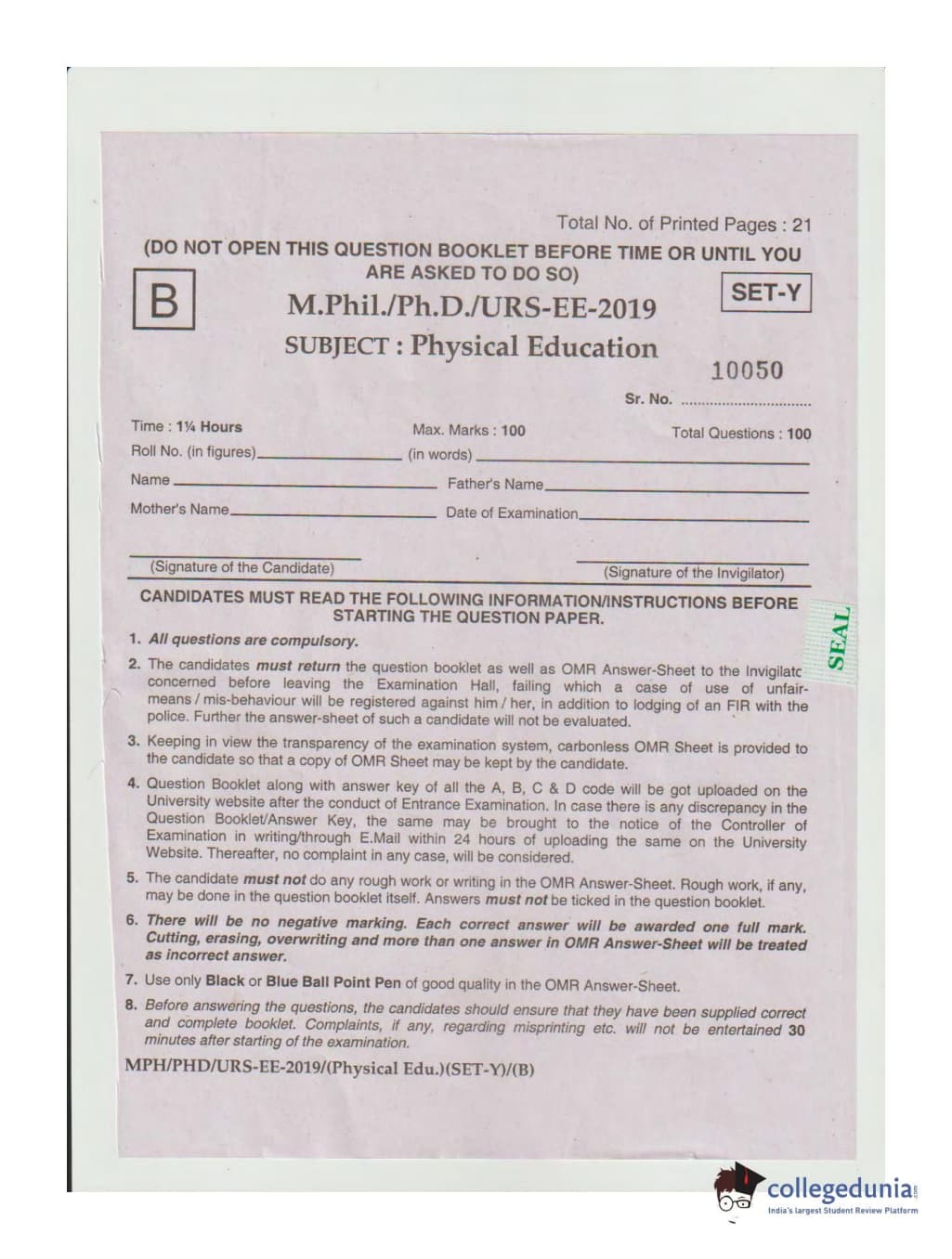 | MDUCEE 2019 Ph.D./M.Phil./URS Physical Education Set B Question Paper PDF | MDUCEE 2019 Ph.D./M.Phil./URS Physical Education Set B Answer Key PDF |
