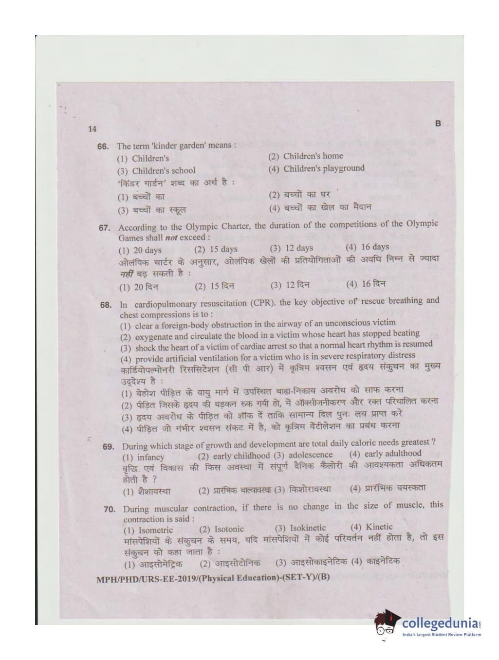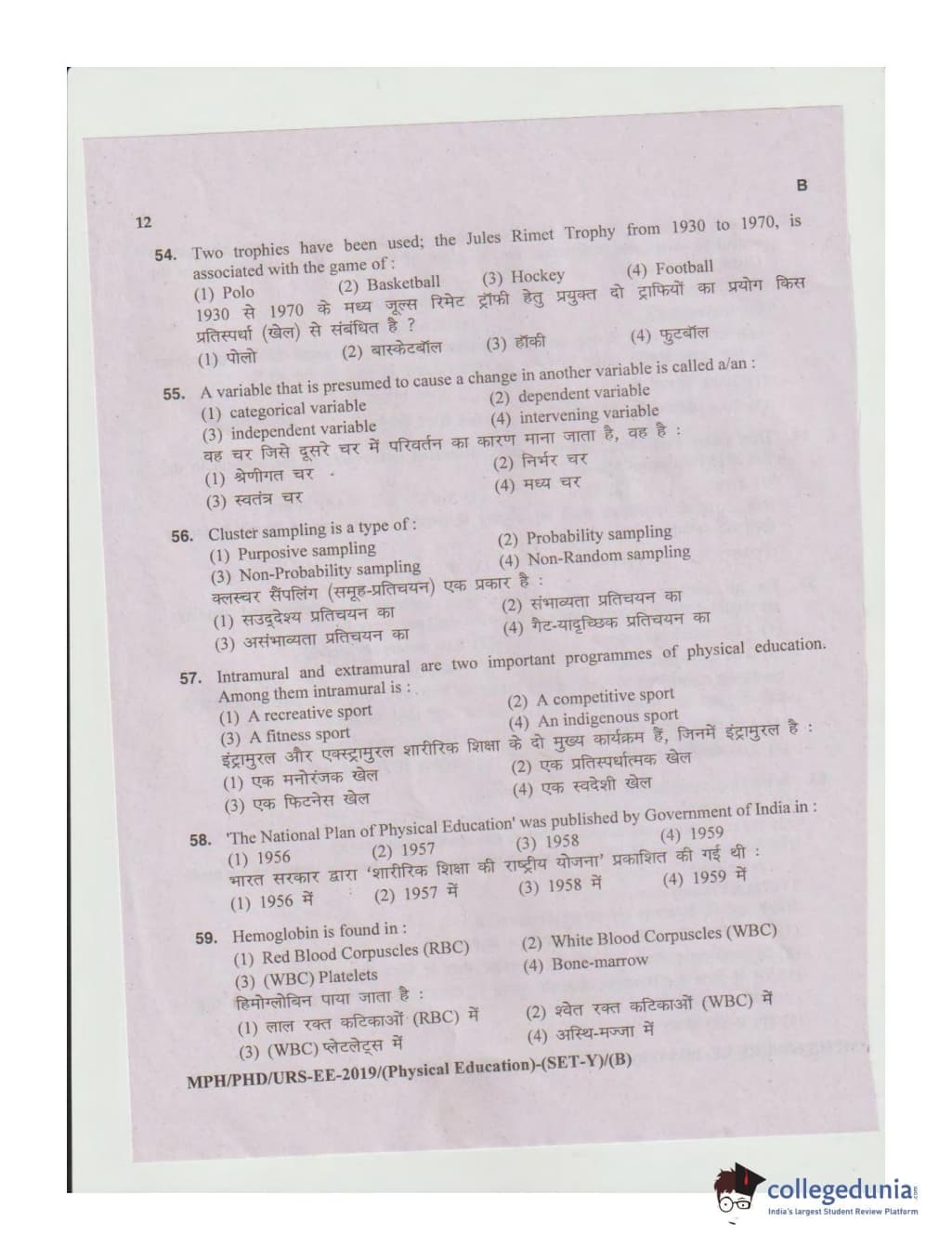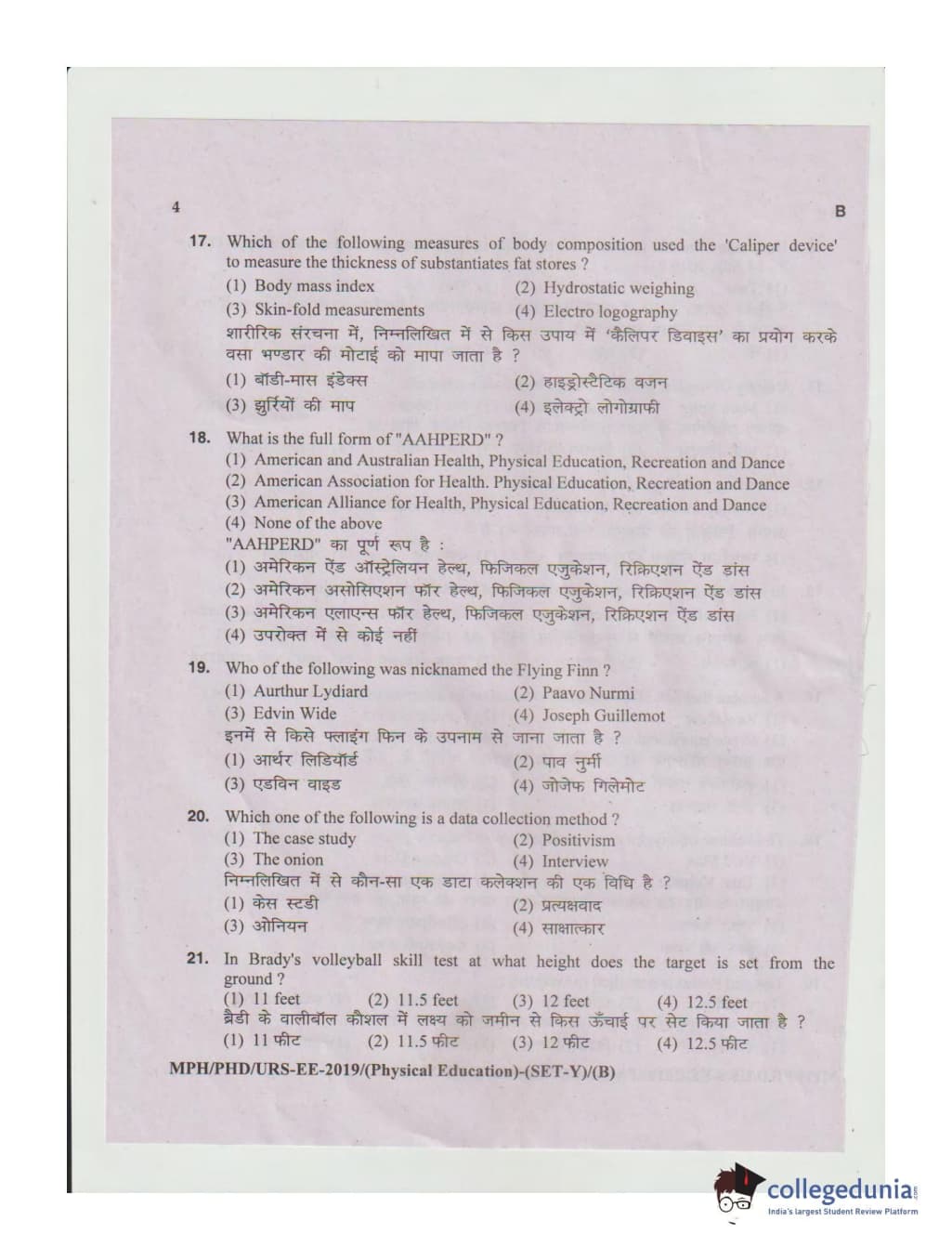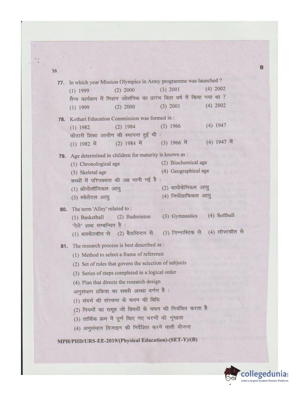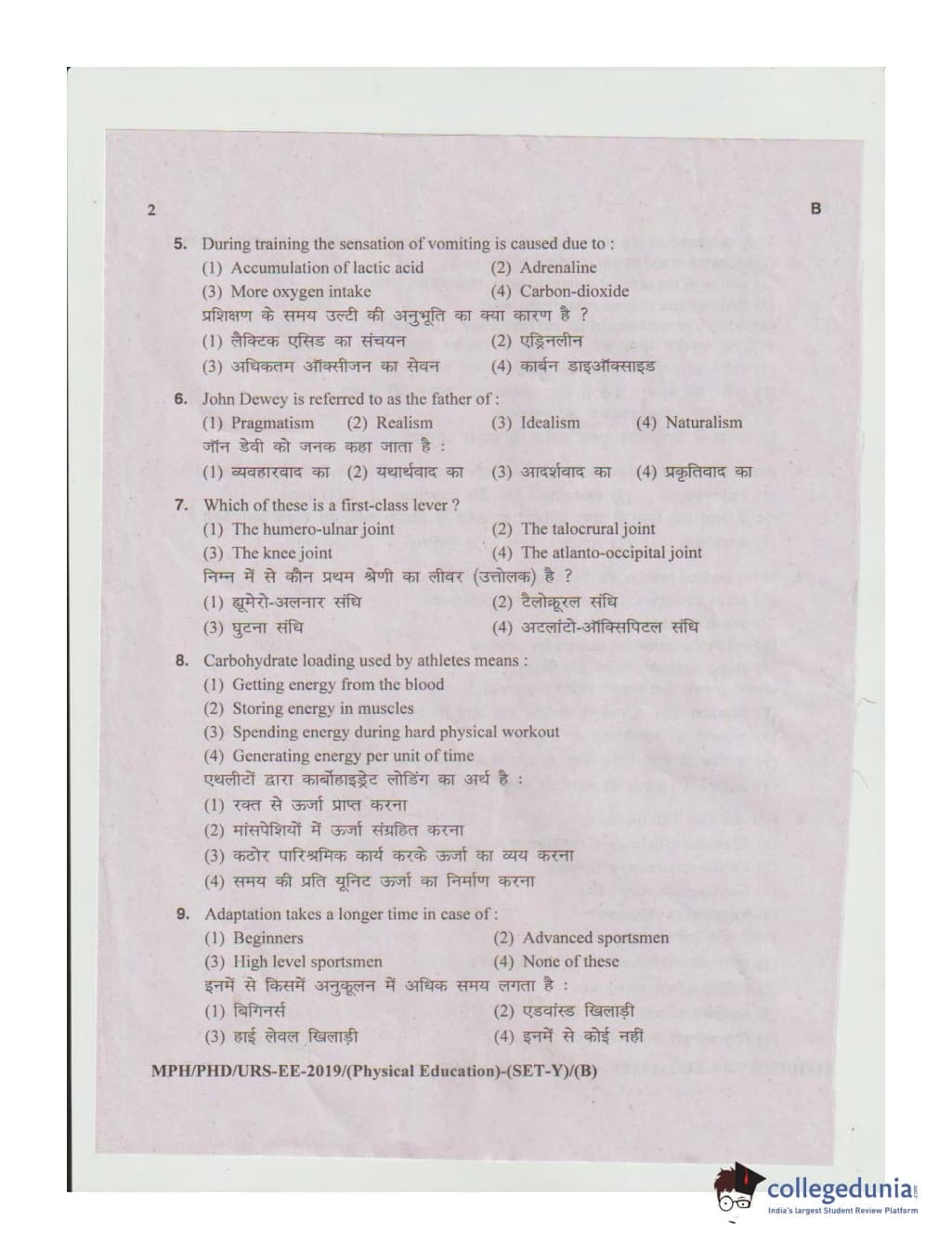 MDUCEE 2019 Ph.D./M.Phil./URS Physical Education Set B Question Paper with Answer Key PDFs