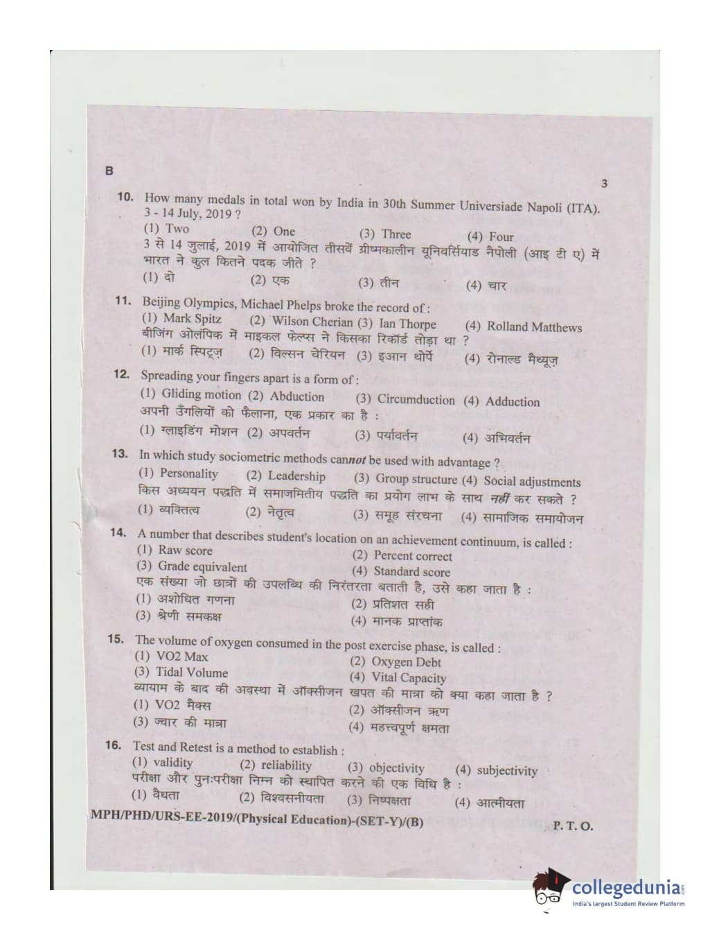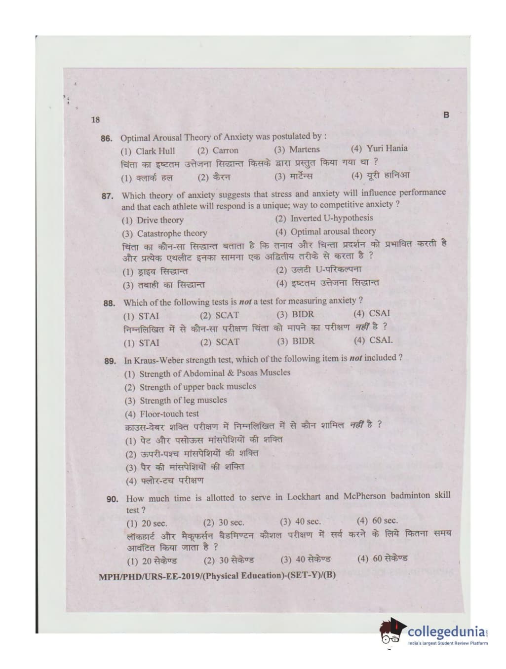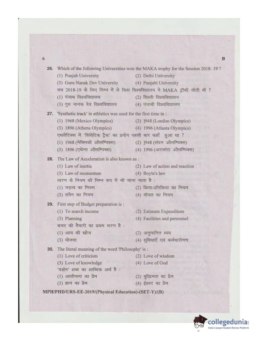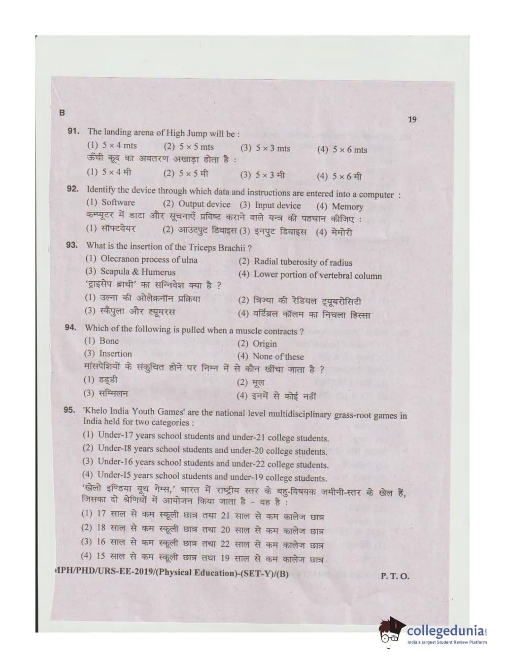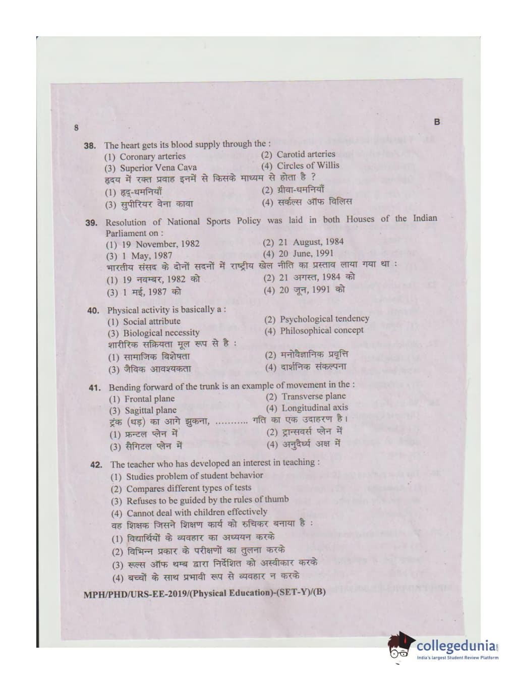 MDUCEE 2019 Ph.D./M.Phil./URS Physical Education Set B Question Paper with Answer Key PDFs