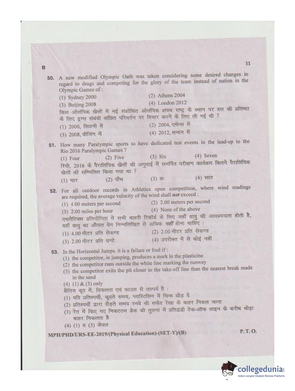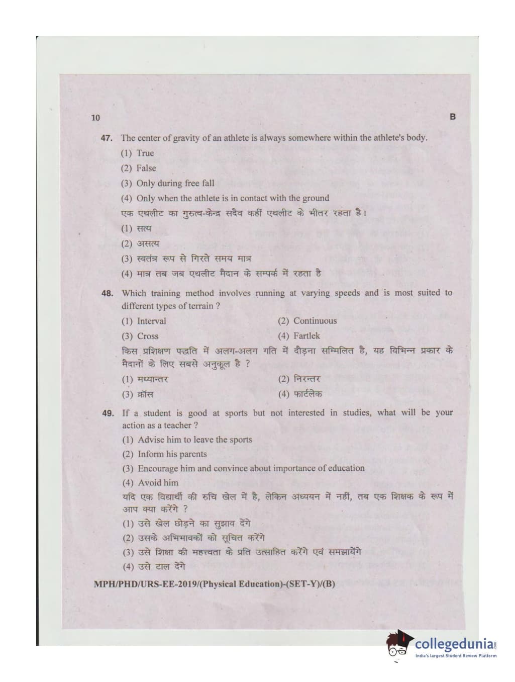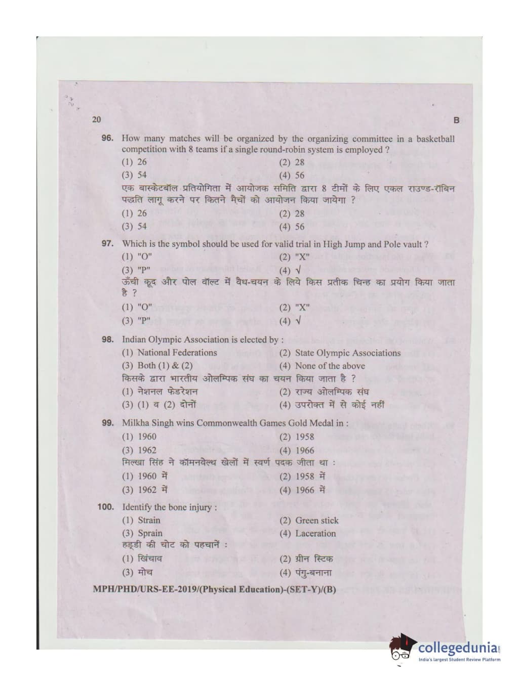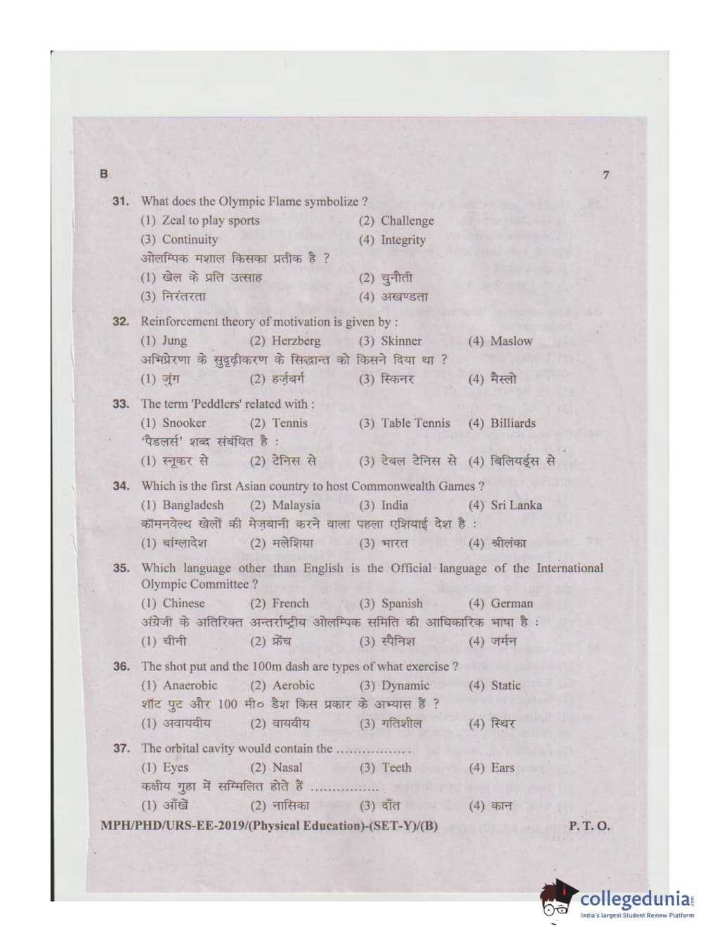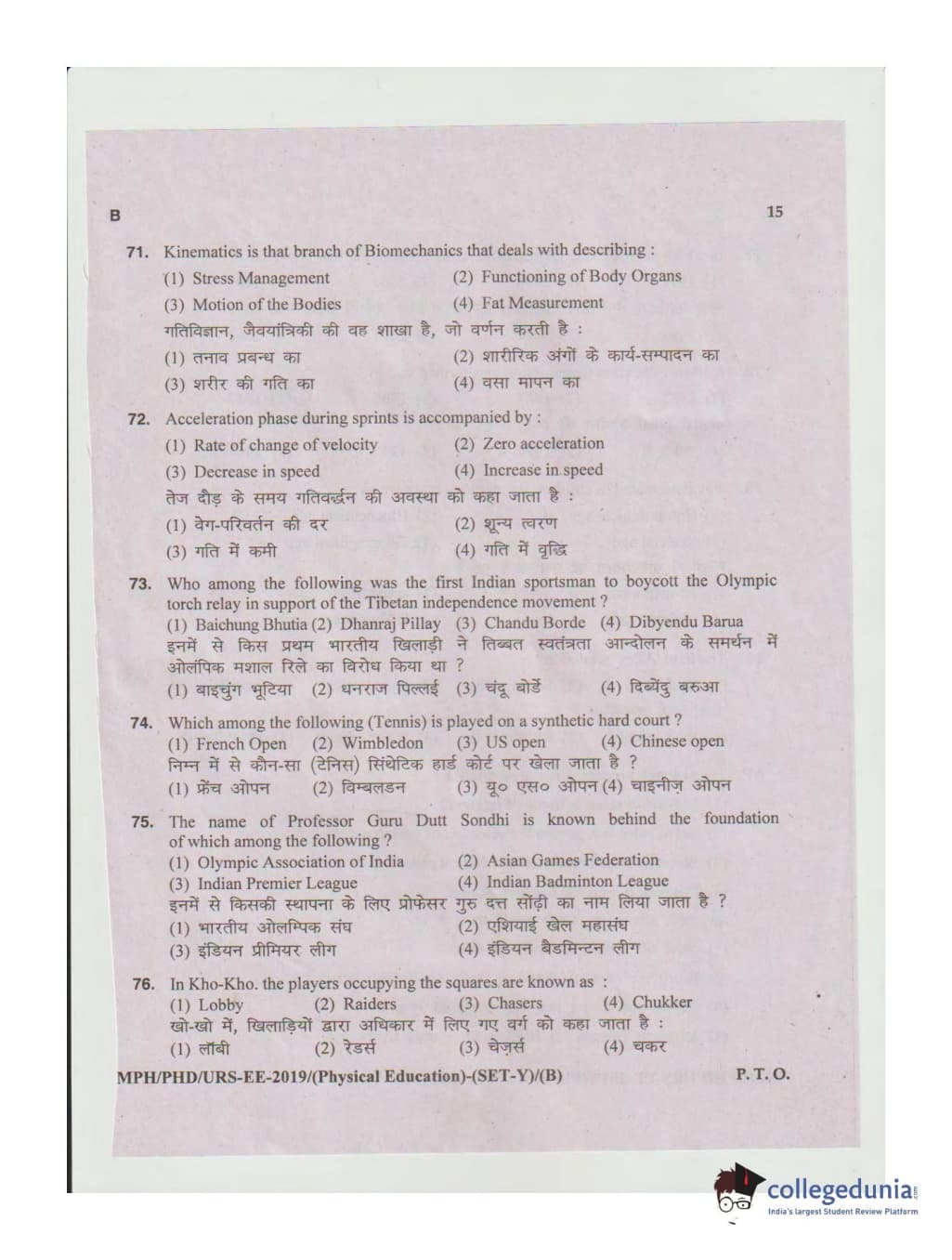 MDUCEE 2019 Ph.D./M.Phil./URS Physical Education Set B Question Paper with Answer Key PDFs