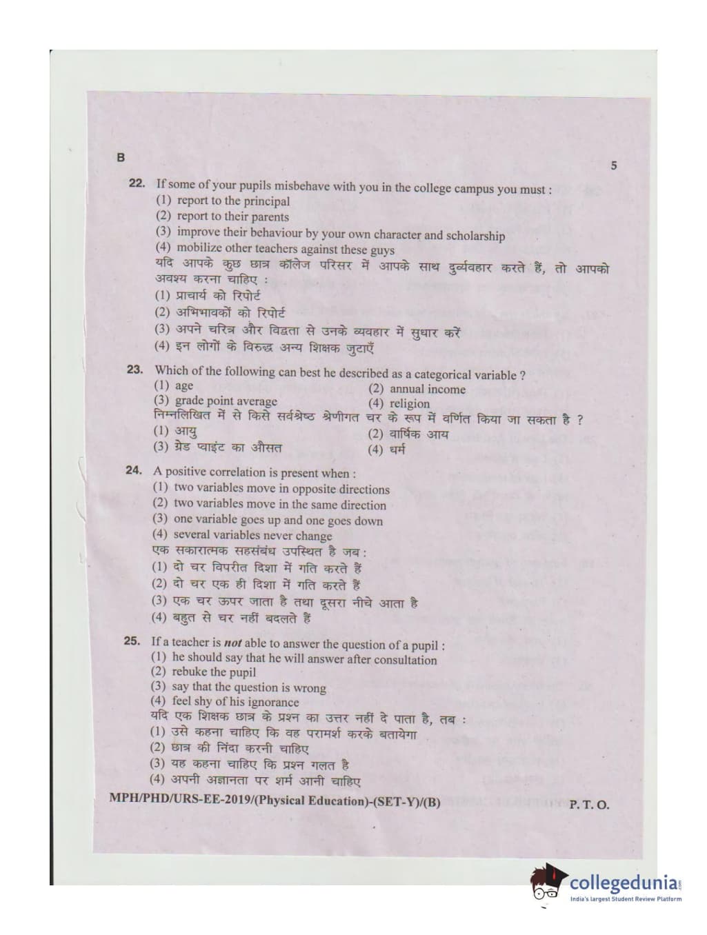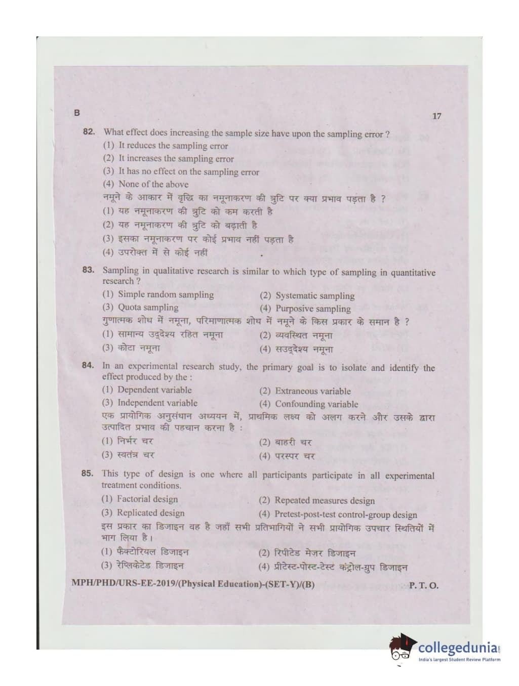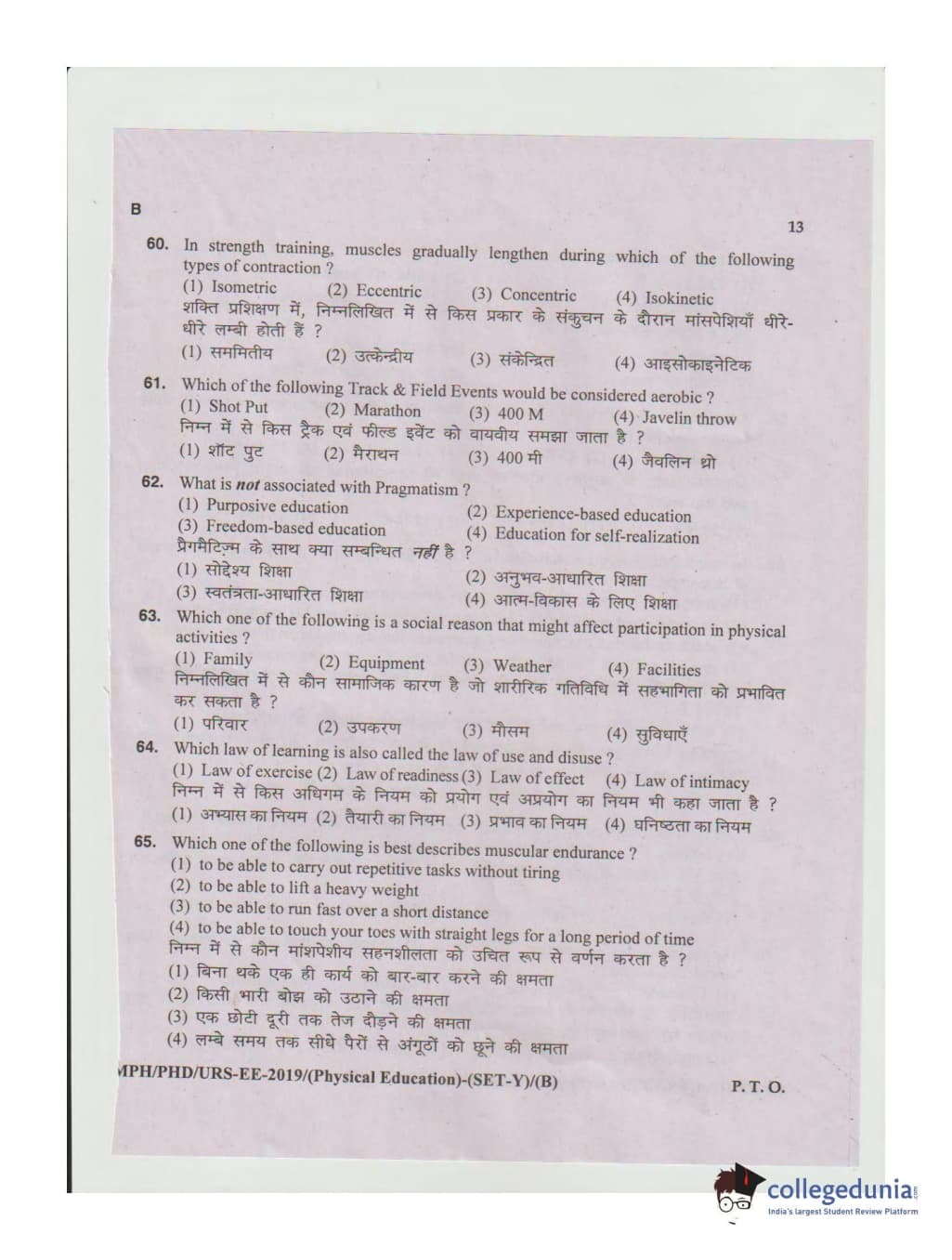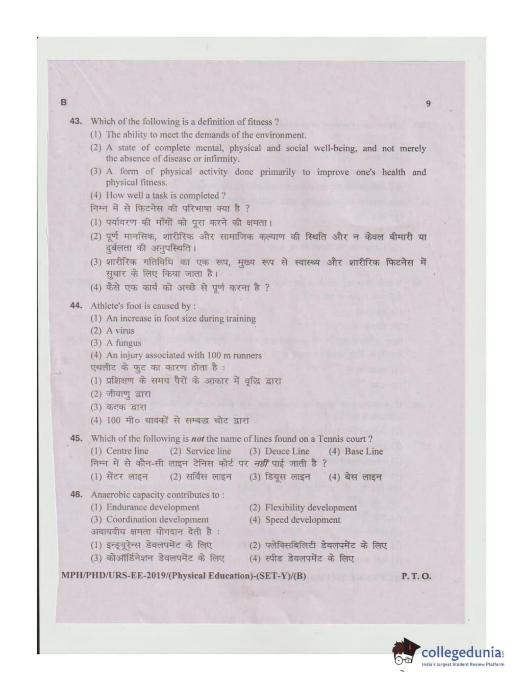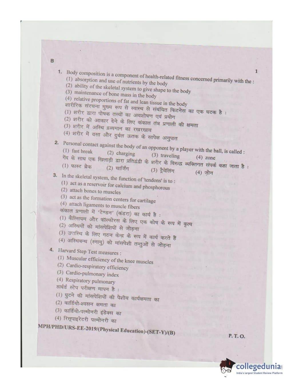 MDUCEE 2019 Ph.D./M.Phil./URS Physical Education Set B Question Paper with Answer Key PDFs