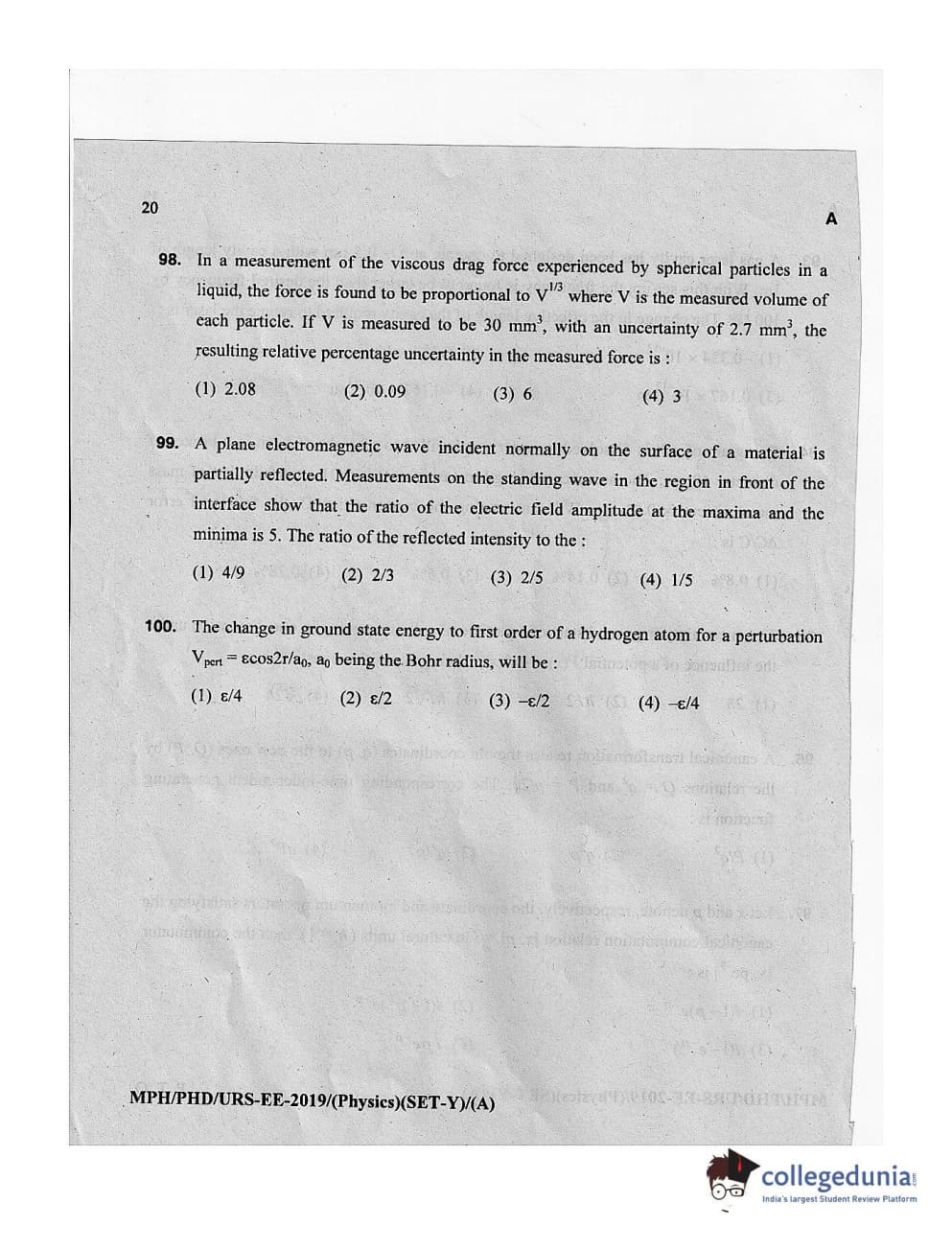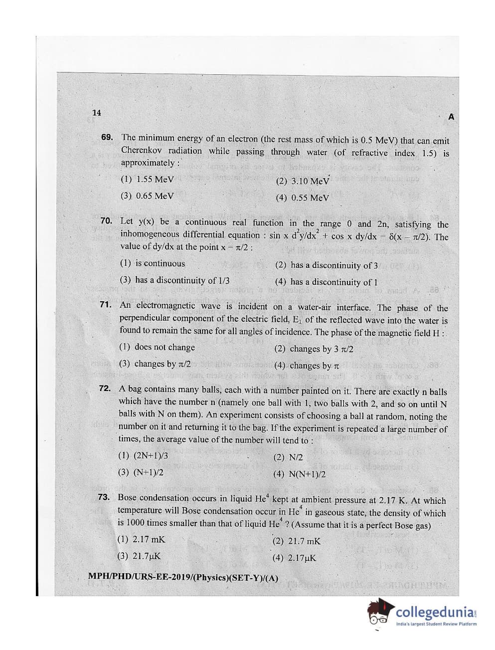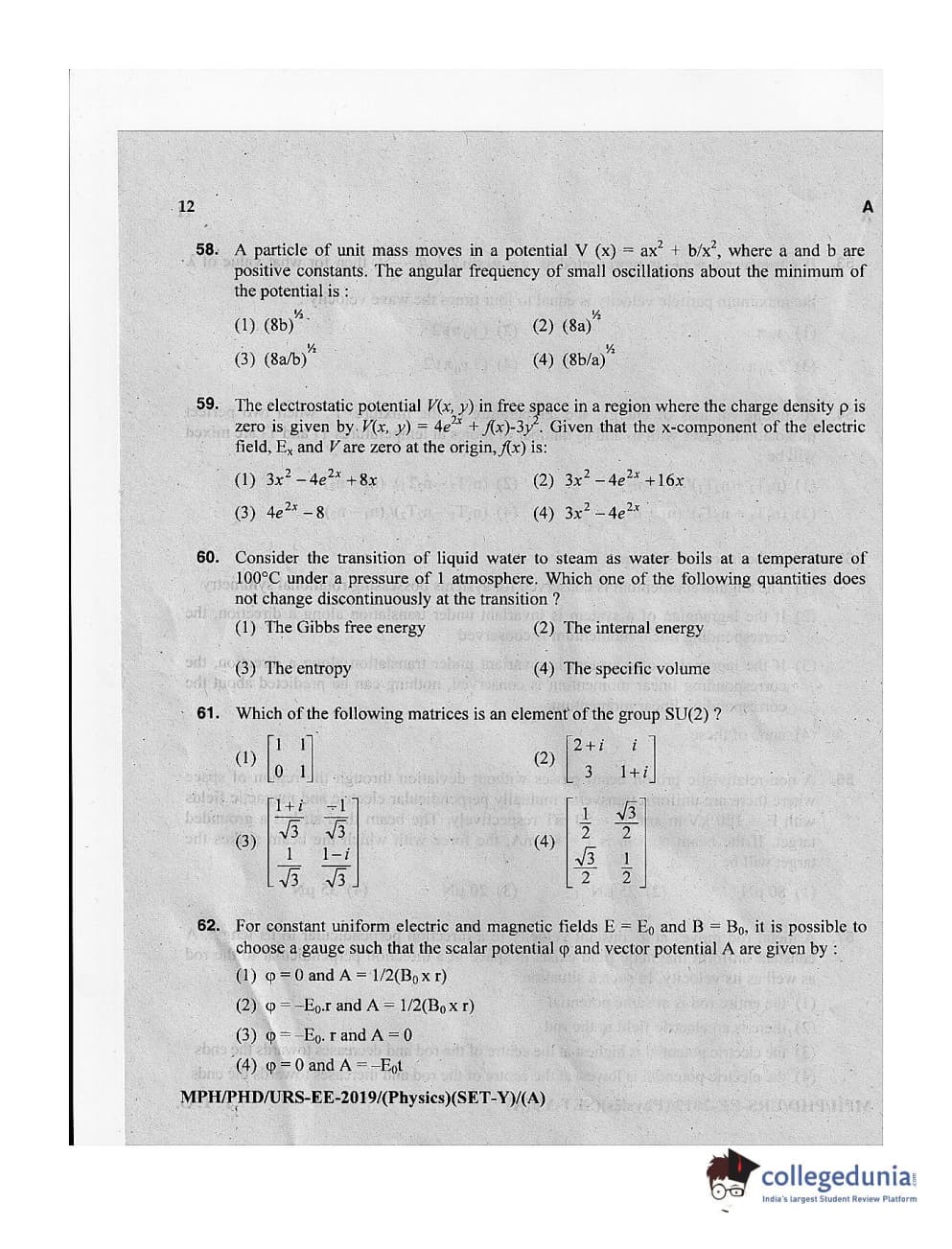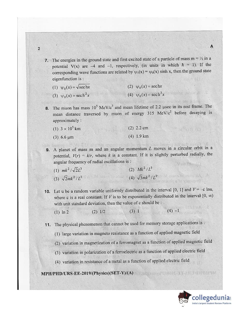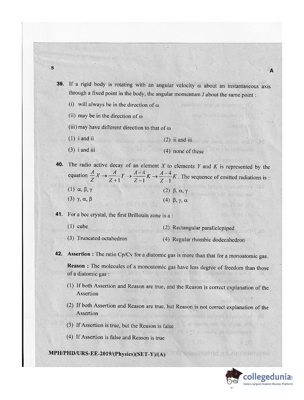 MDUCEE 2019 Ph.D./M.Phil./URS Physics Set A Question Paper with Answer Key PDFs
