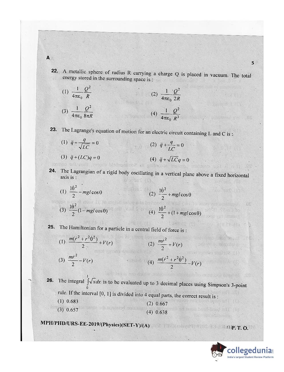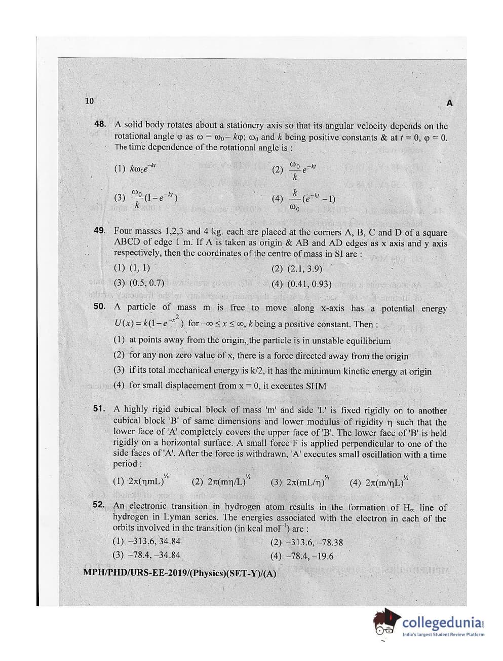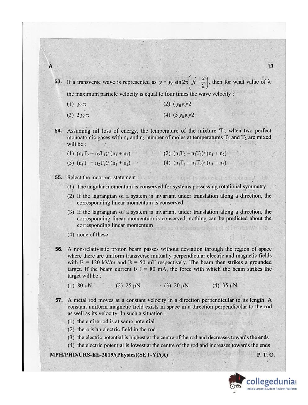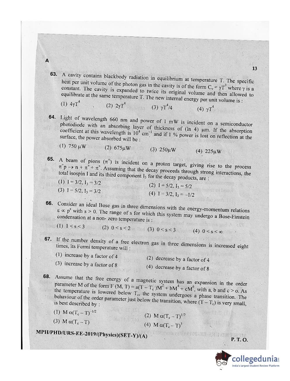 MDUCEE 2019 Ph.D./M.Phil./URS Physics Set A Question Paper with Answer Key PDFs