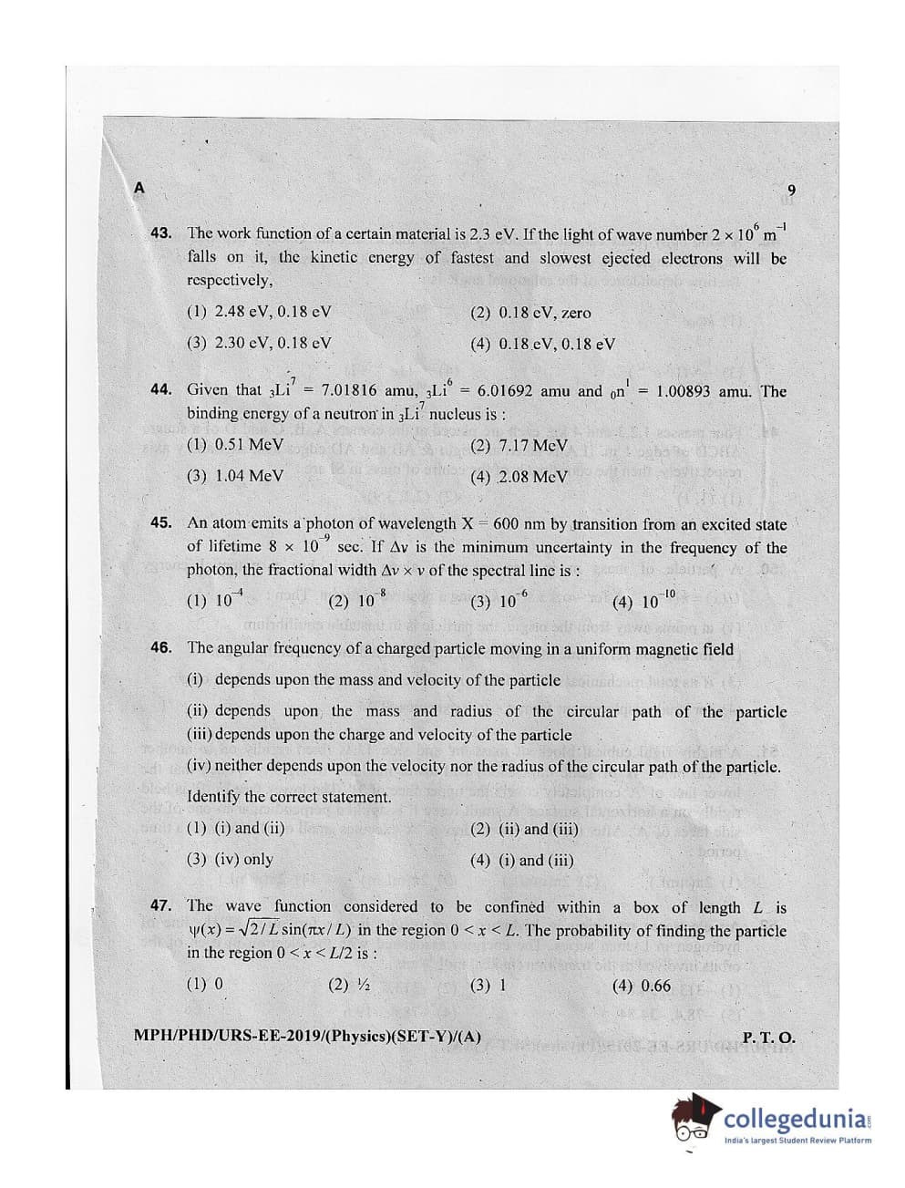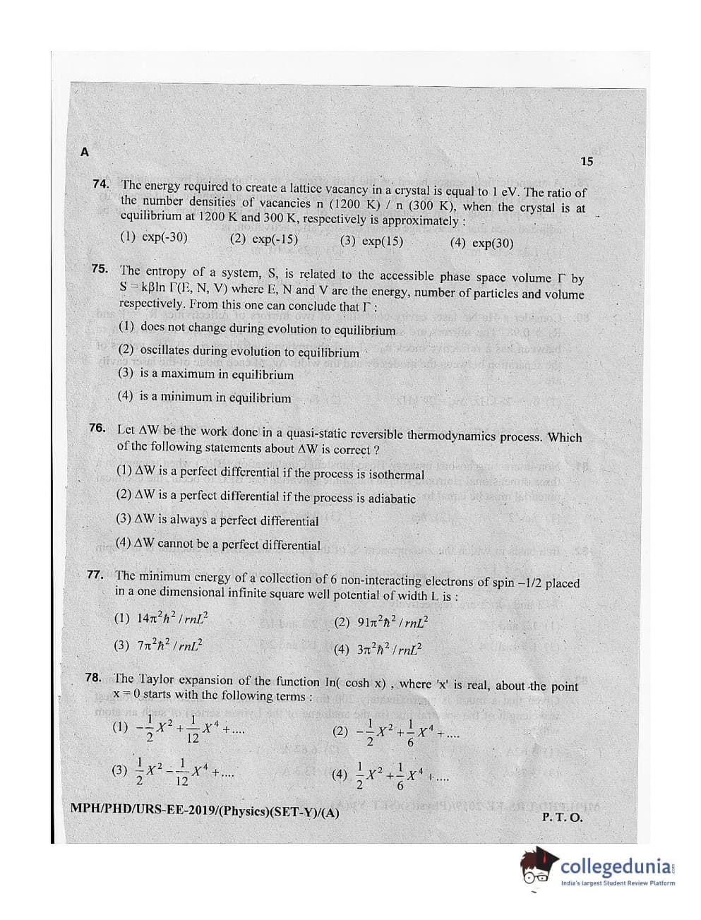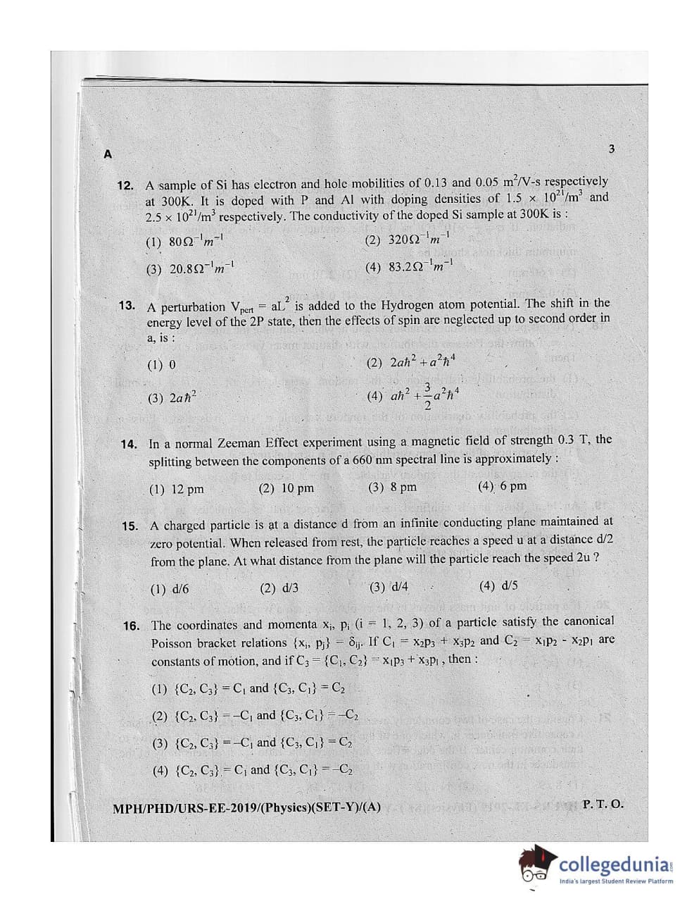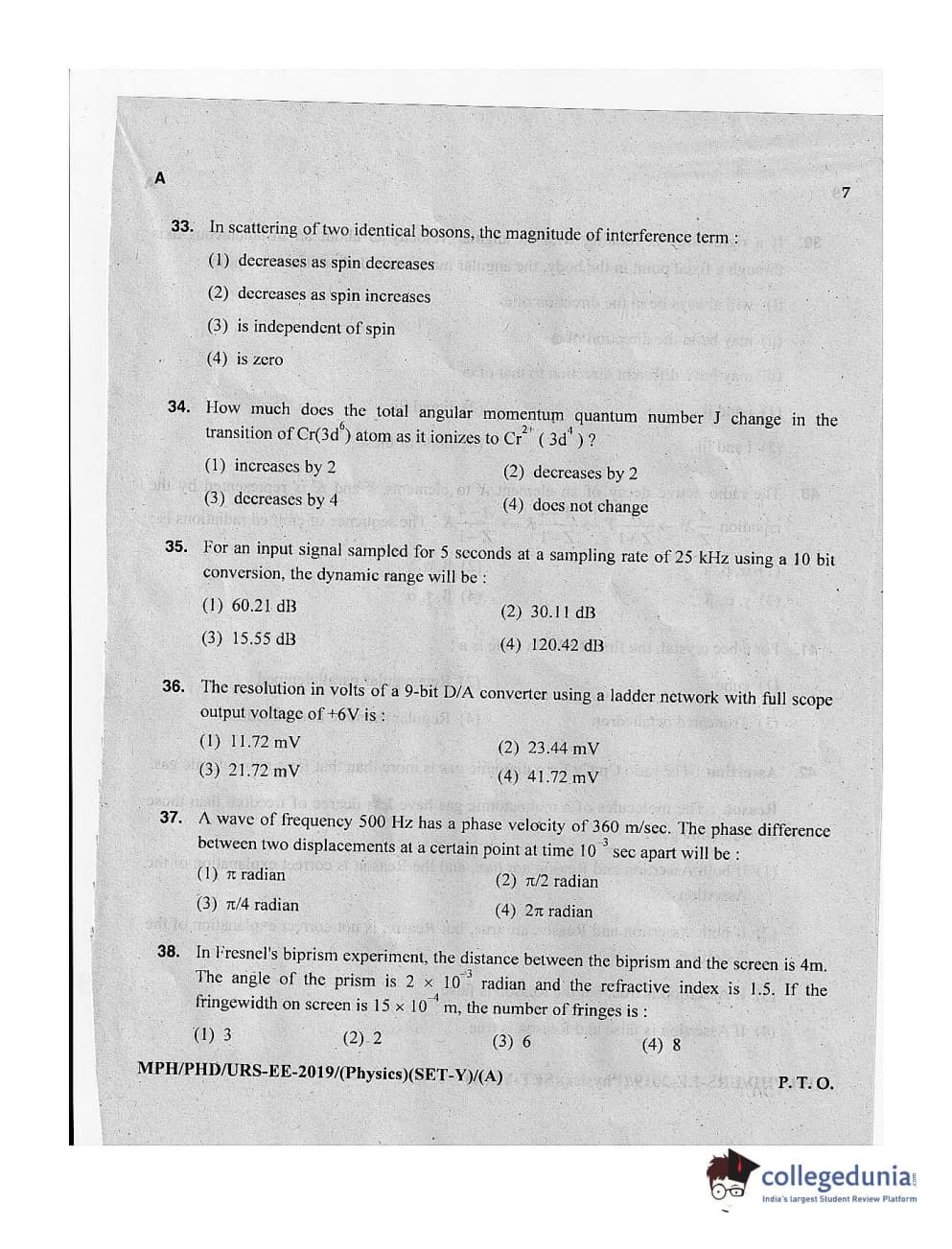 MDUCEE 2019 Ph.D./M.Phil./URS Physics Set A Question Paper with Answer Key PDFs