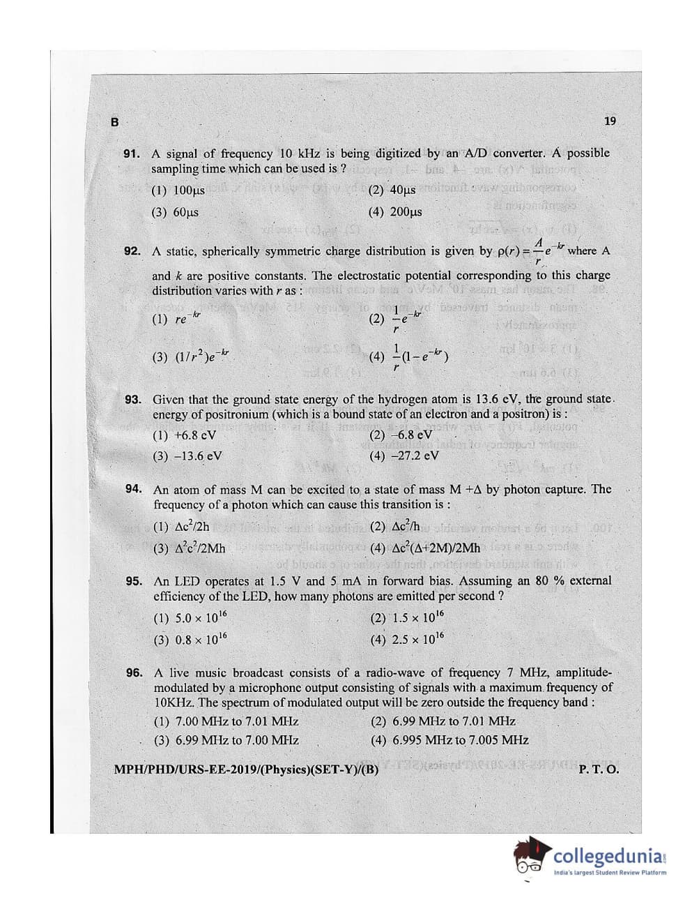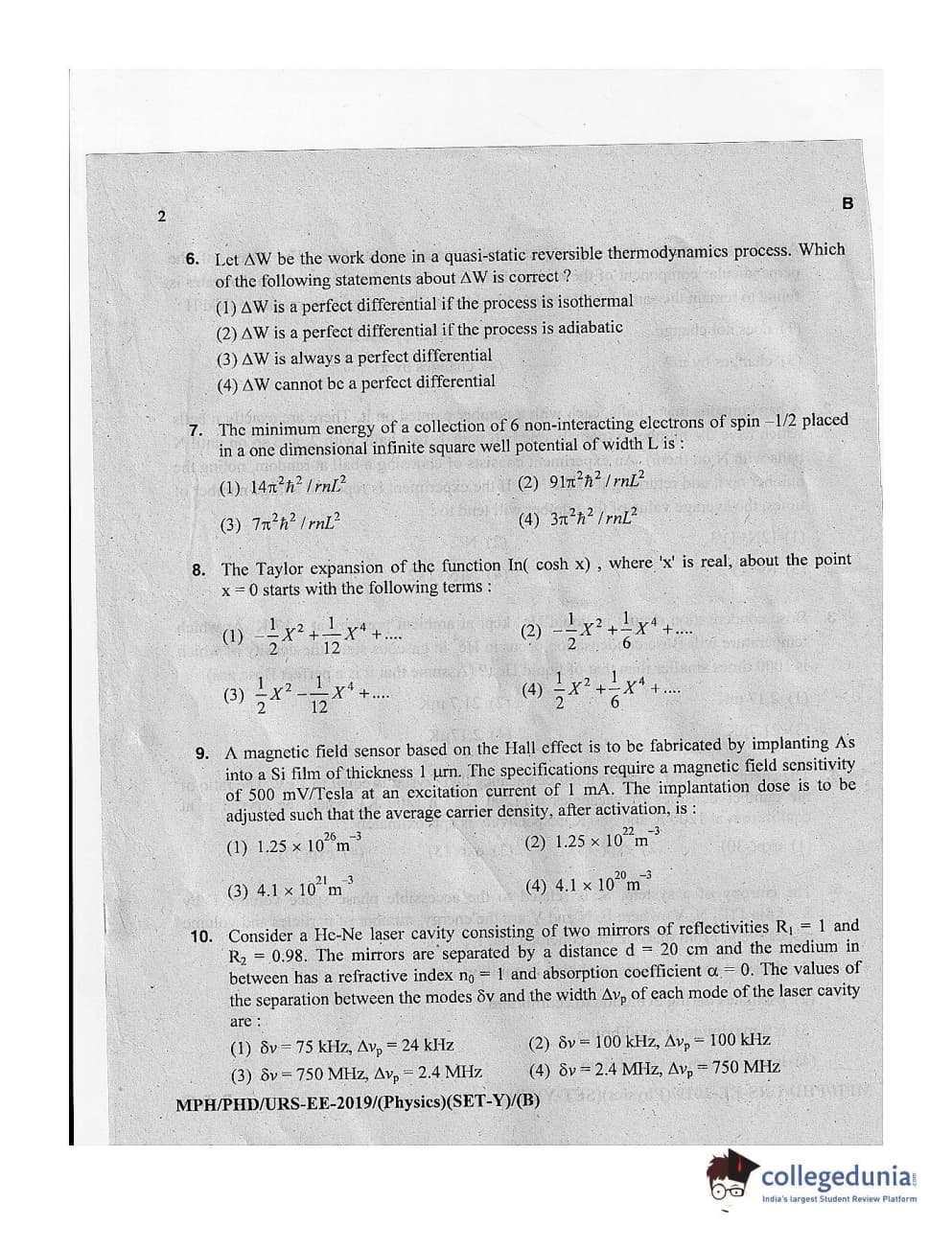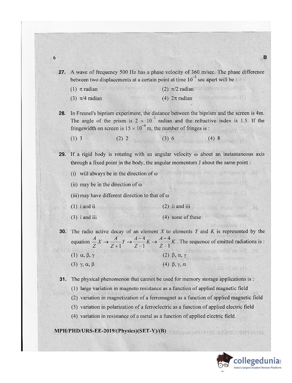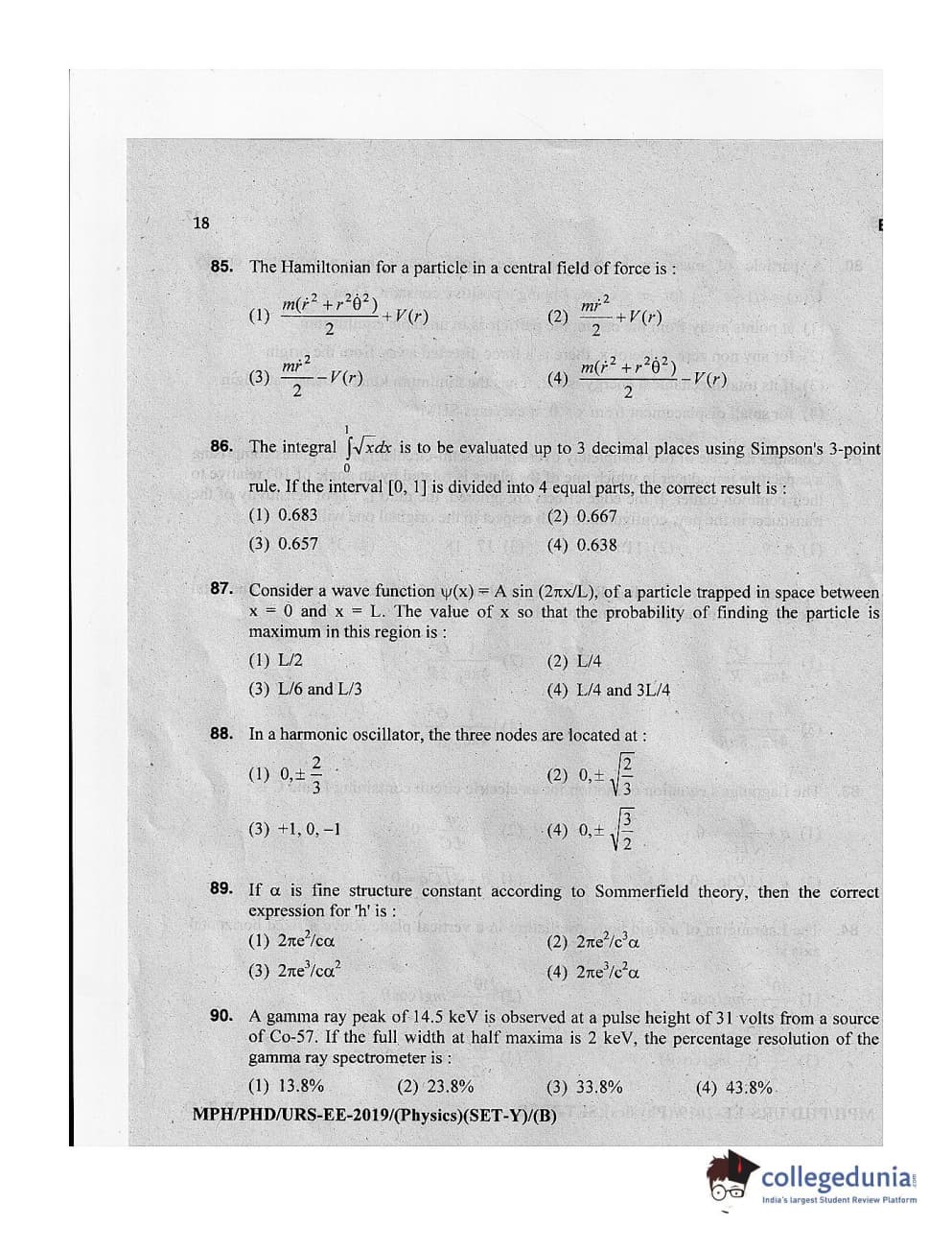 MDUCEE 2019 Ph.D./M.Phil./URS Physics Set B Question Paper with Answer Key PDFs