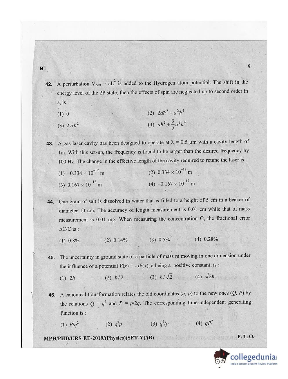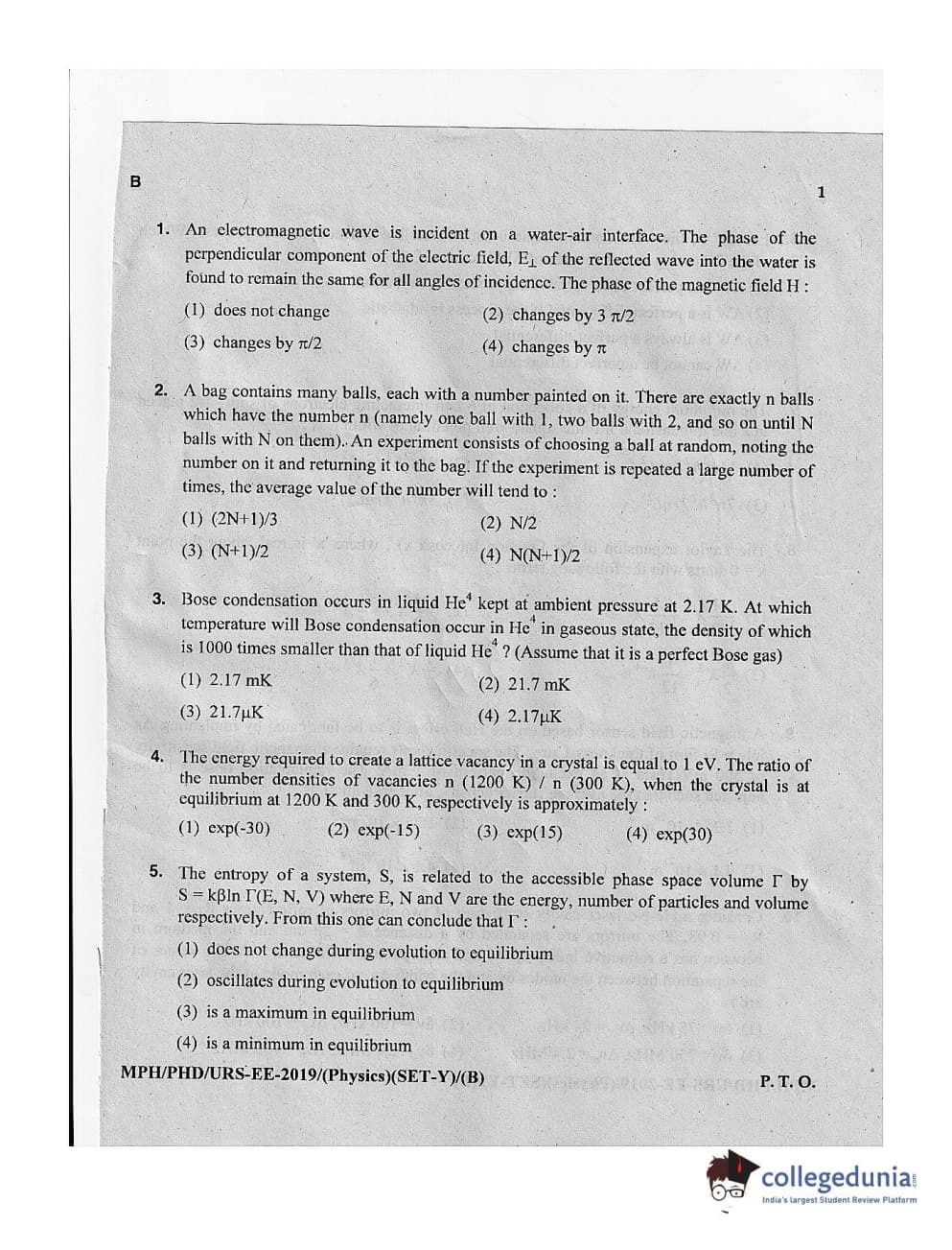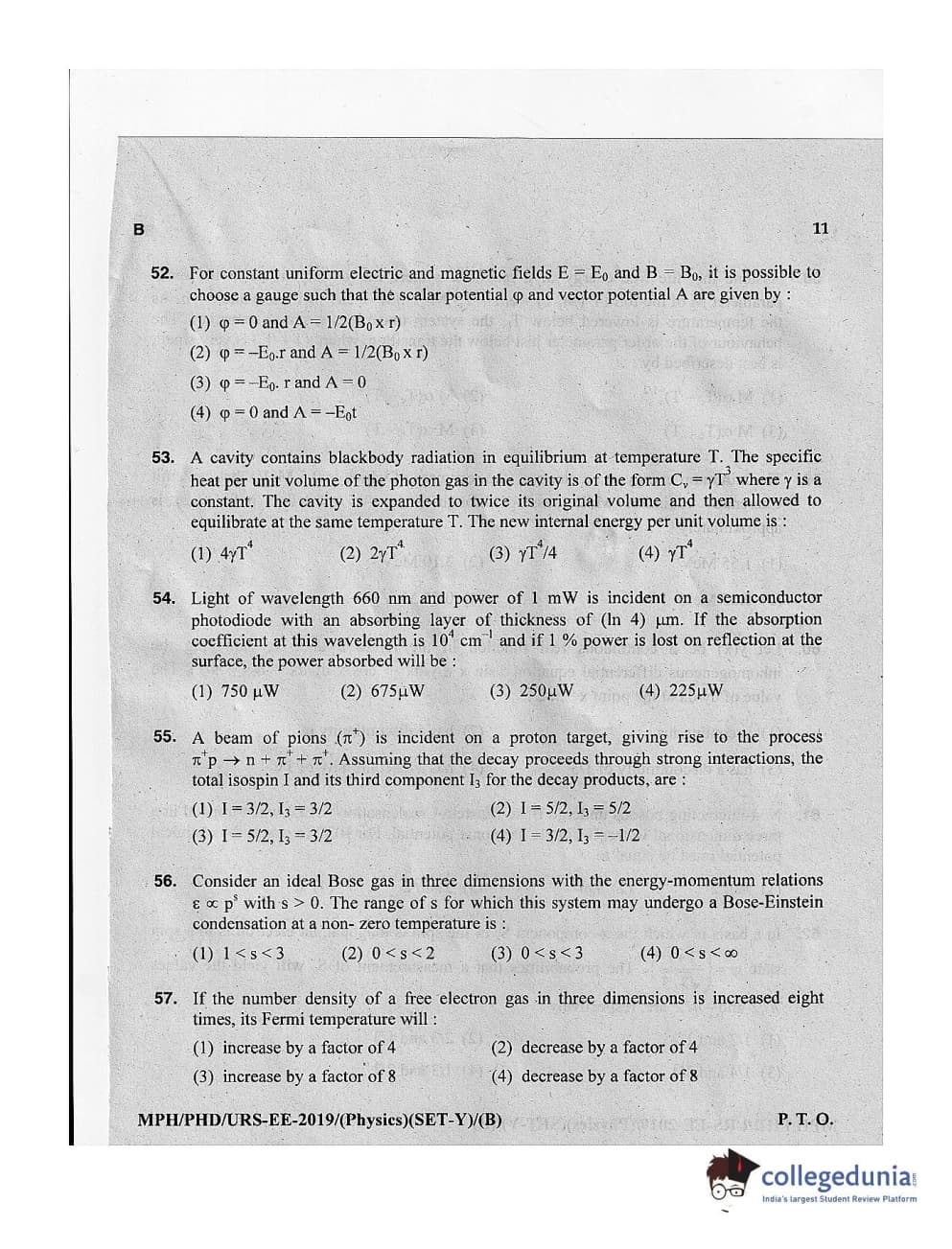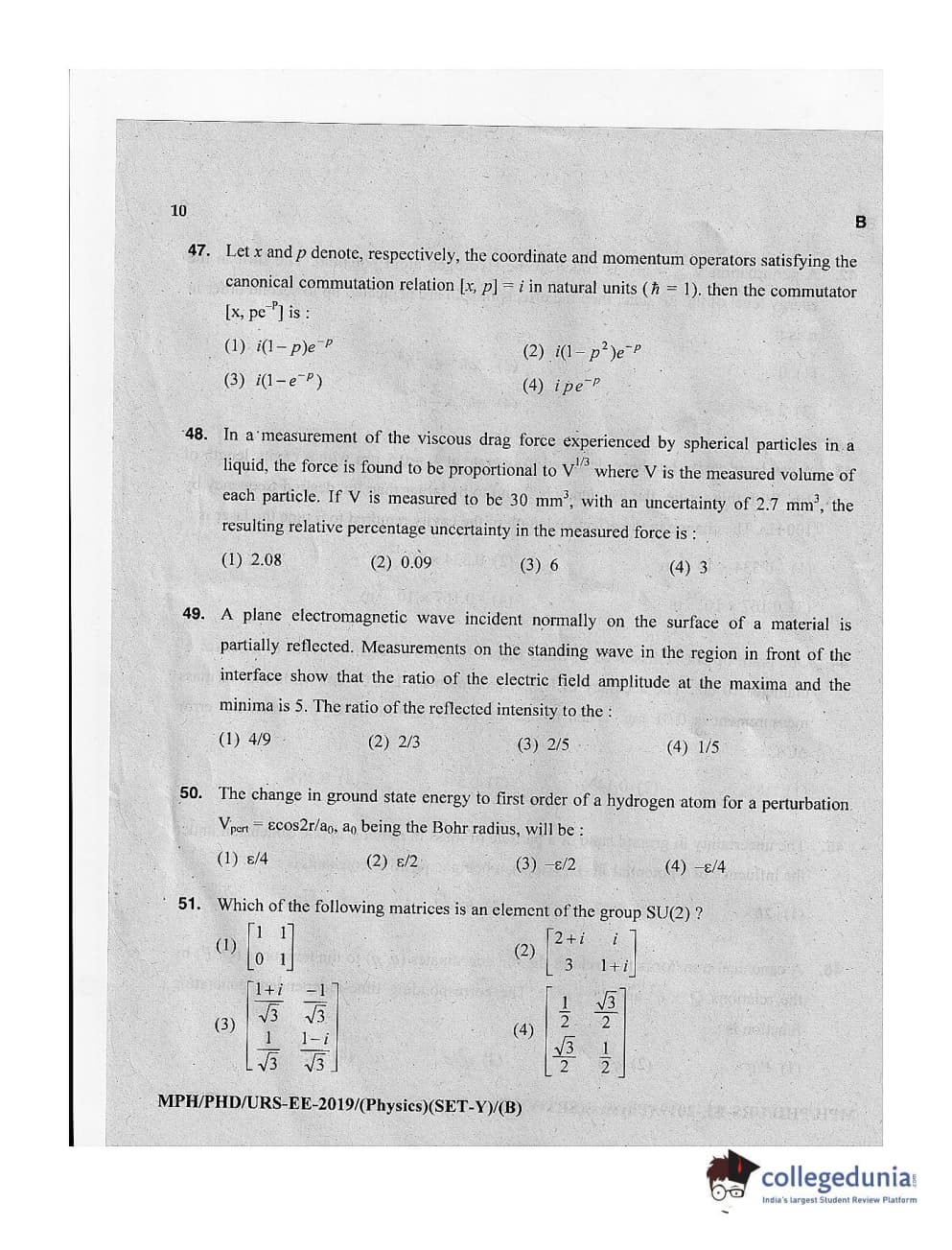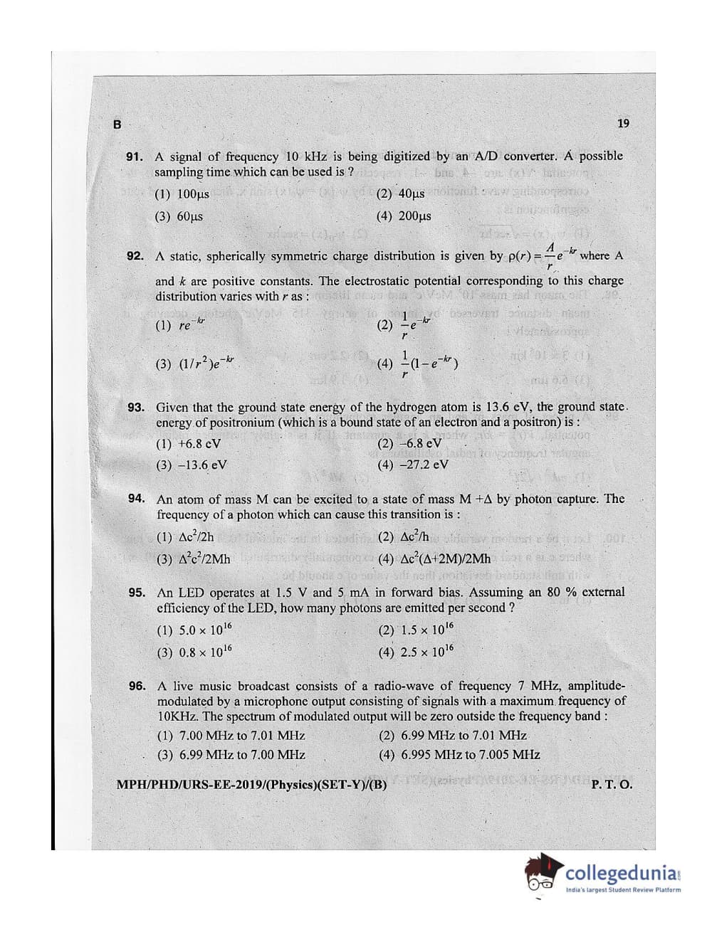 MDUCEE 2019 Ph.D./M.Phil./URS Physics Set B Question Paper with Answer Key PDFs
