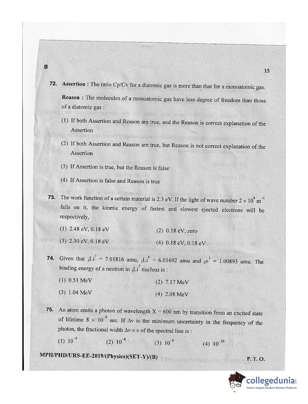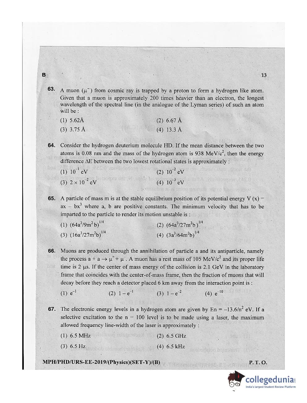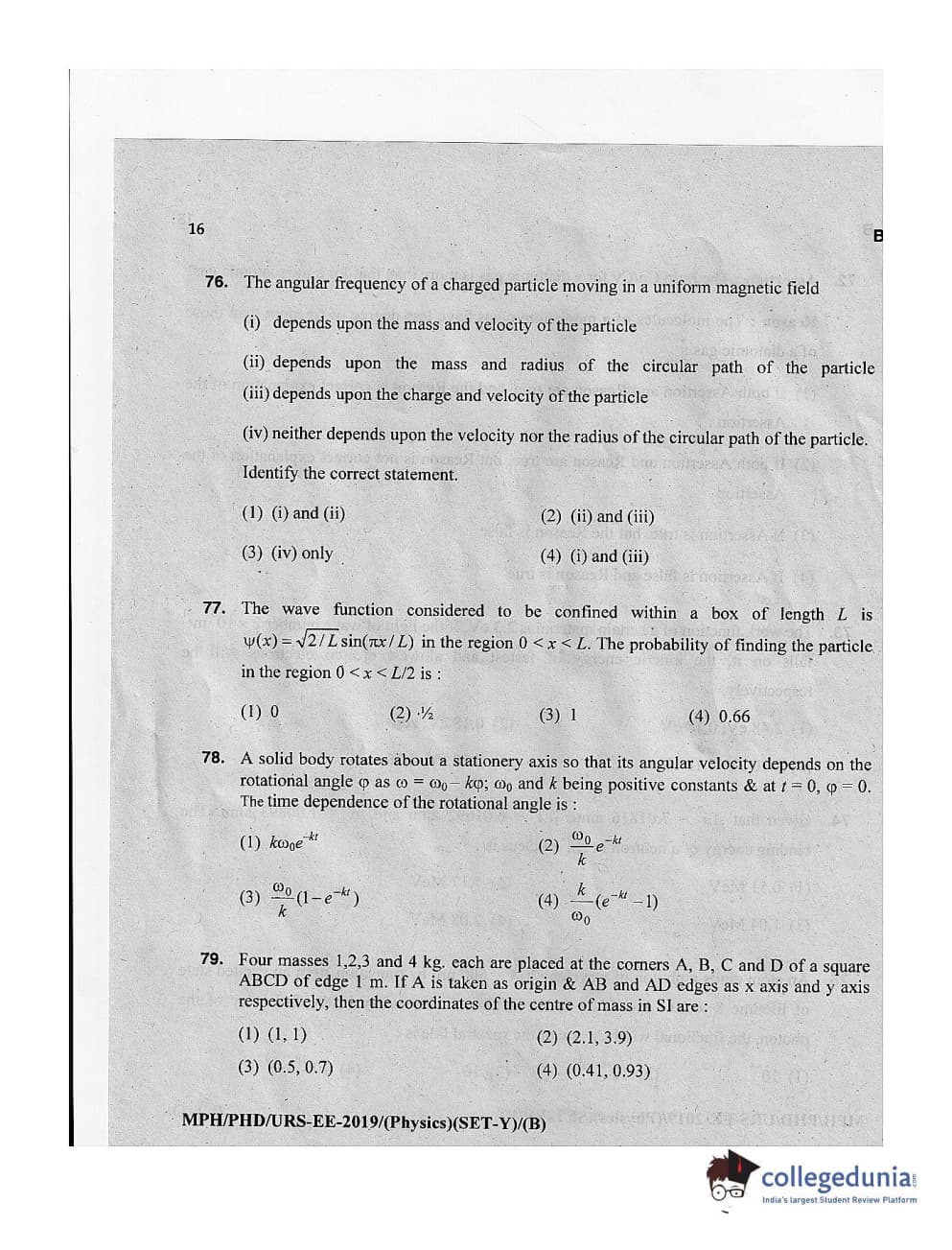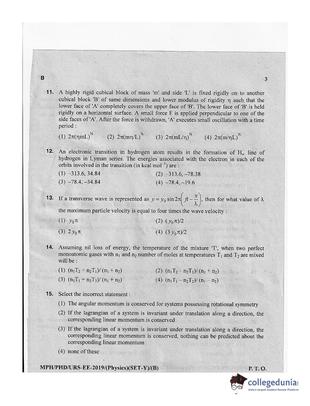 MDUCEE 2019 Ph.D./M.Phil./URS Physics Set B Question Paper with Answer Key PDFs
