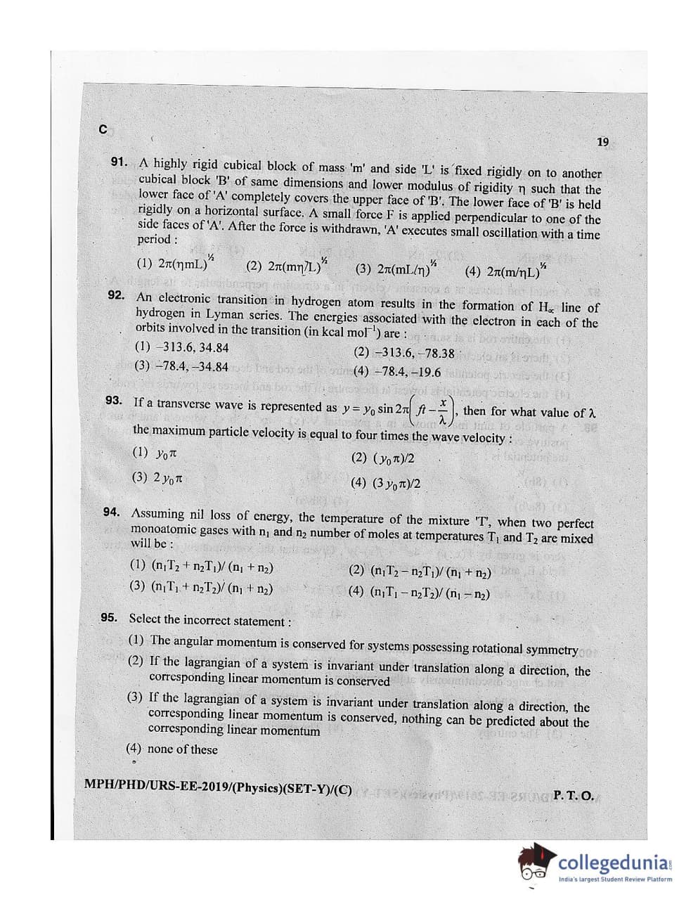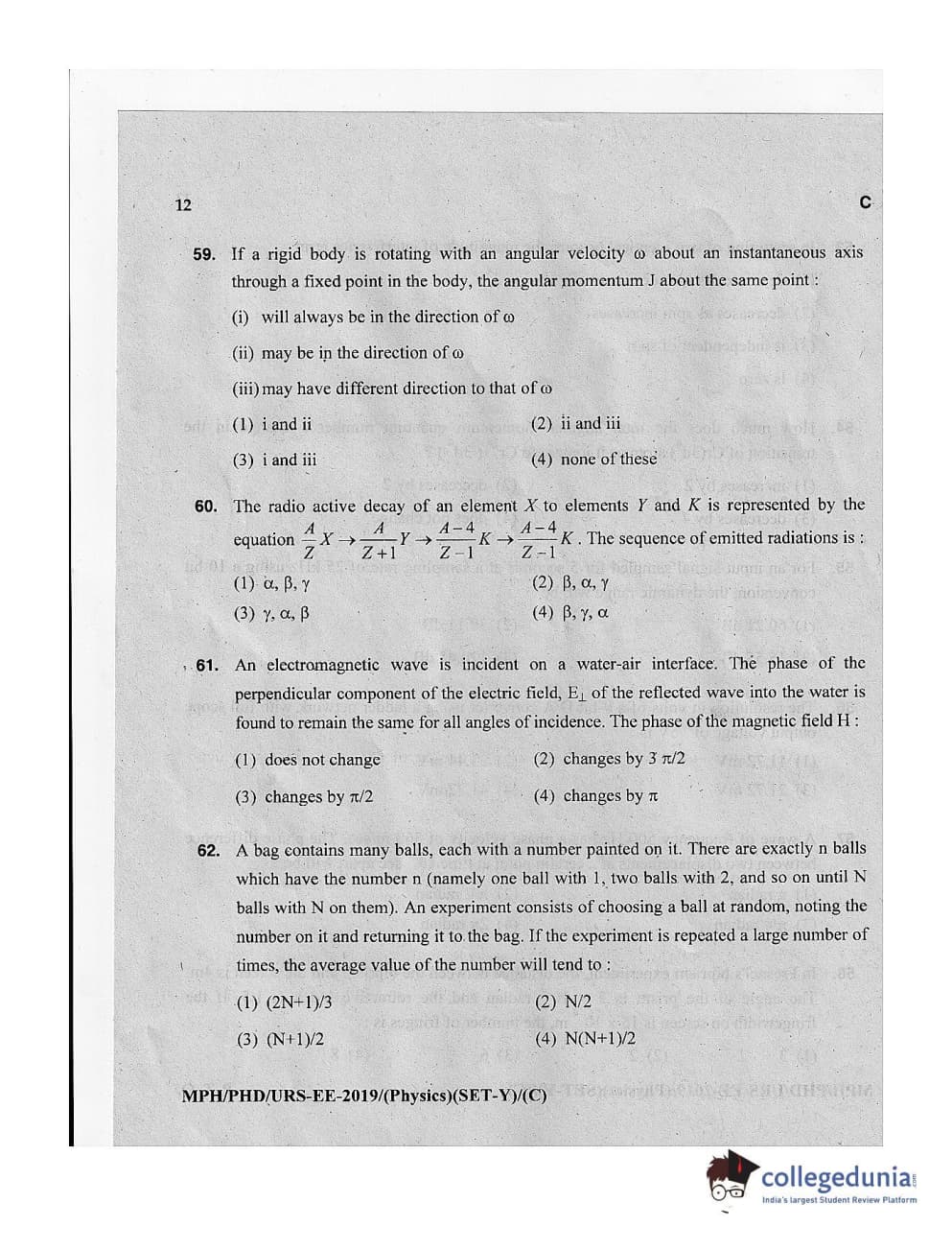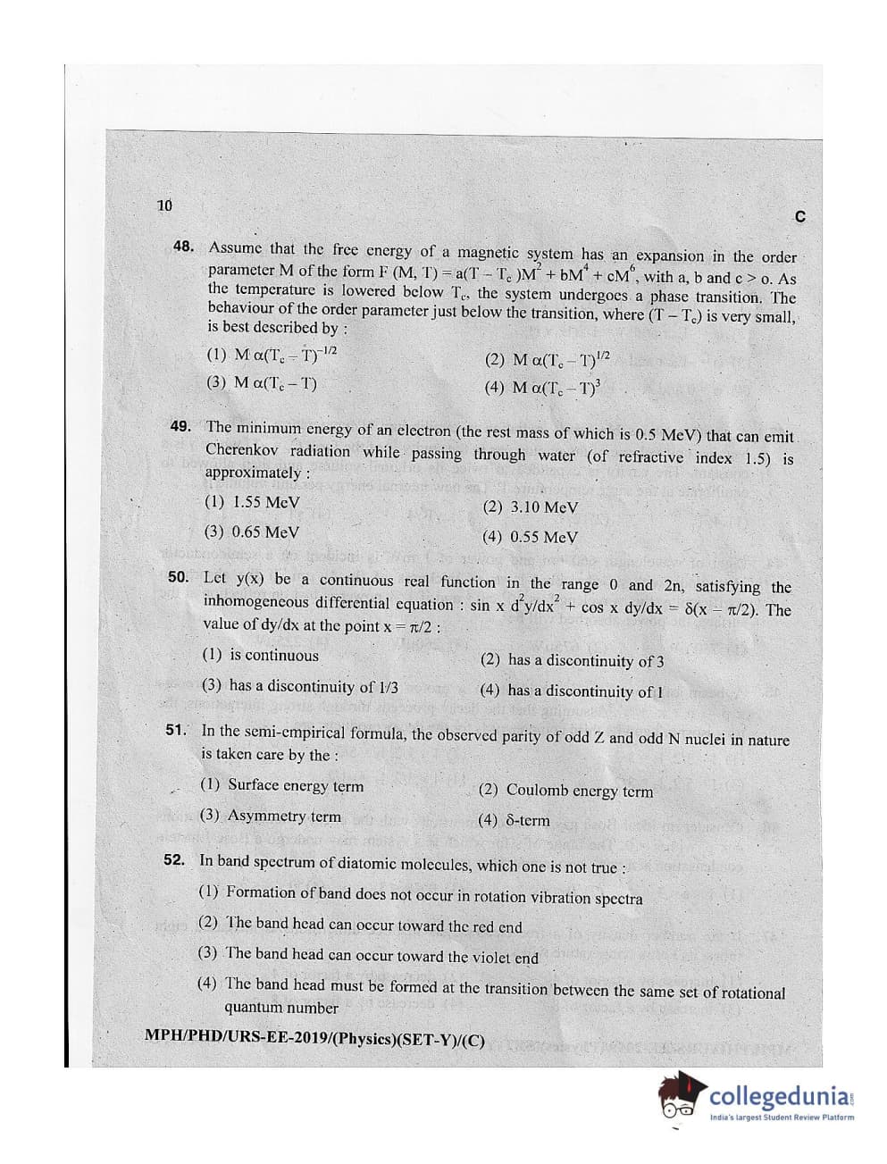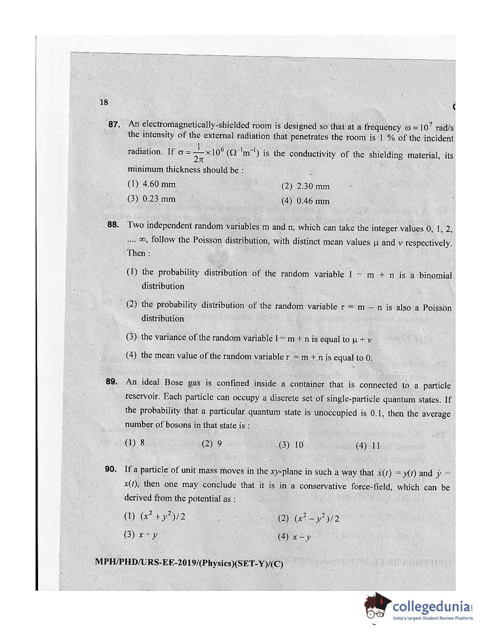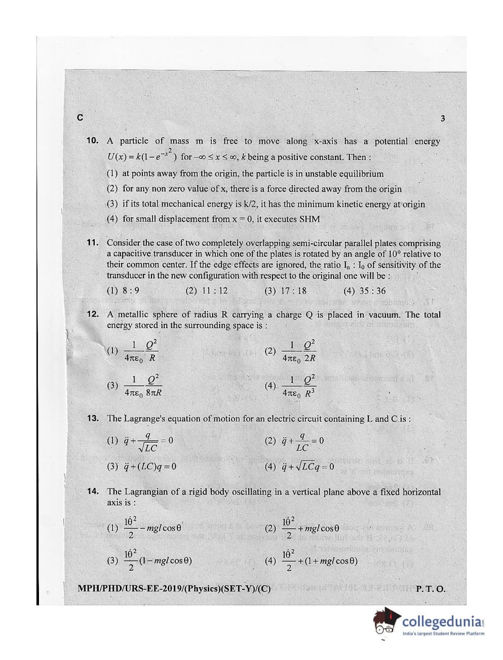 MDUCEE 2019 Ph.D./M.Phil./URS Physics Set C Question Paper with Answer Key PDFs