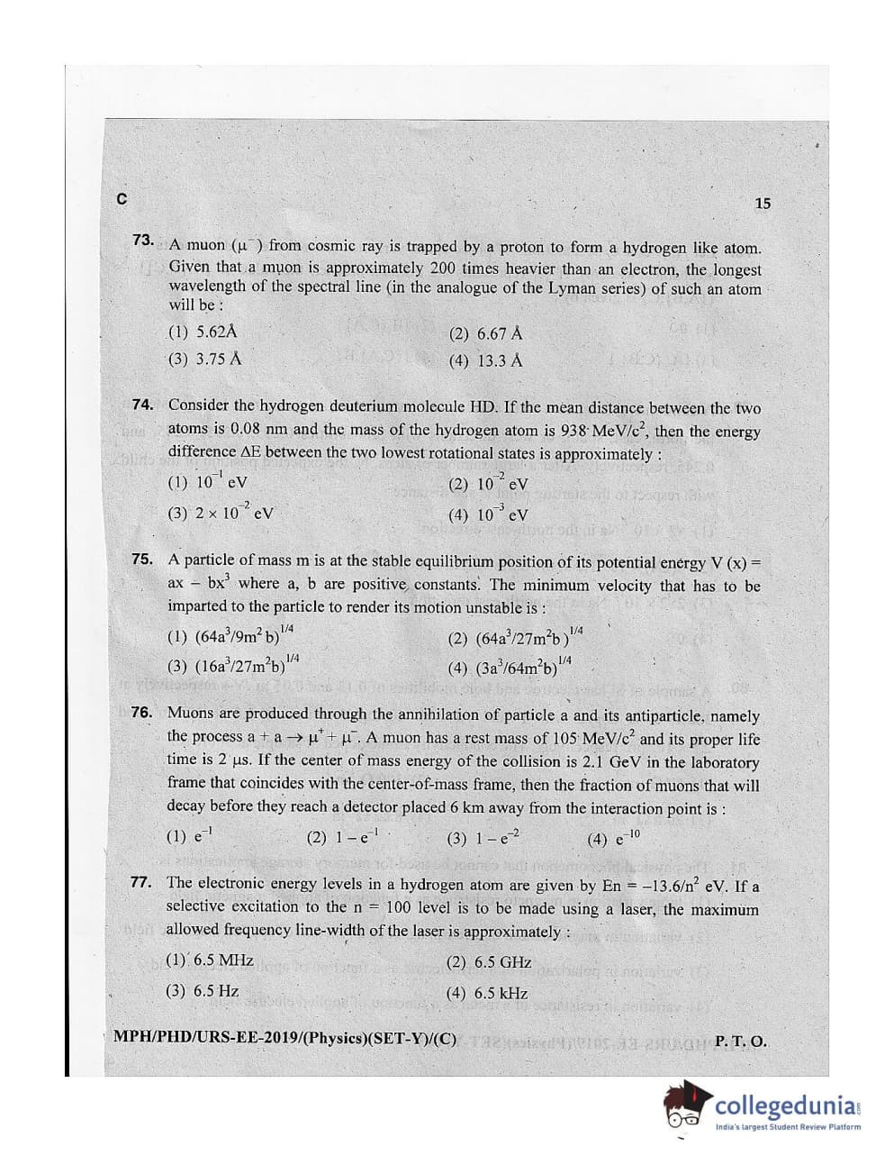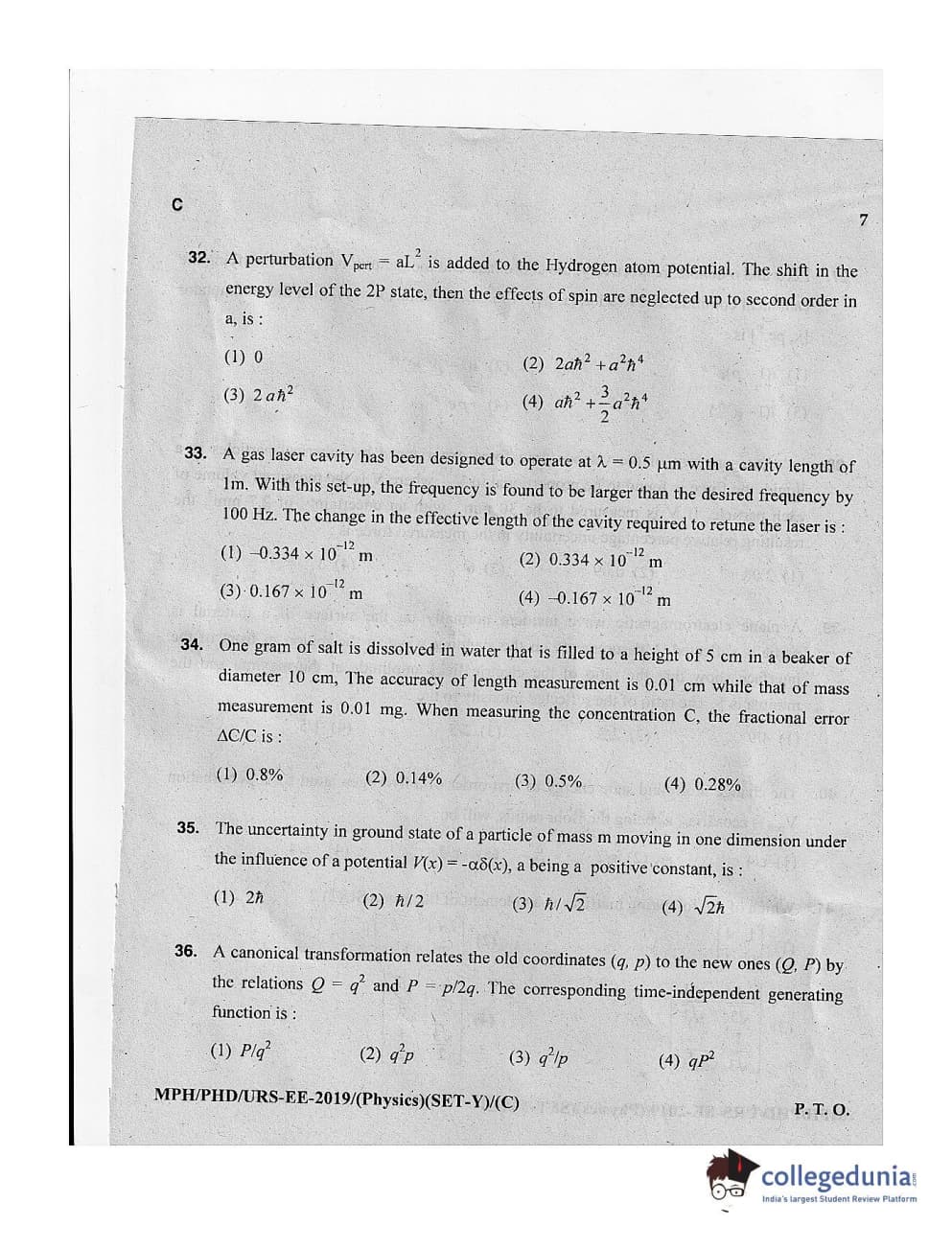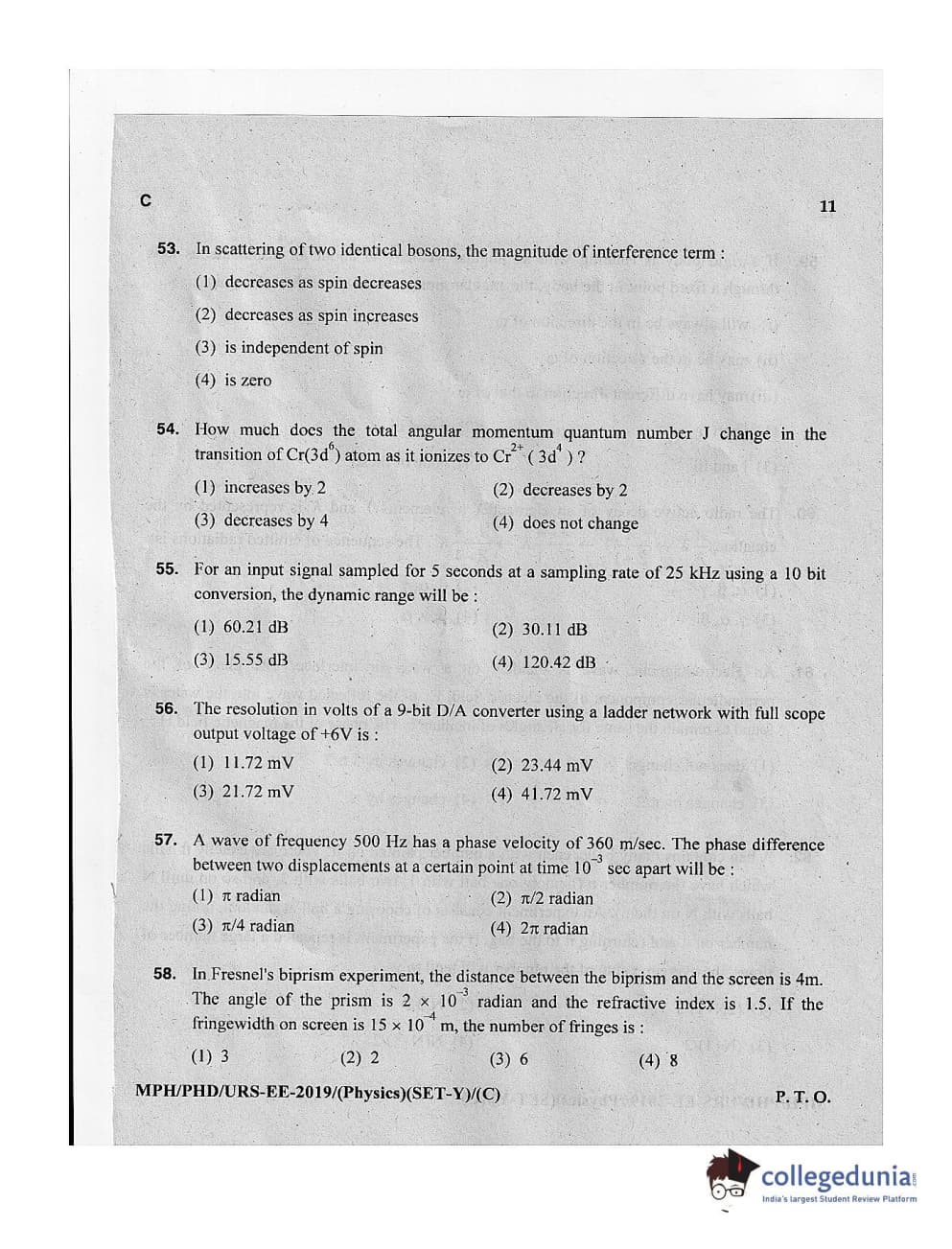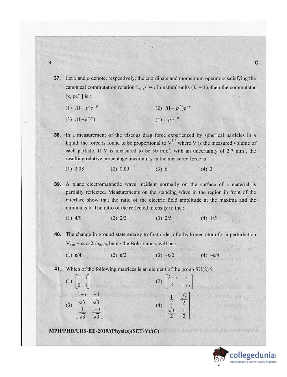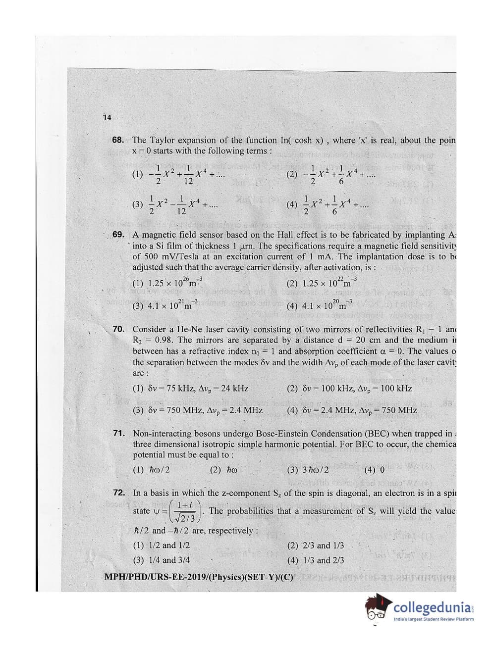 MDUCEE 2019 Ph.D./M.Phil./URS Physics Set C Question Paper with Answer Key PDFs