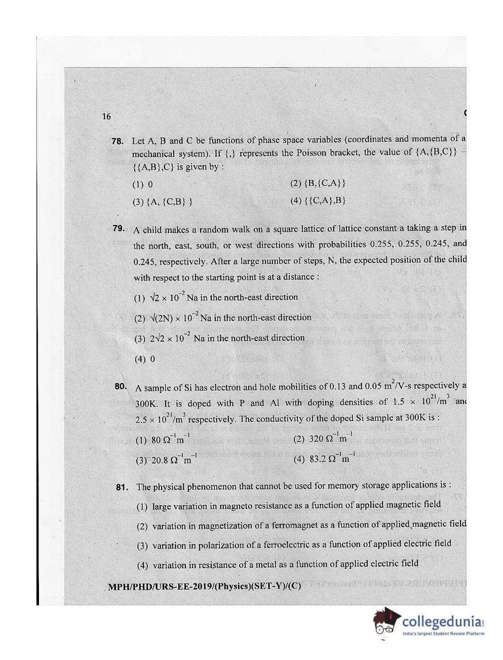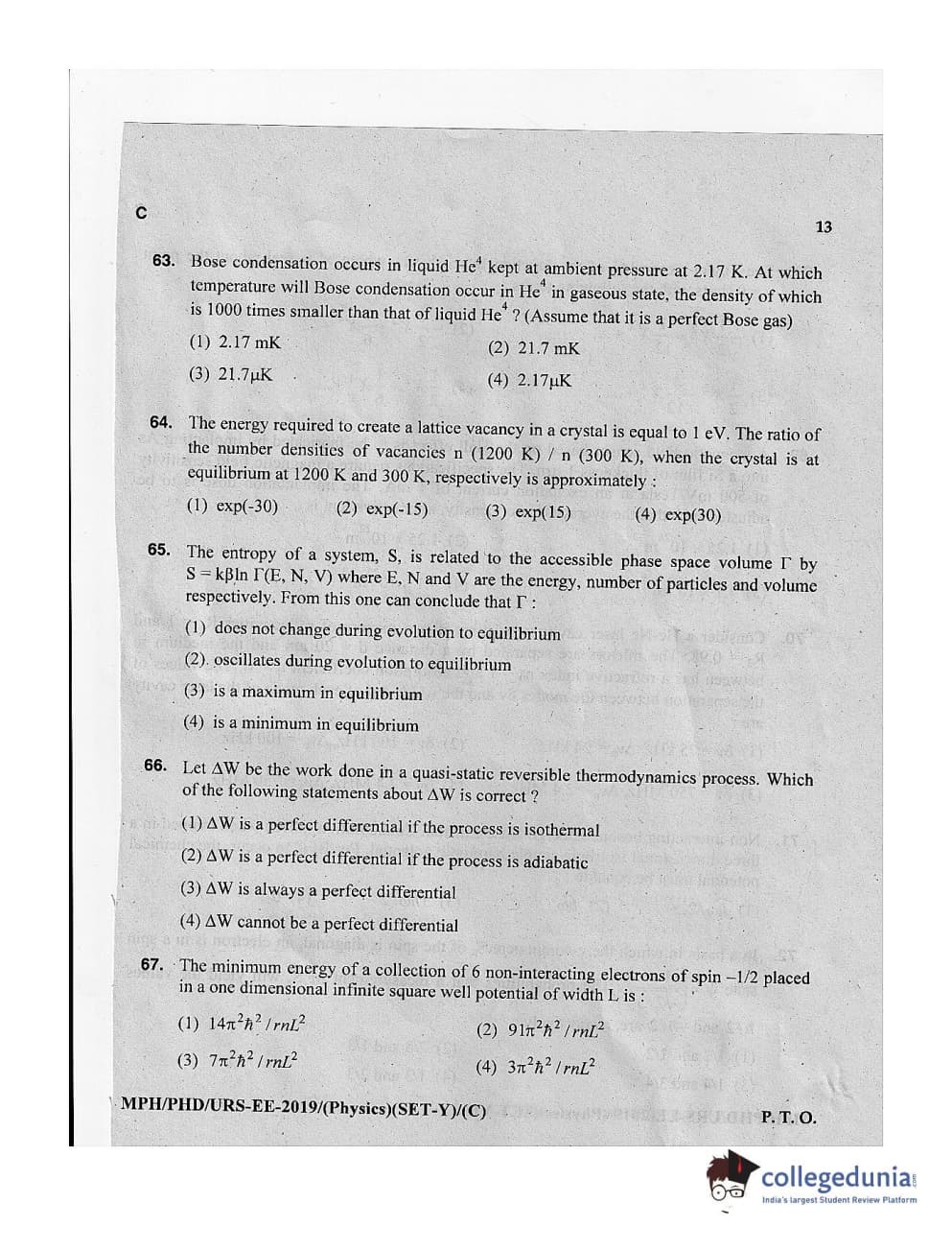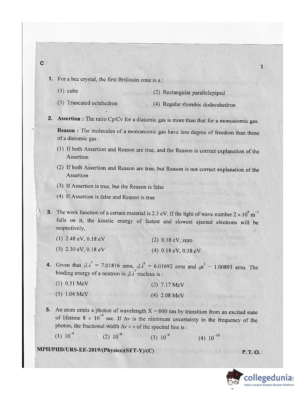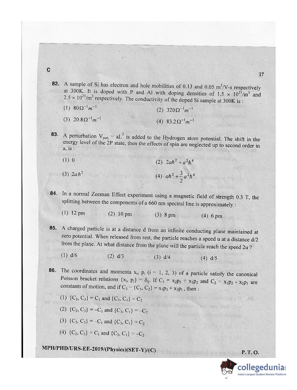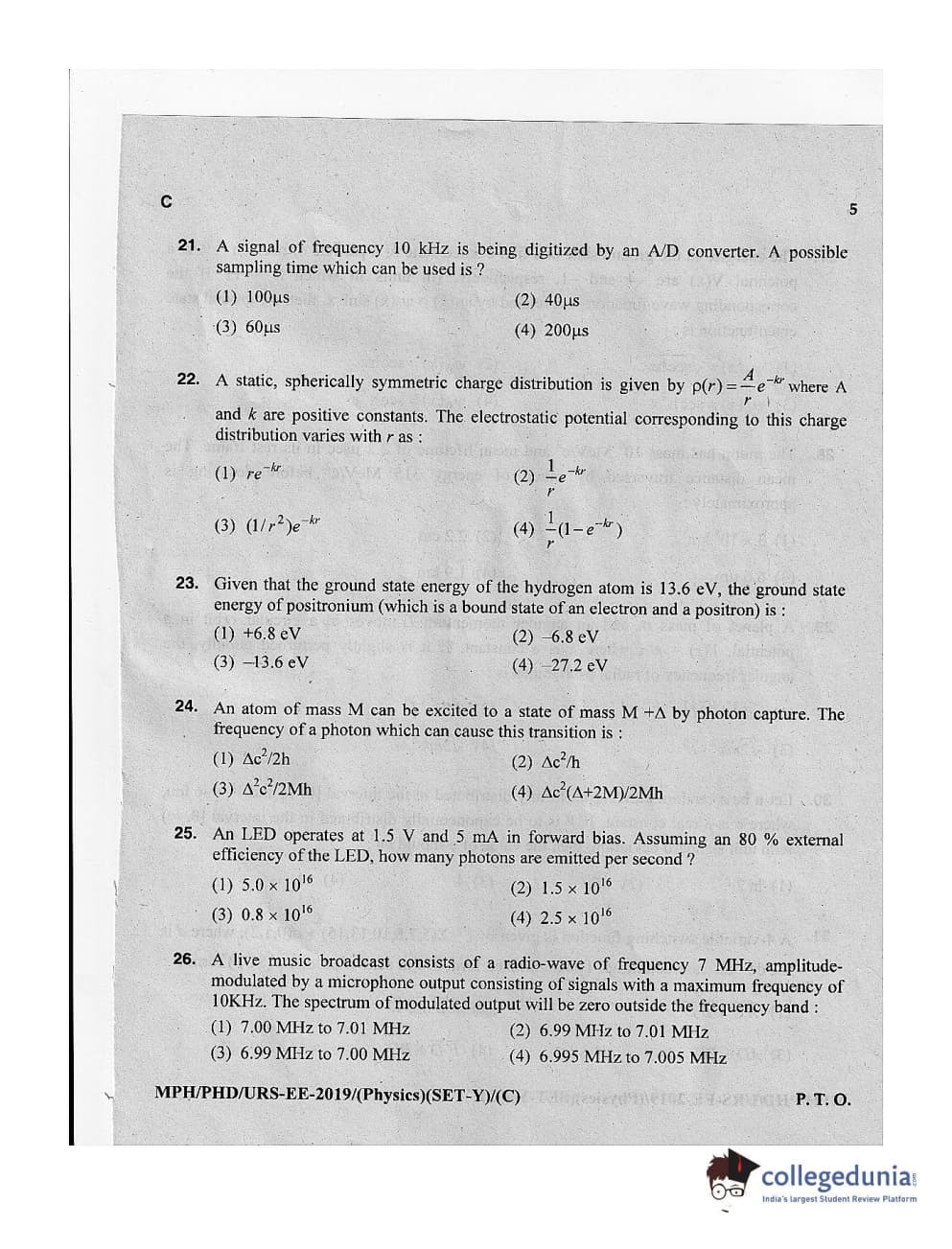 MDUCEE 2019 Ph.D./M.Phil./URS Physics Set C Question Paper with Answer Key PDFs