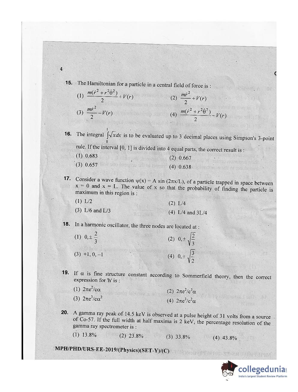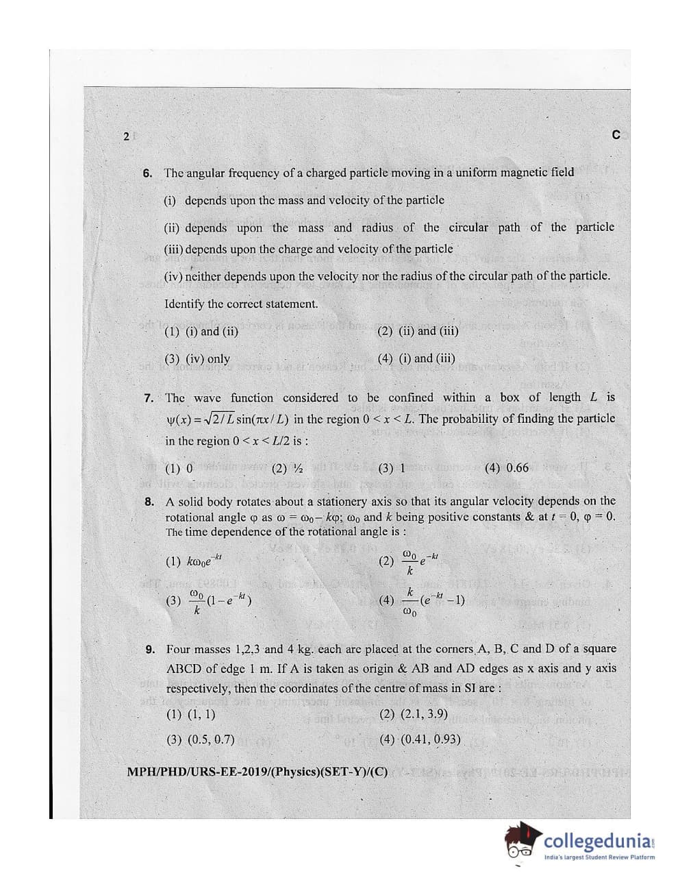 | MDUCEE 2019 Ph.D./M.Phil./URS Physics Set C Question Paper PDF | MDUCEE 2019 Ph.D./M.Phil./URS Physics Set C Answer Key PDF |