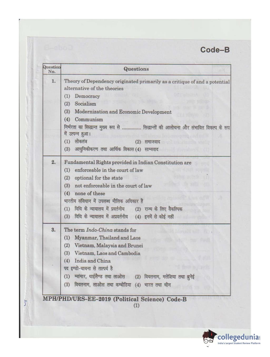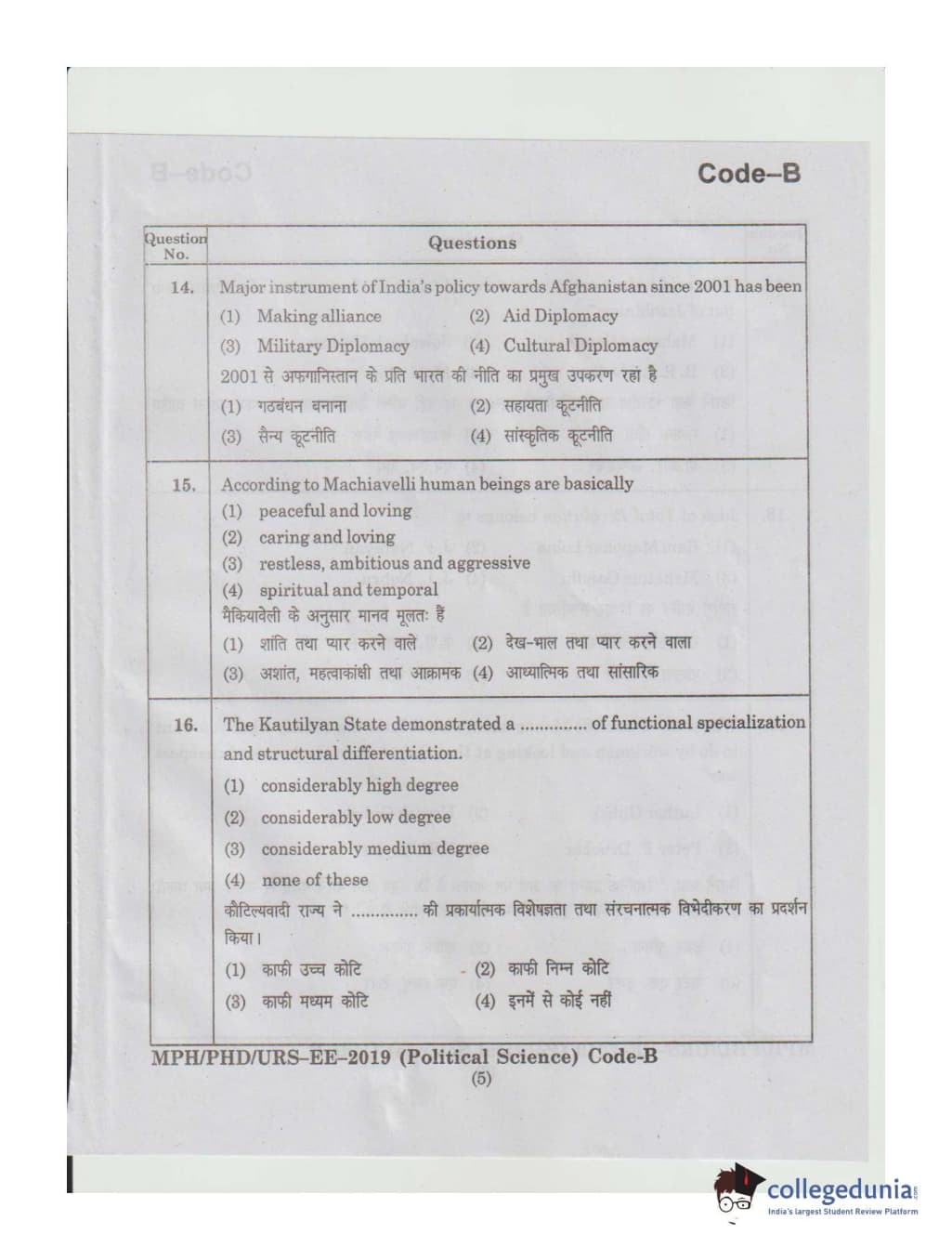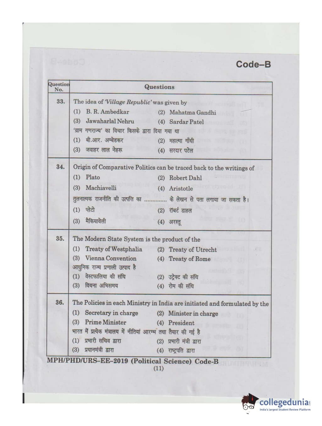 | MDUCEE 2019 Ph.D./M.Phil./URS Political Science Set B Question Paper PDF | MDUCEE 2019 Ph.D./M.Phil./URS Political Science Set B Answer Key PDF |