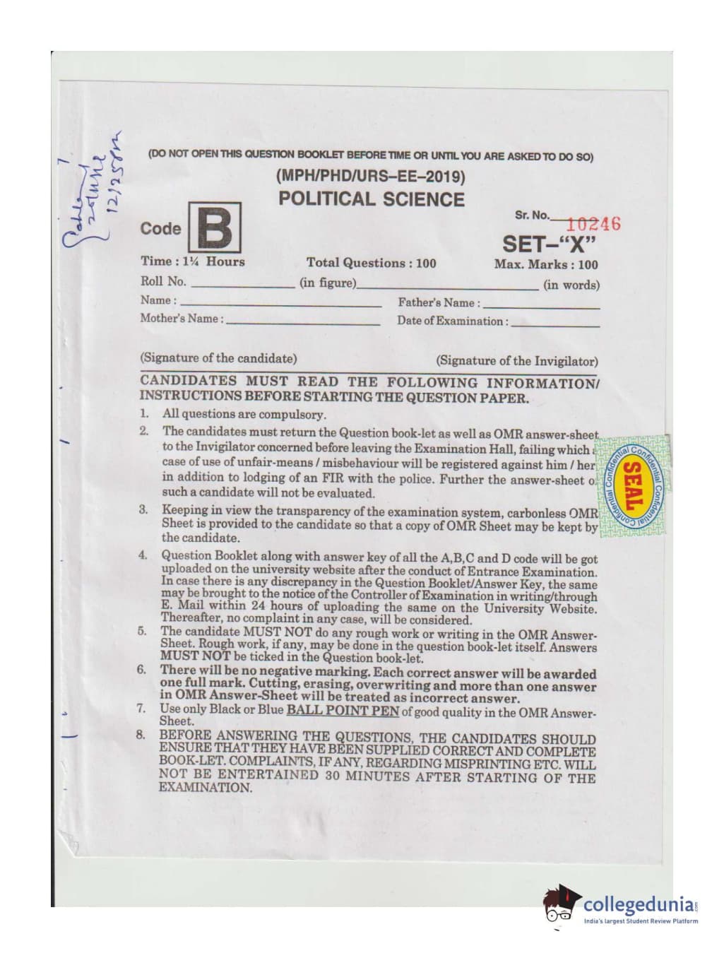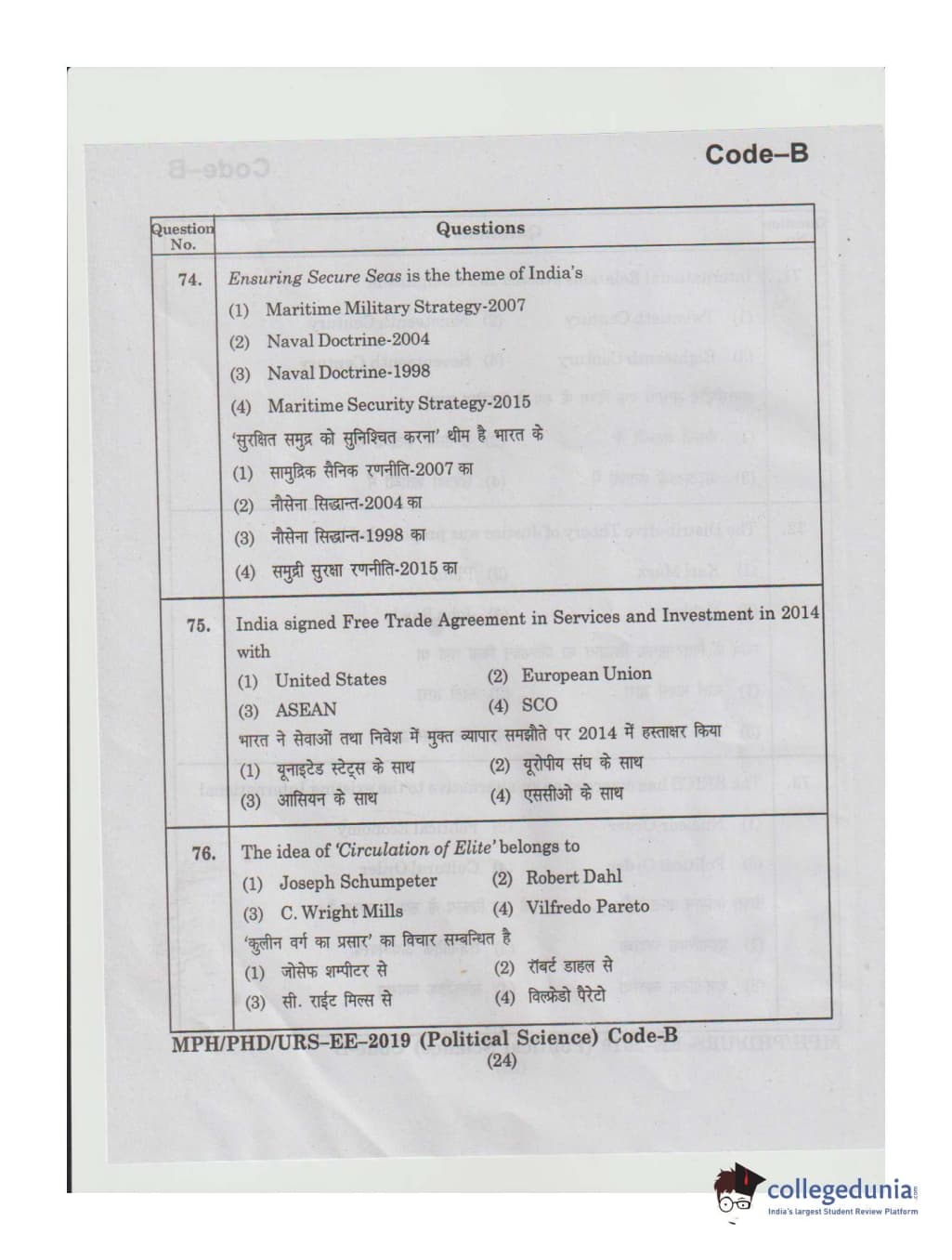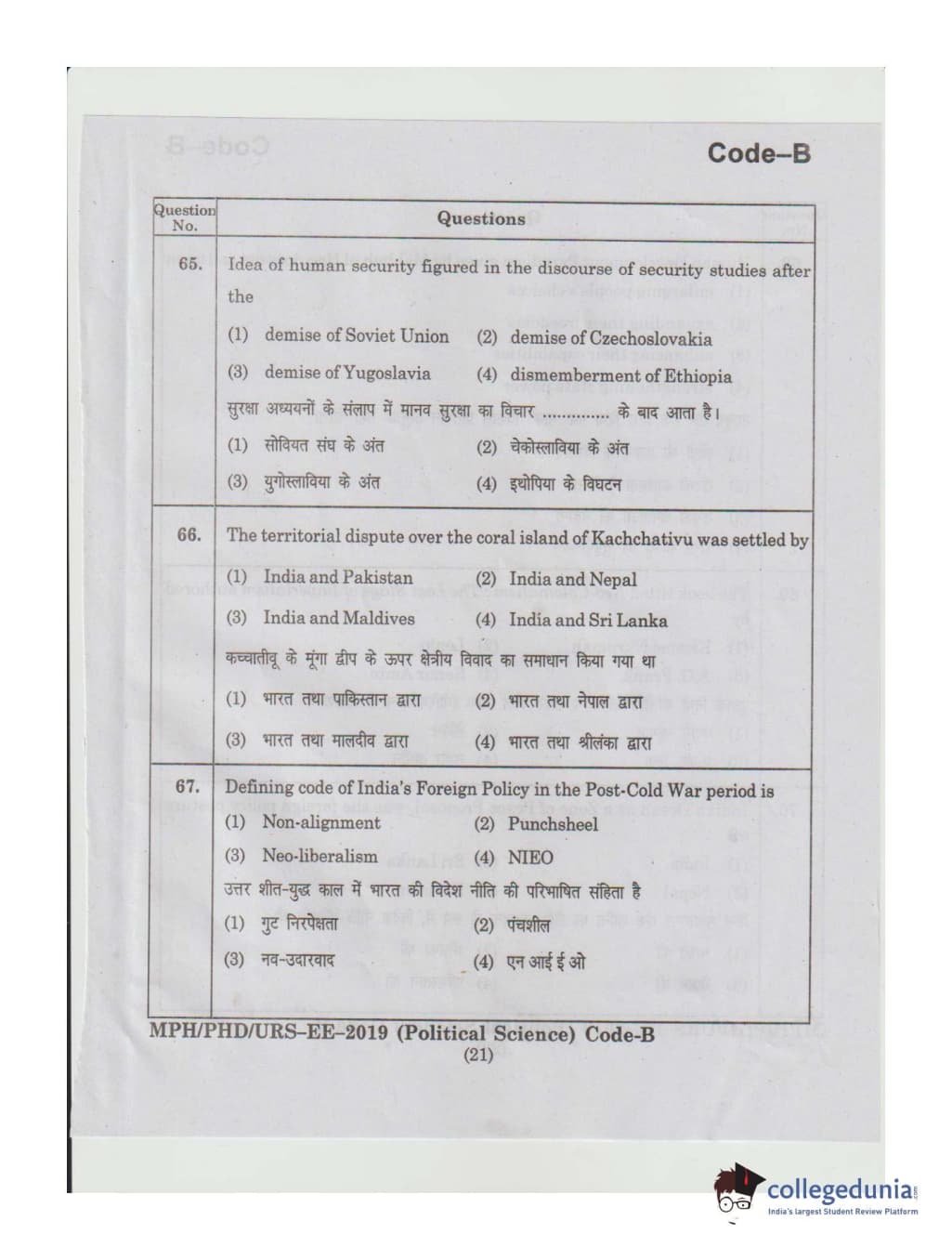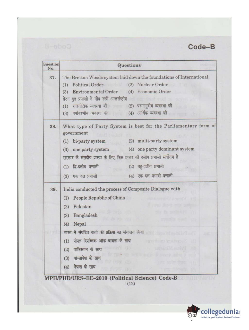 | MDUCEE 2019 Ph.D./M.Phil./URS Political Science Set B Question Paper PDF | MDUCEE 2019 Ph.D./M.Phil./URS Political Science Set B Answer Key PDF |