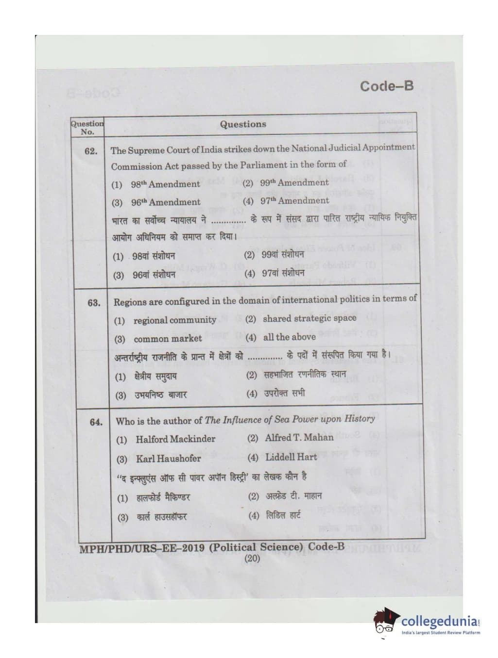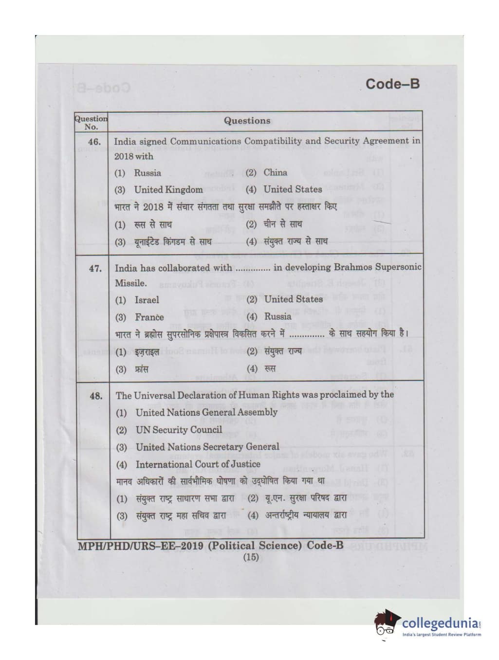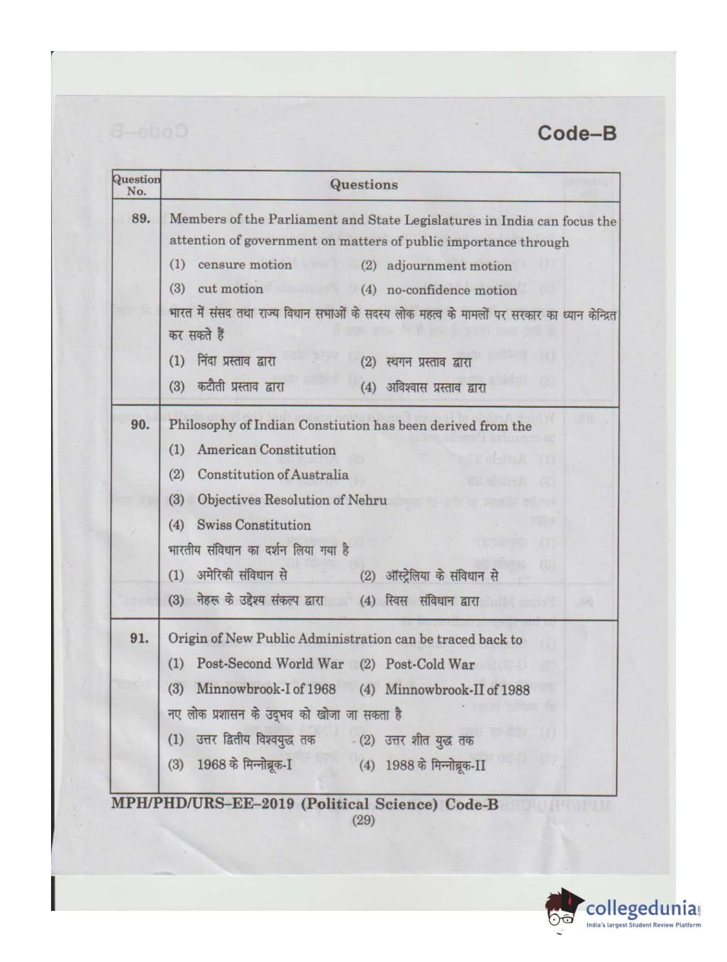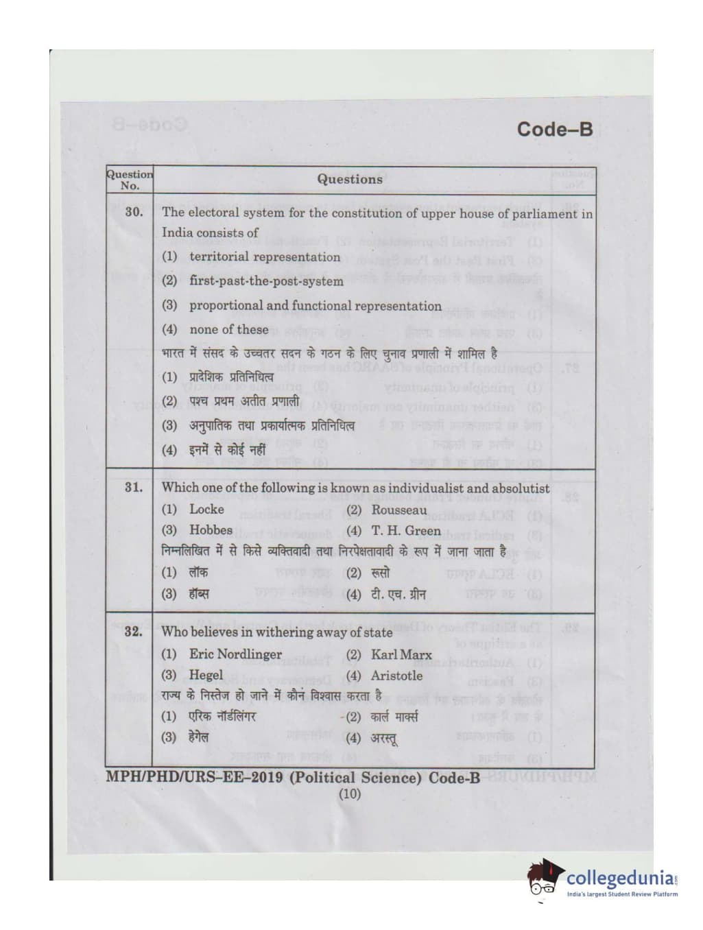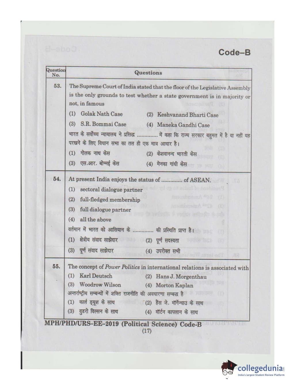 MDUCEE 2019 Ph.D./M.Phil./URS Political Science Set B Question Paper with Answer Key PDFs