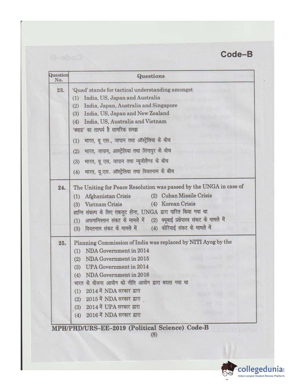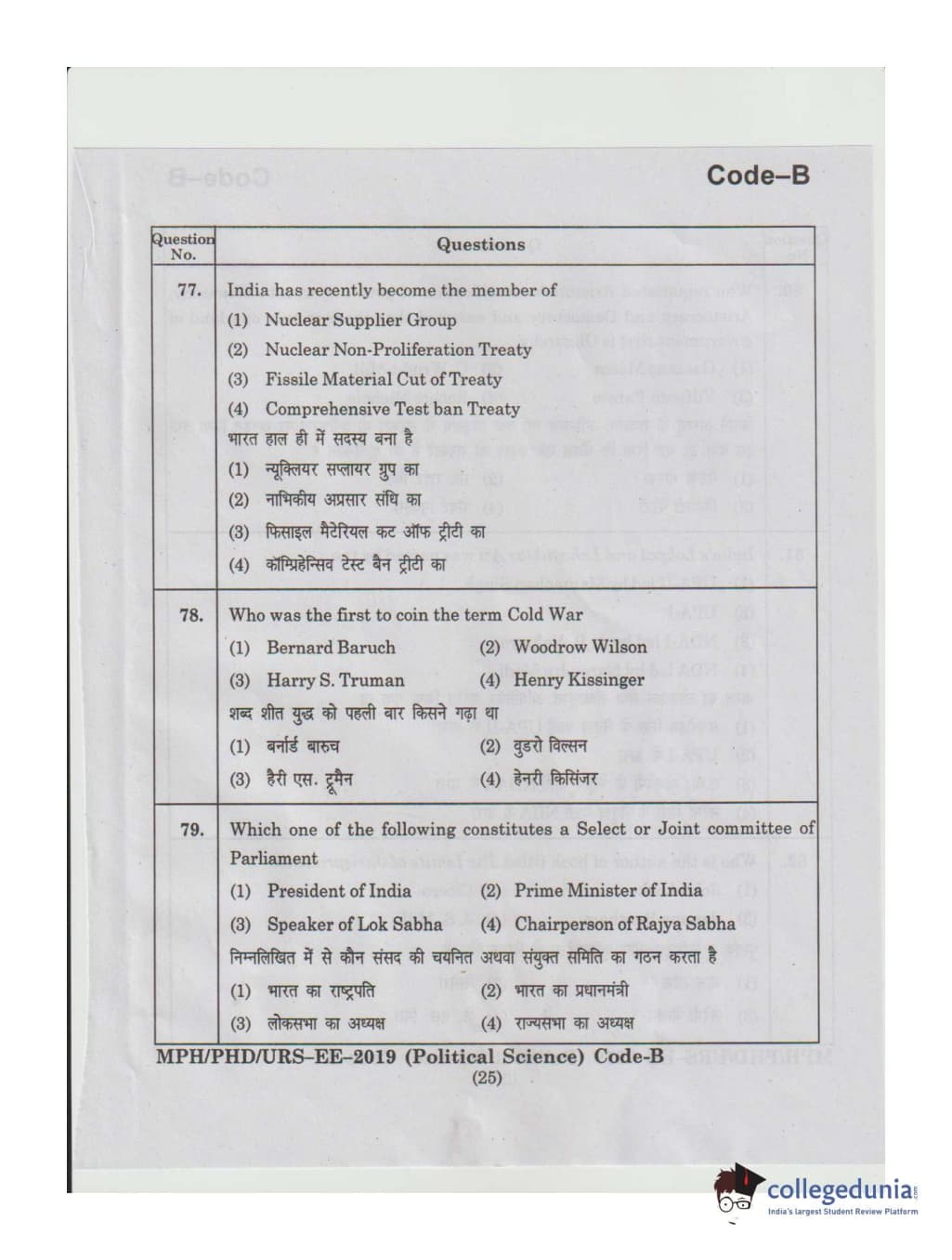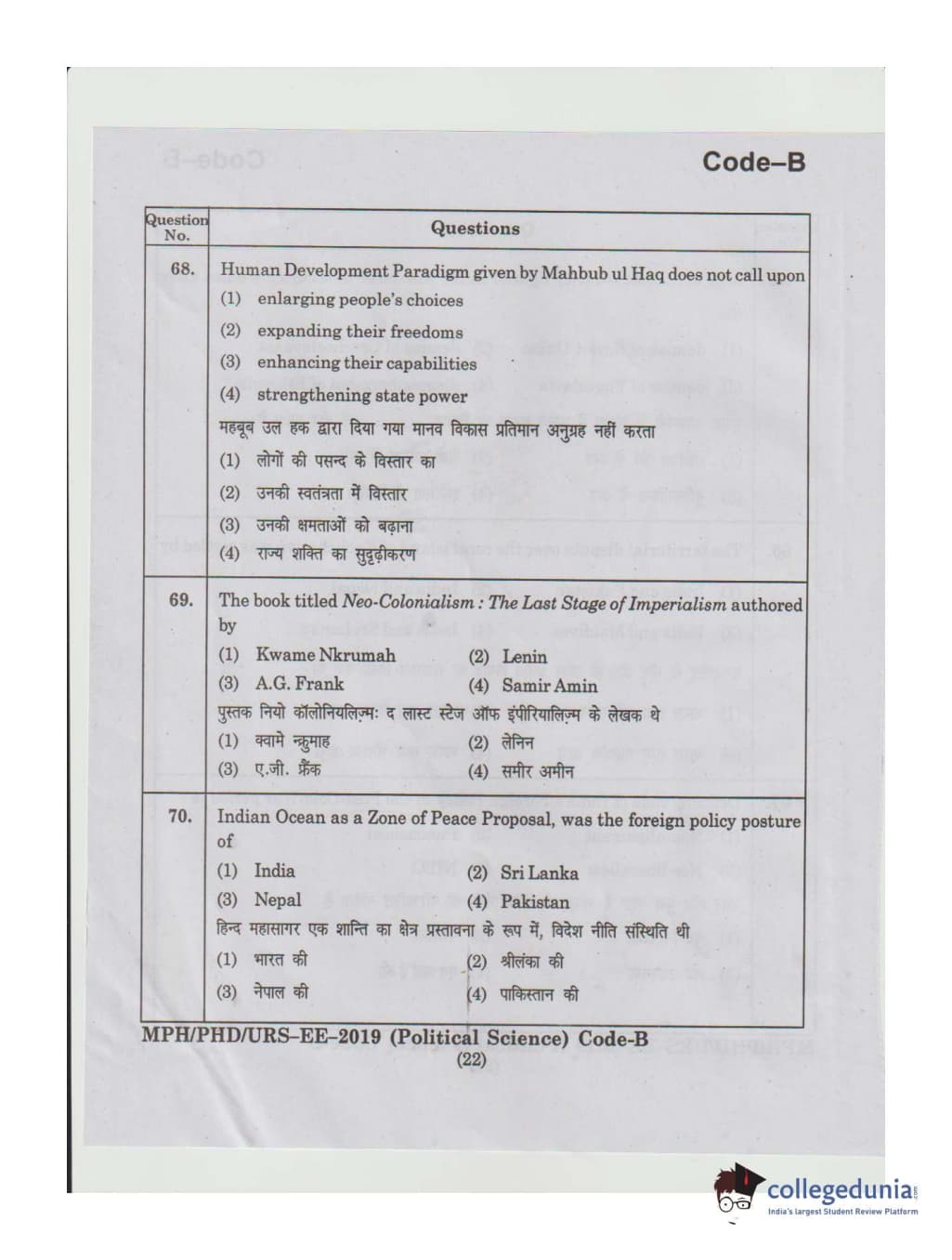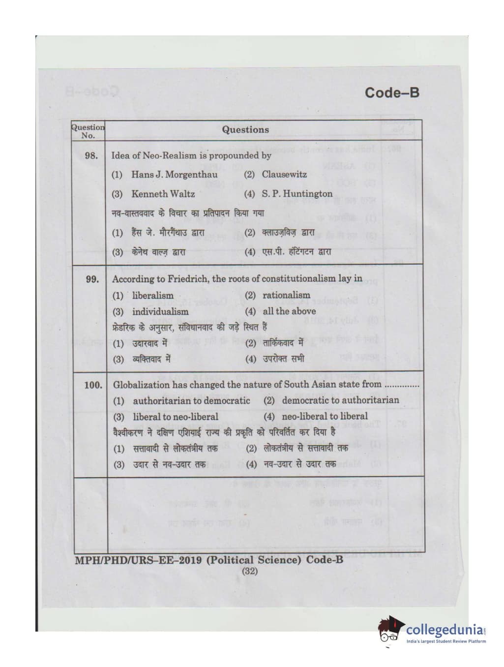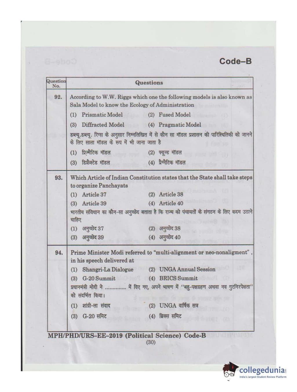 MDUCEE 2019 Ph.D./M.Phil./URS Political Science Set B Question Paper with Answer Key PDFs