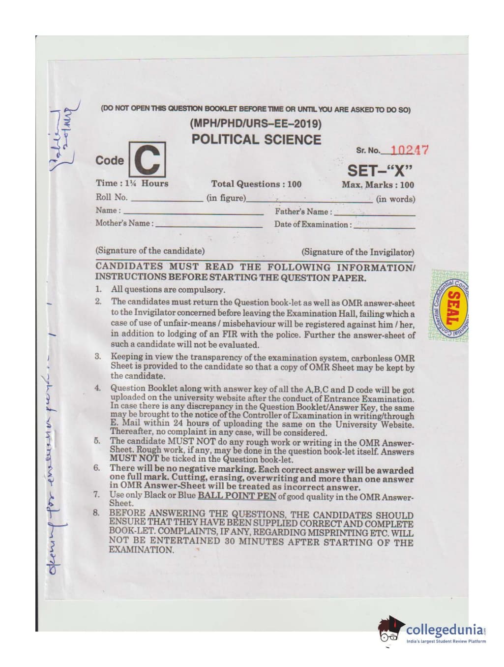 MDUCEE 2019 Ph.D./M.Phil./URS Political Science Set C Question paper with answer key pdf is available for download. The exam was successfully organized by Maharishi Dayanand University. The question paper comprised a total of 100 questions.