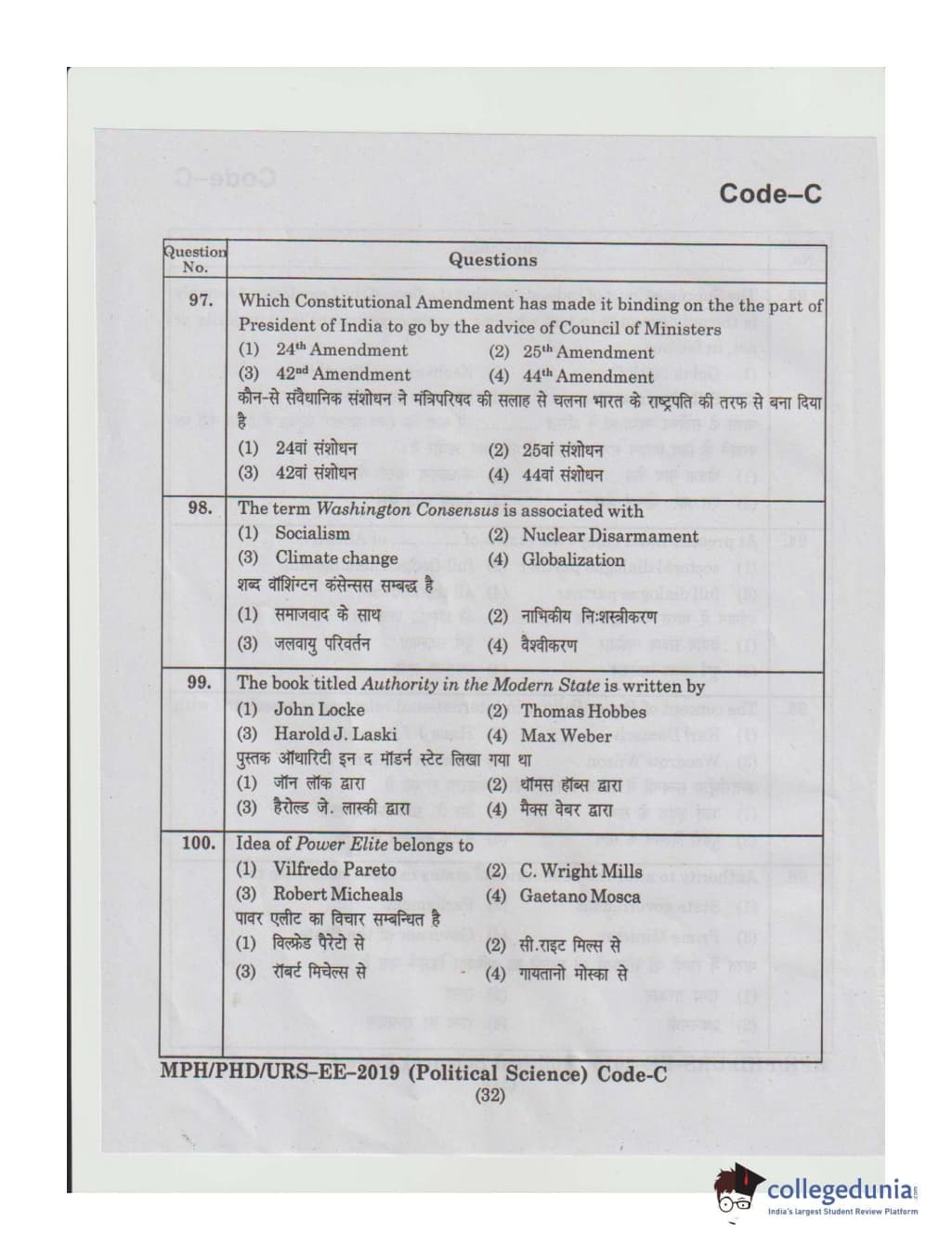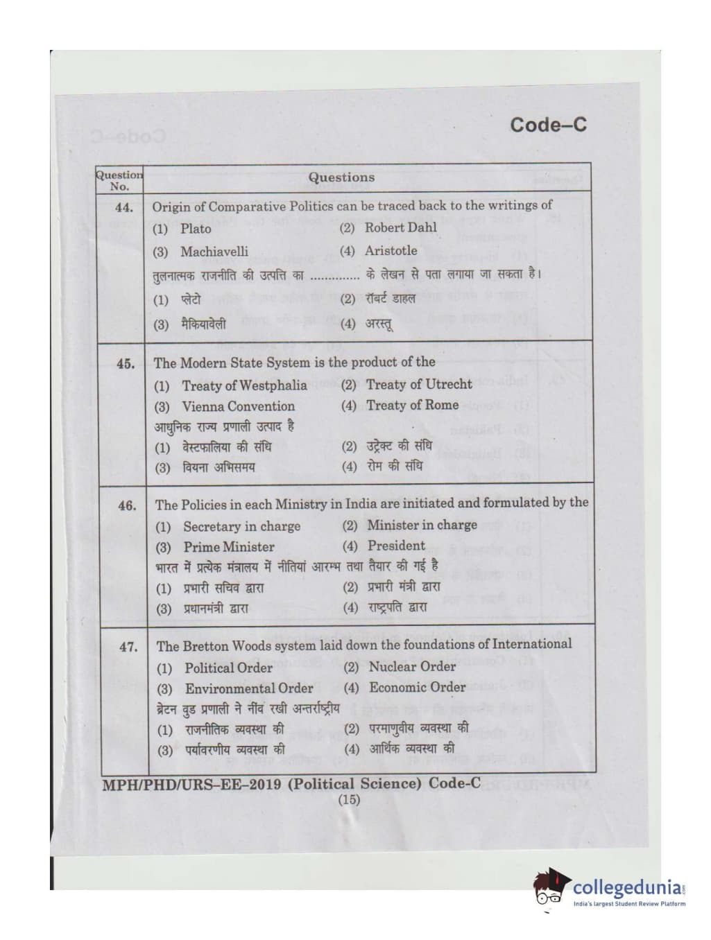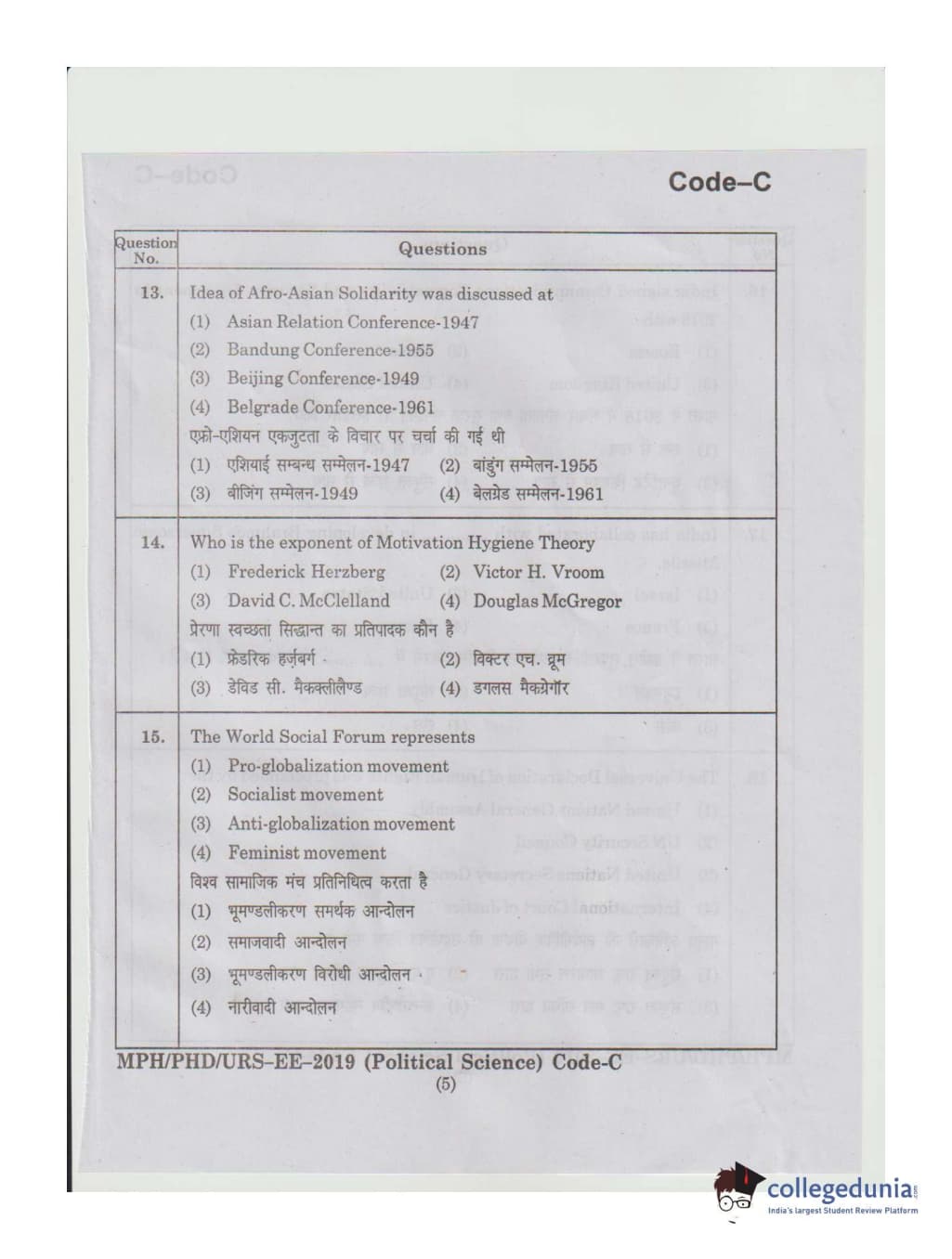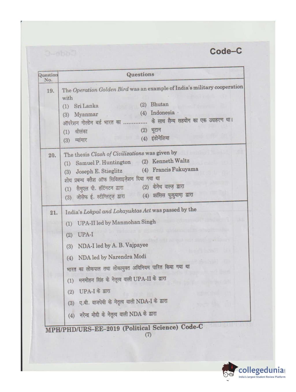 MDUCEE 2019 Ph.D./M.Phil./URS Political Science Set C Question Paper with Answer Key PDFs