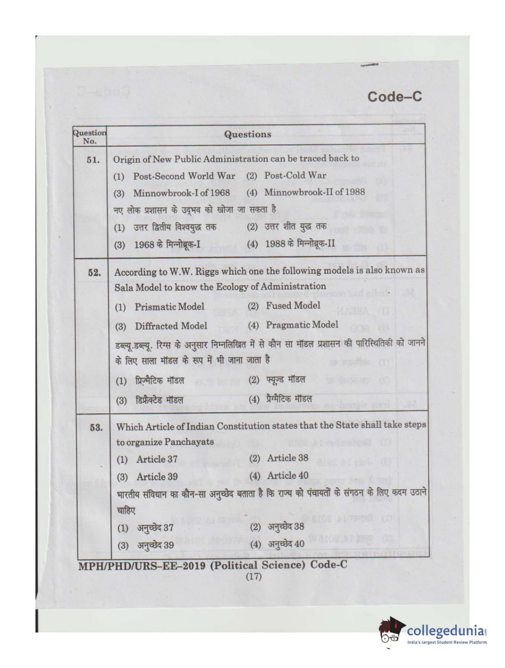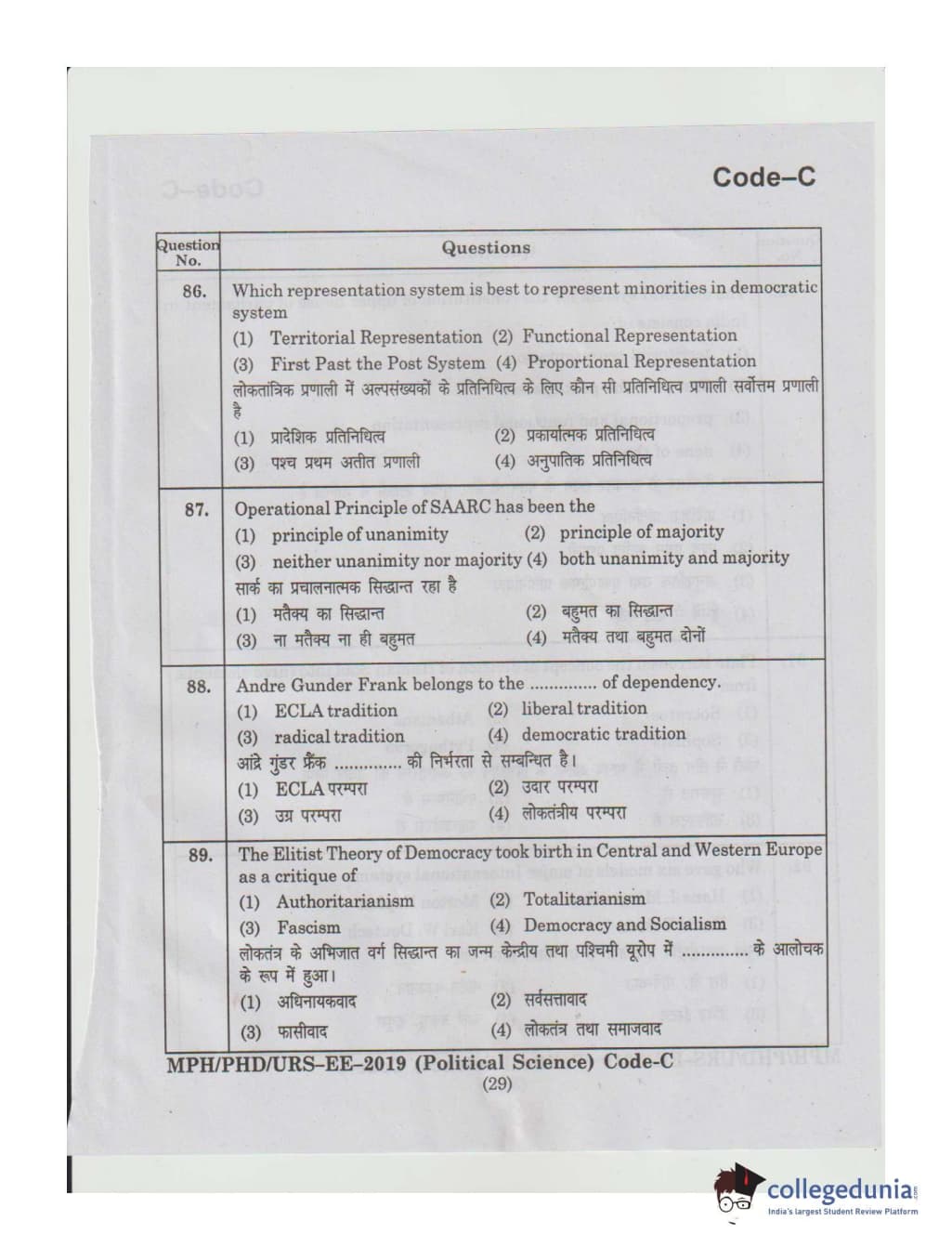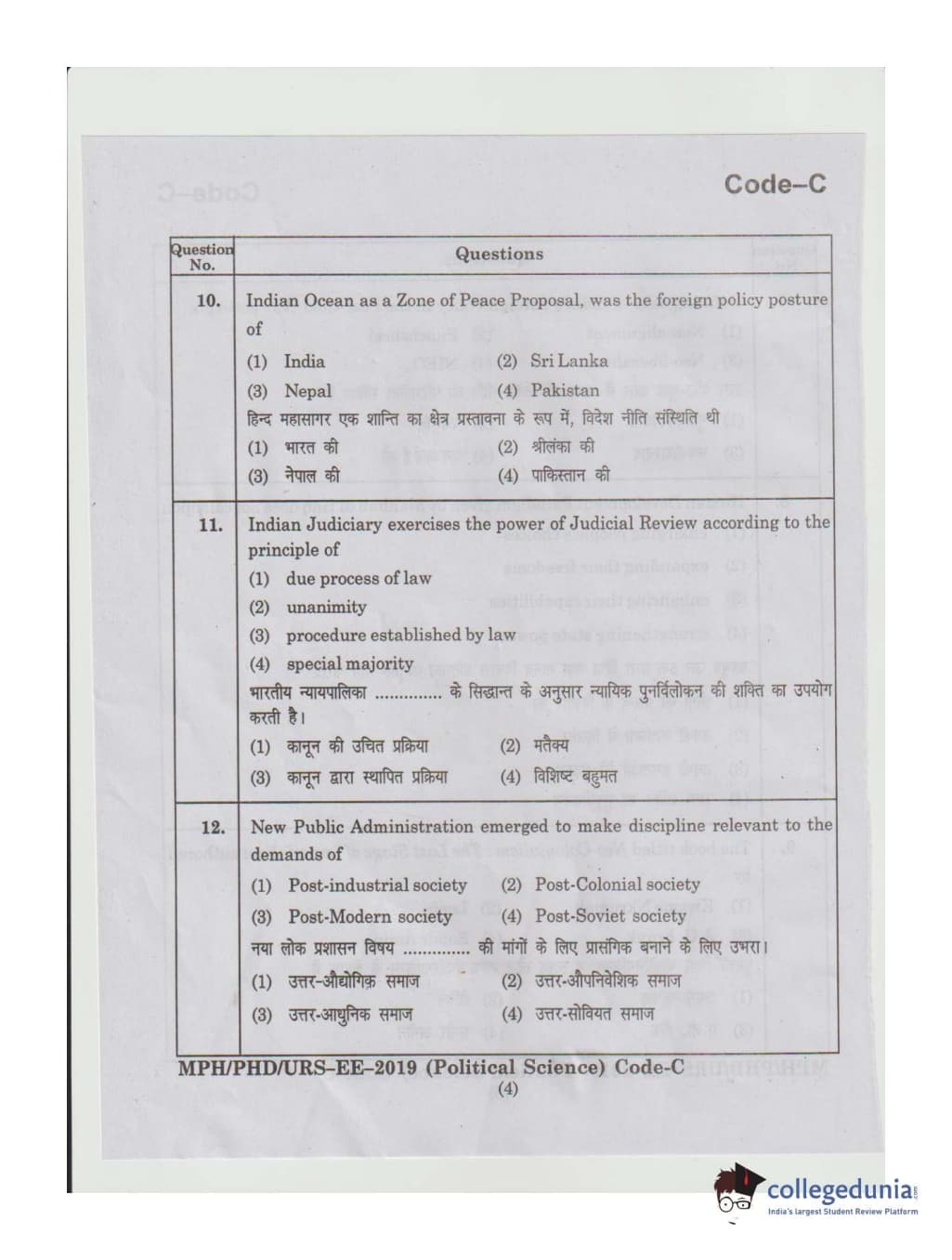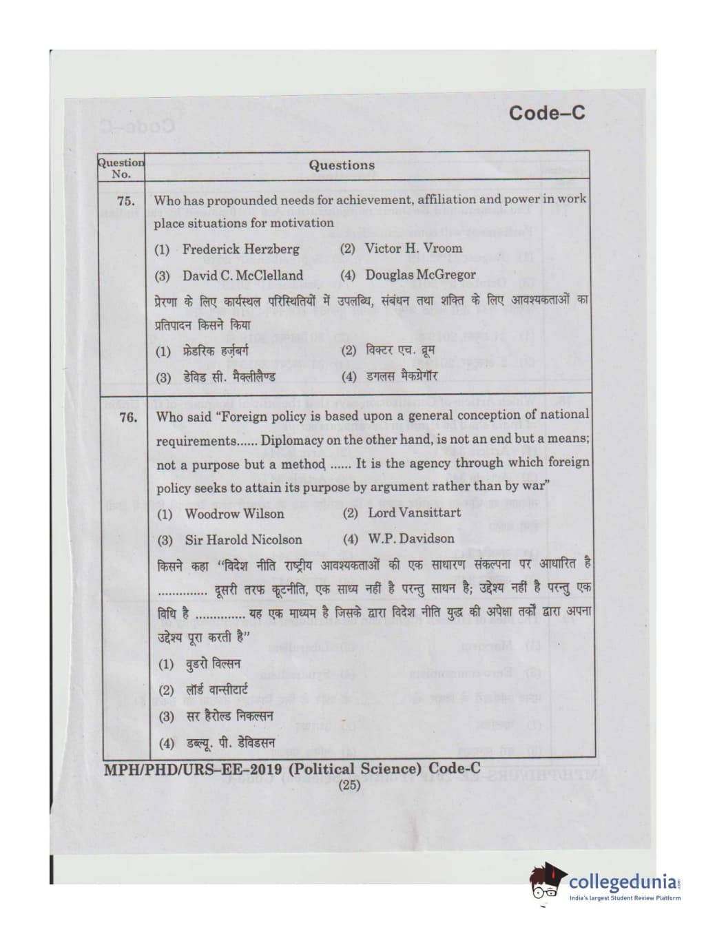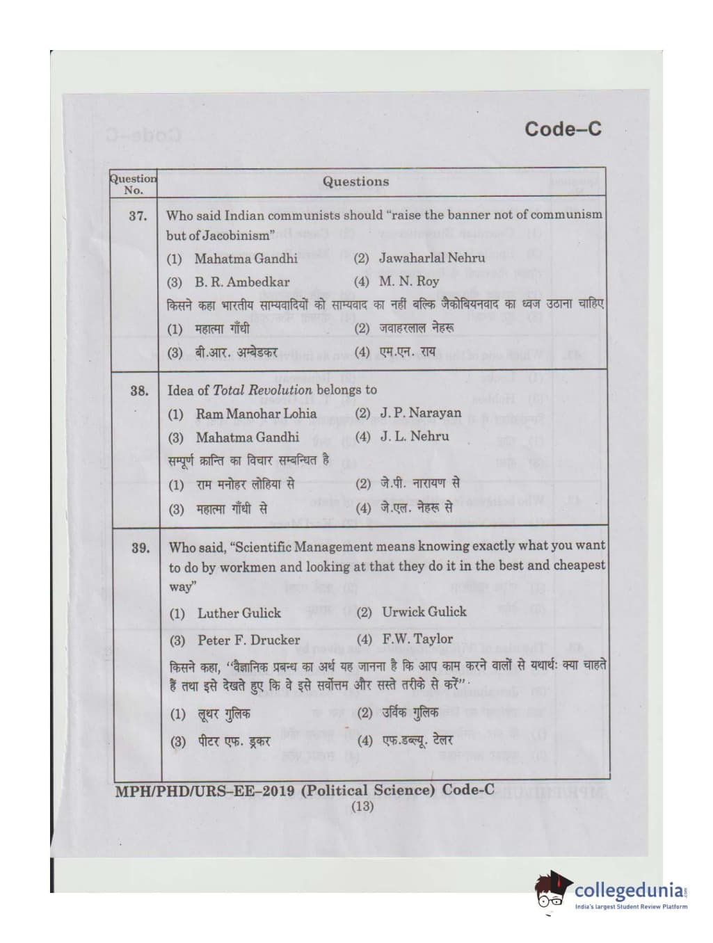 MDUCEE 2019 Ph.D./M.Phil./URS Political Science Set C Question Paper with Answer Key PDFs