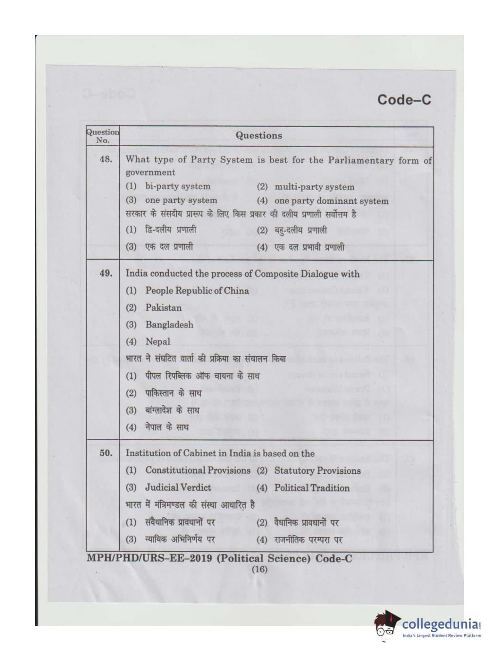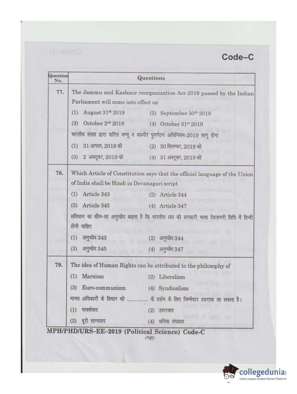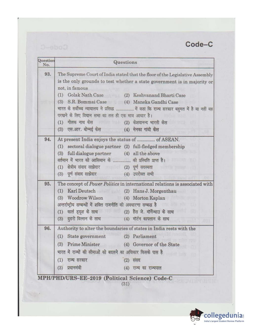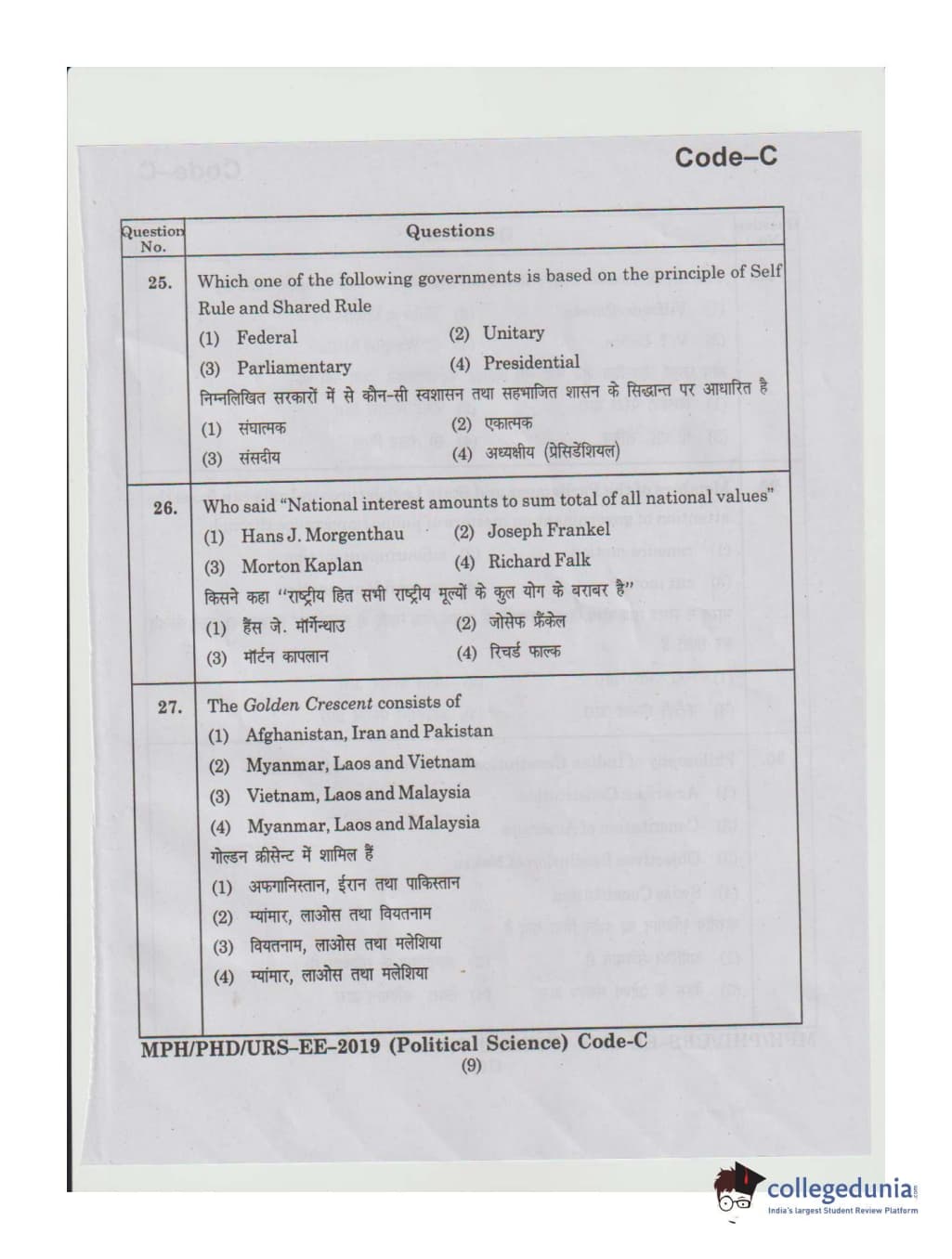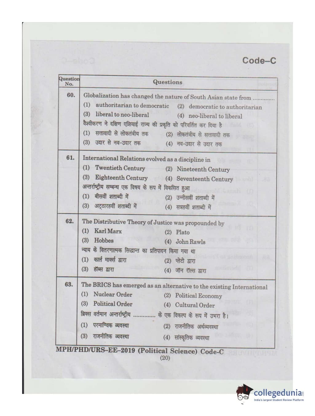 MDUCEE 2019 Ph.D./M.Phil./URS Political Science Set C Question Paper with Answer Key PDFs