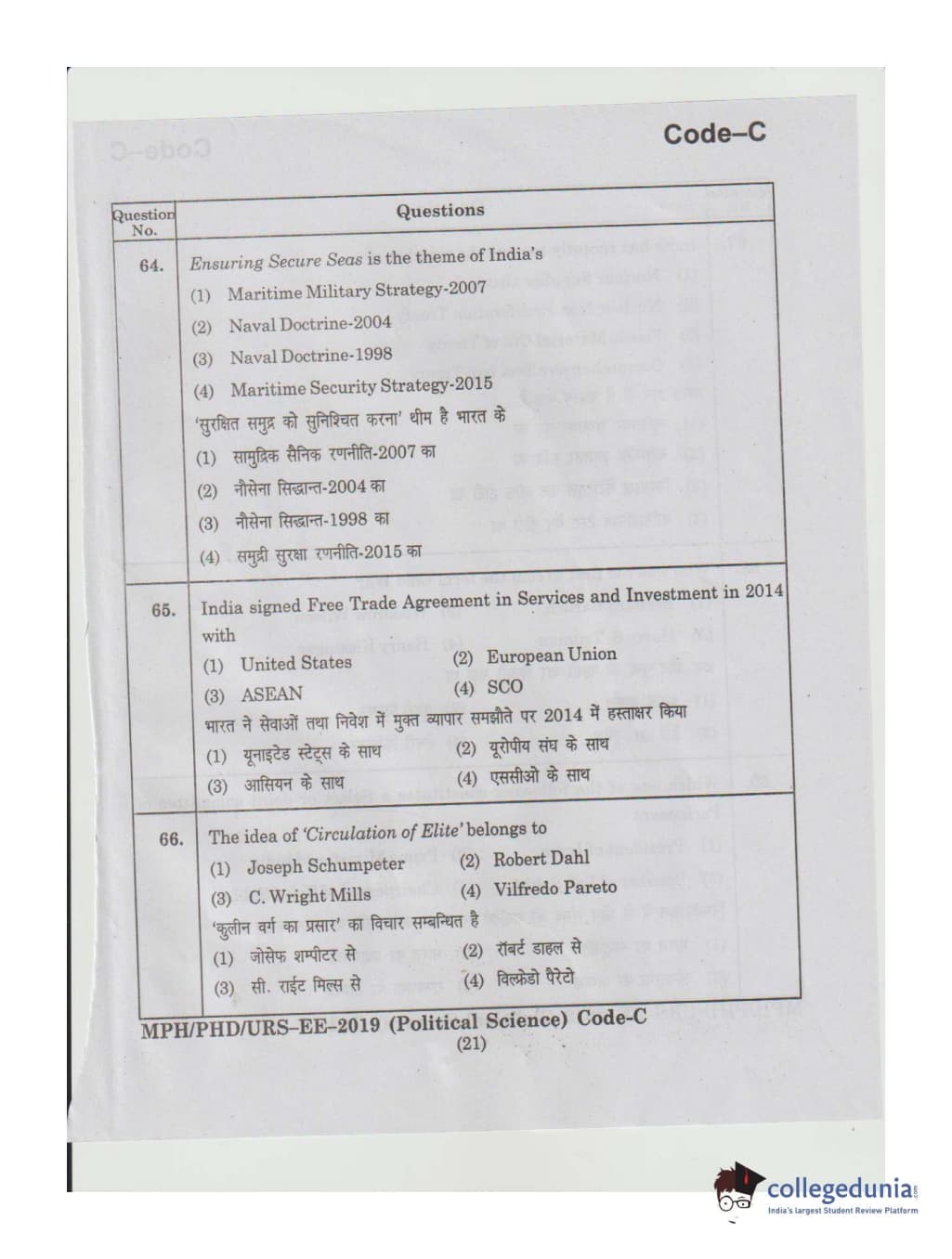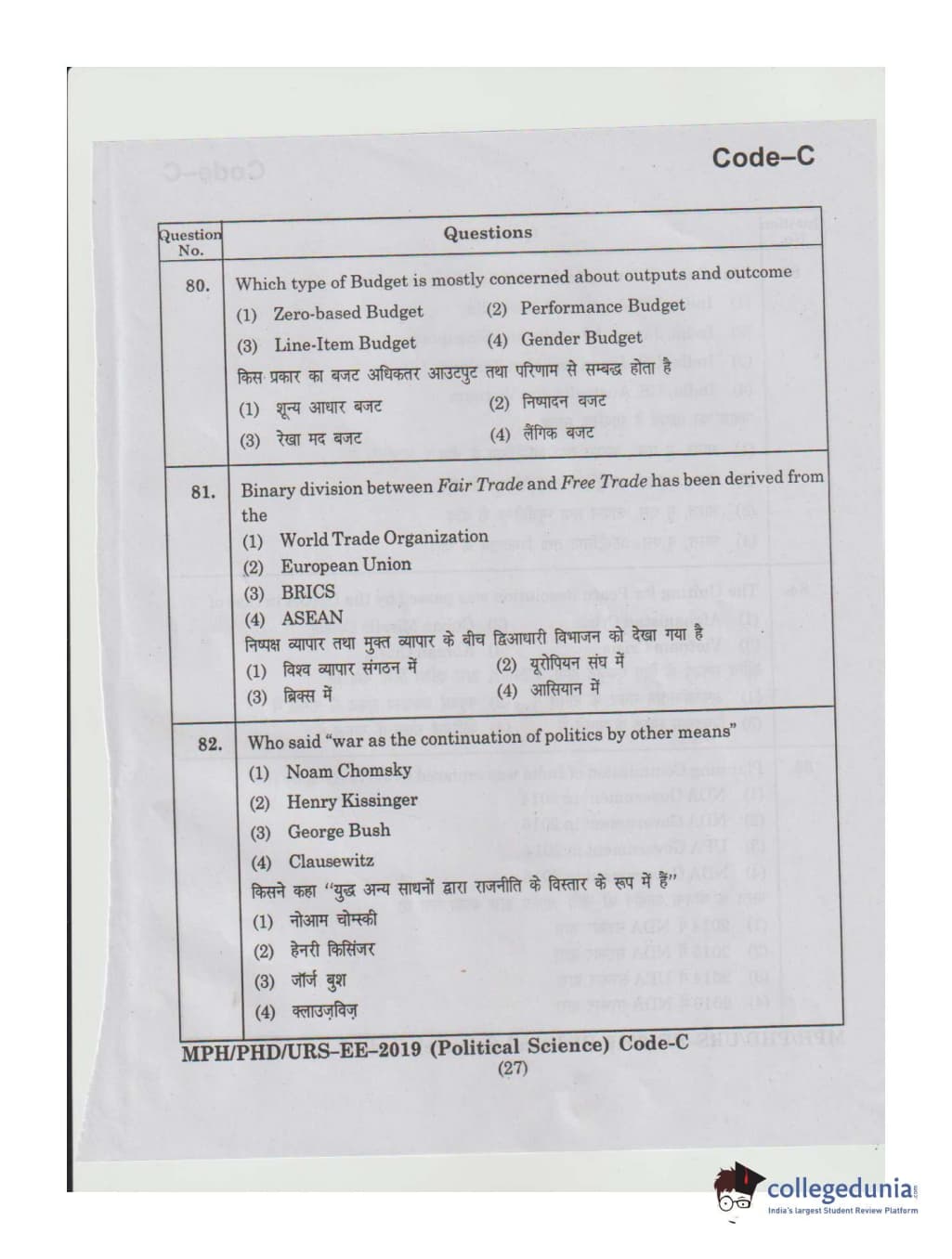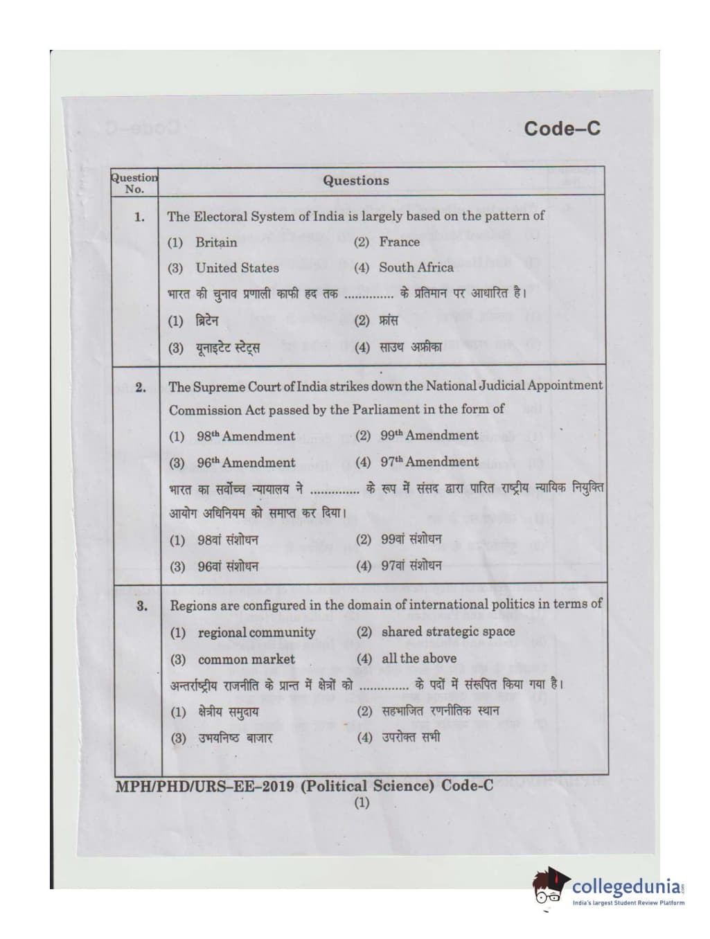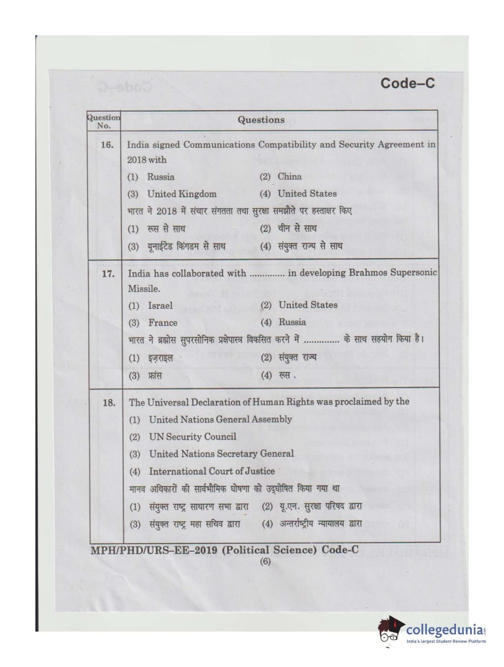 | MDUCEE 2019 Ph.D./M.Phil./URS Political Science Set C Question Paper PDF | MDUCEE 2019 Ph.D./M.Phil./URS Political Science Set C Answer Key PDF |