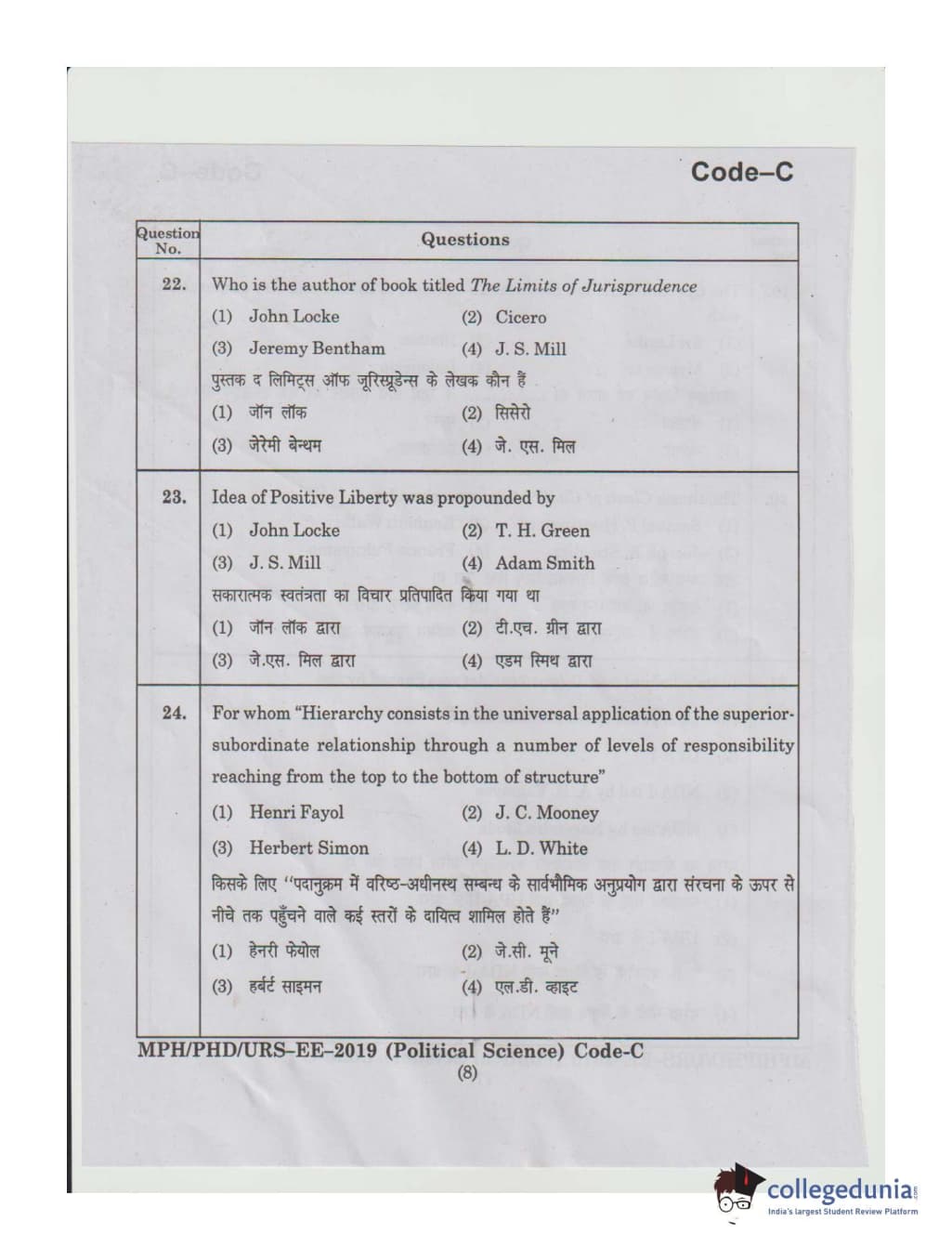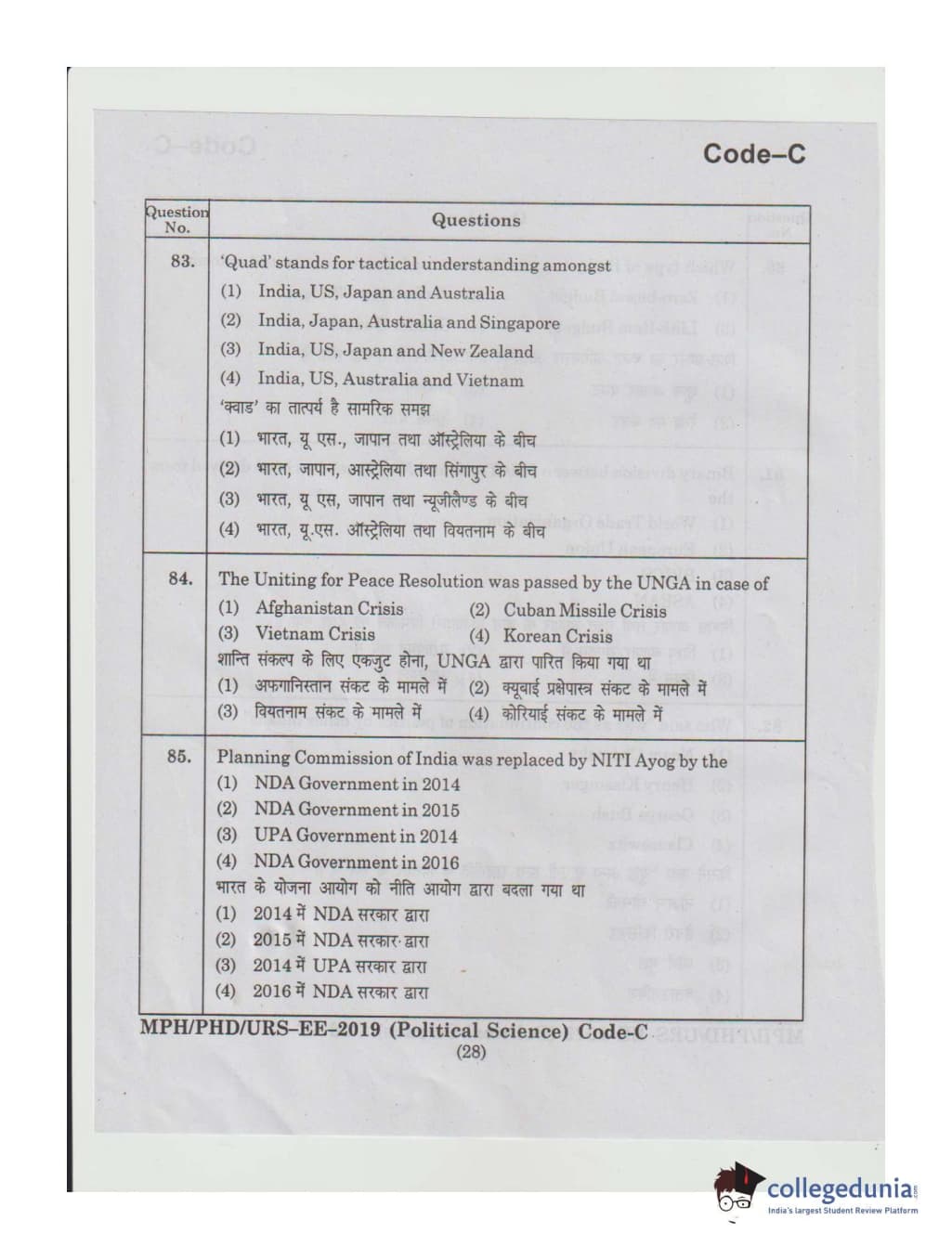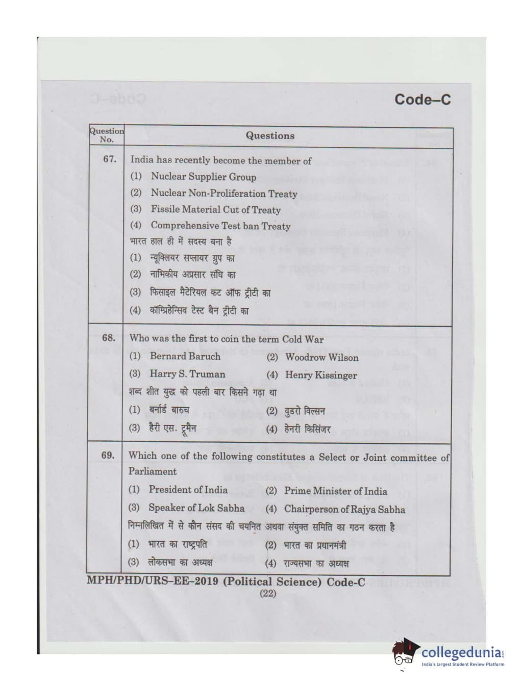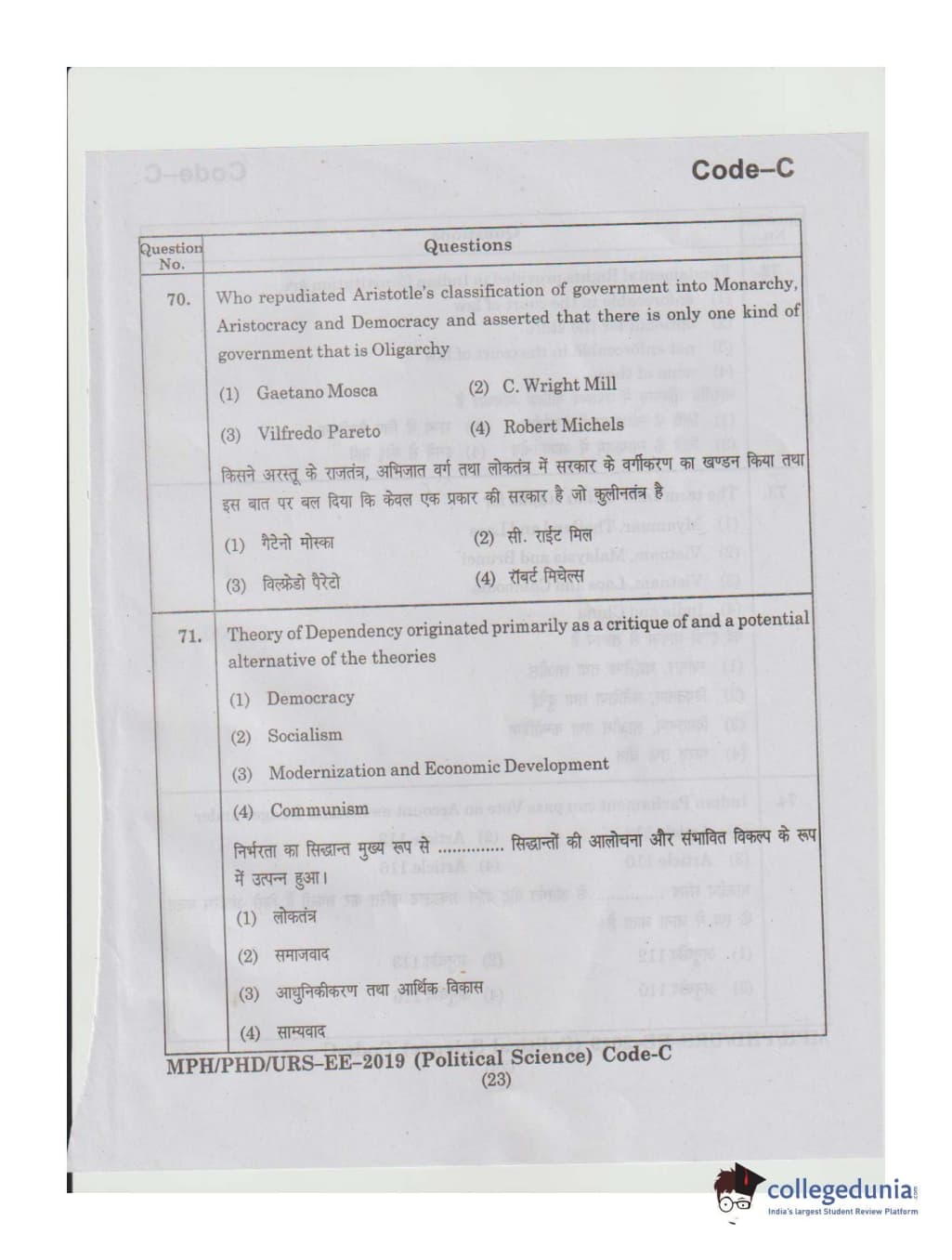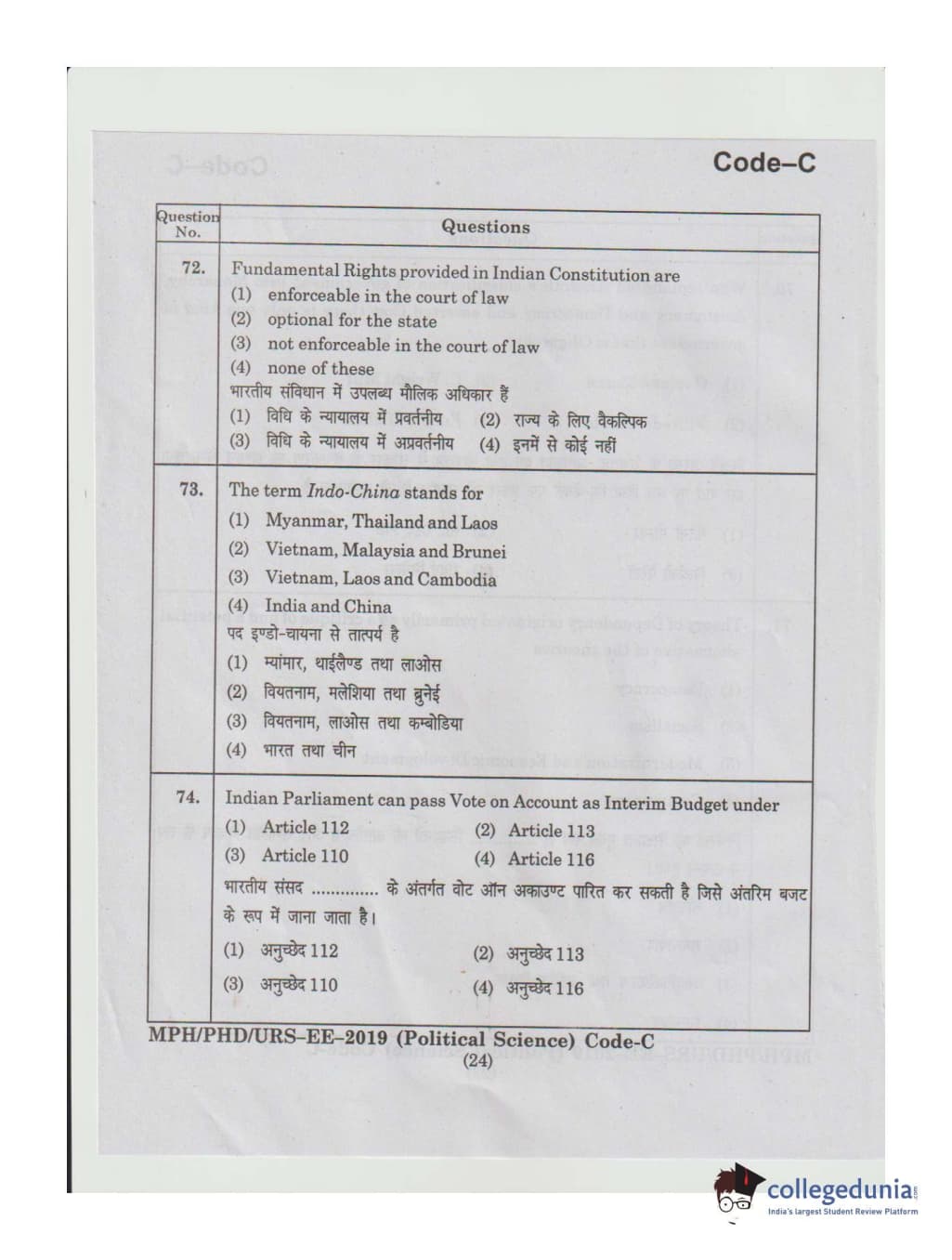 | MDUCEE 2019 Ph.D./M.Phil./URS Political Science Set C Question Paper PDF | MDUCEE 2019 Ph.D./M.Phil./URS Political Science Set C Answer Key PDF |