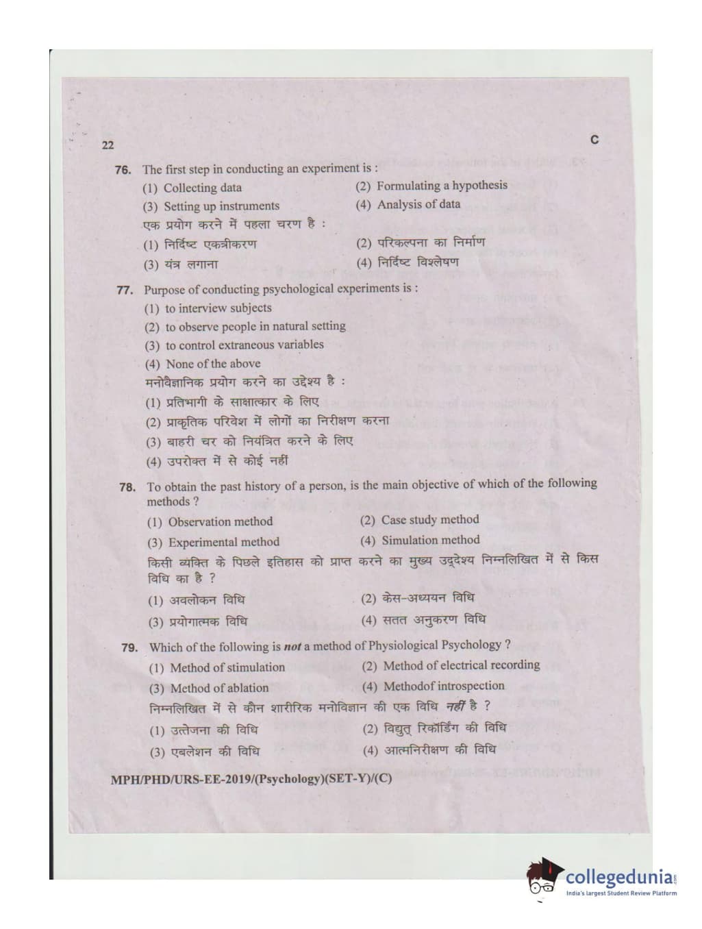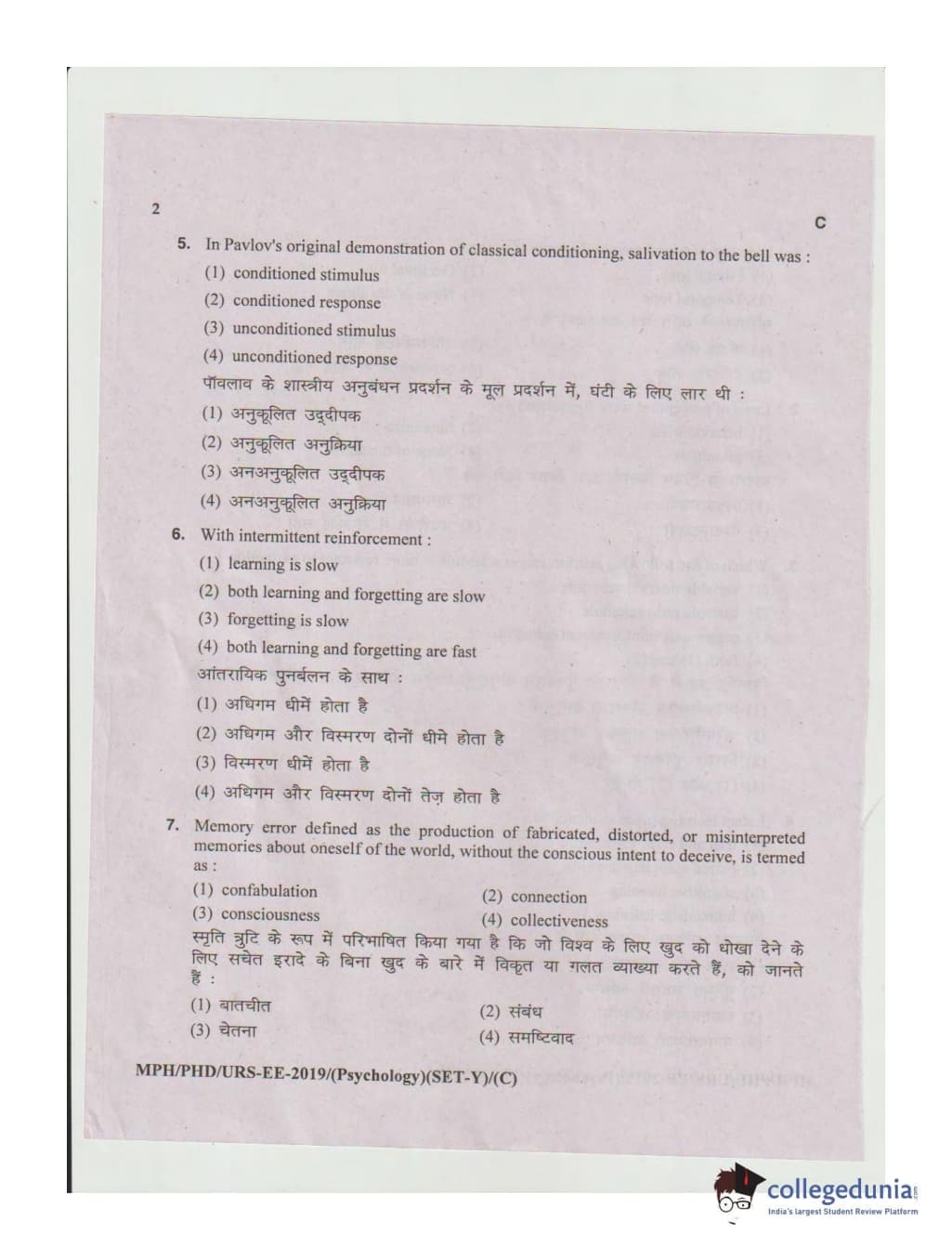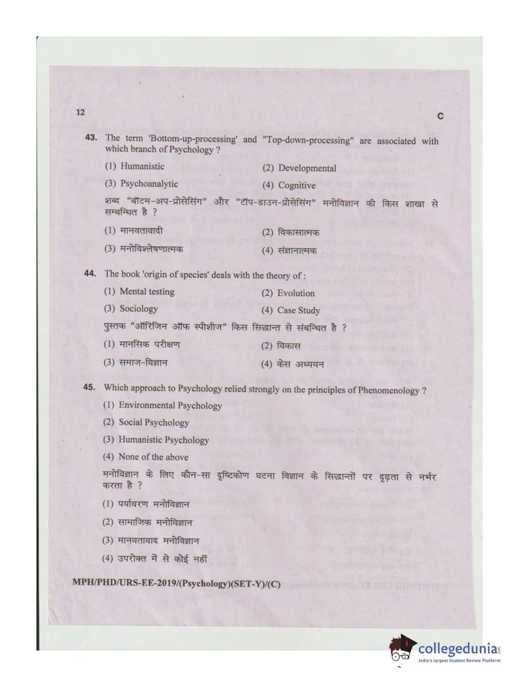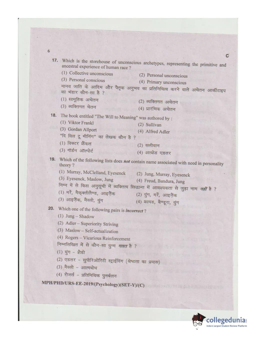 MDUCEE 2019 Ph.D./M.Phil./URS Psychology Set C Question Paper with Answer Key PDFs