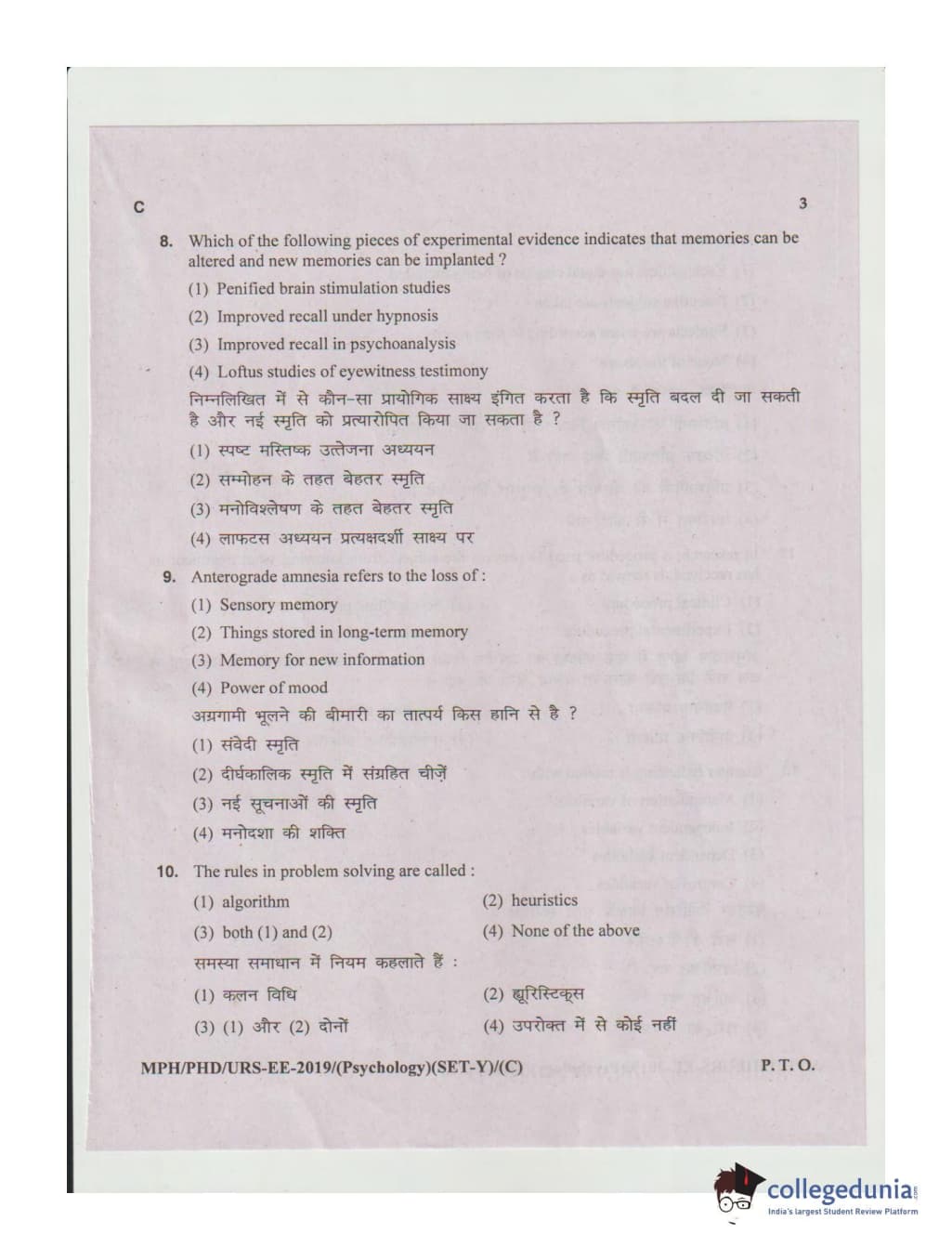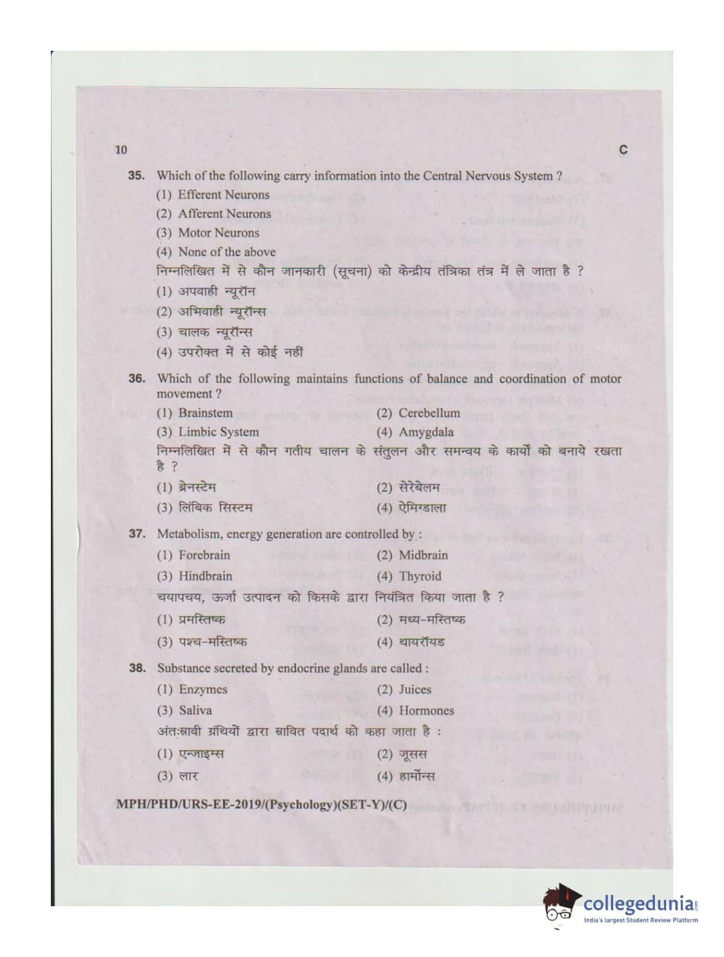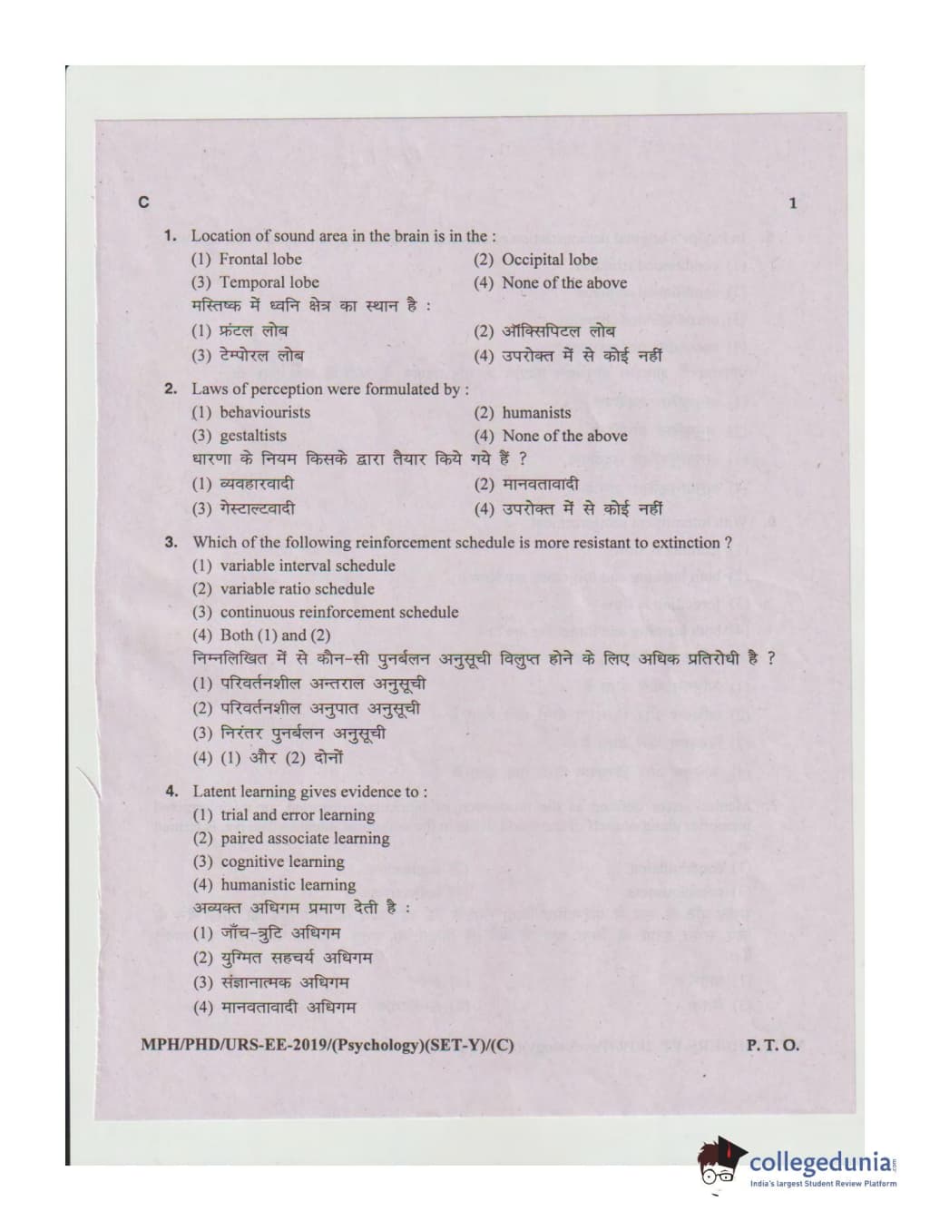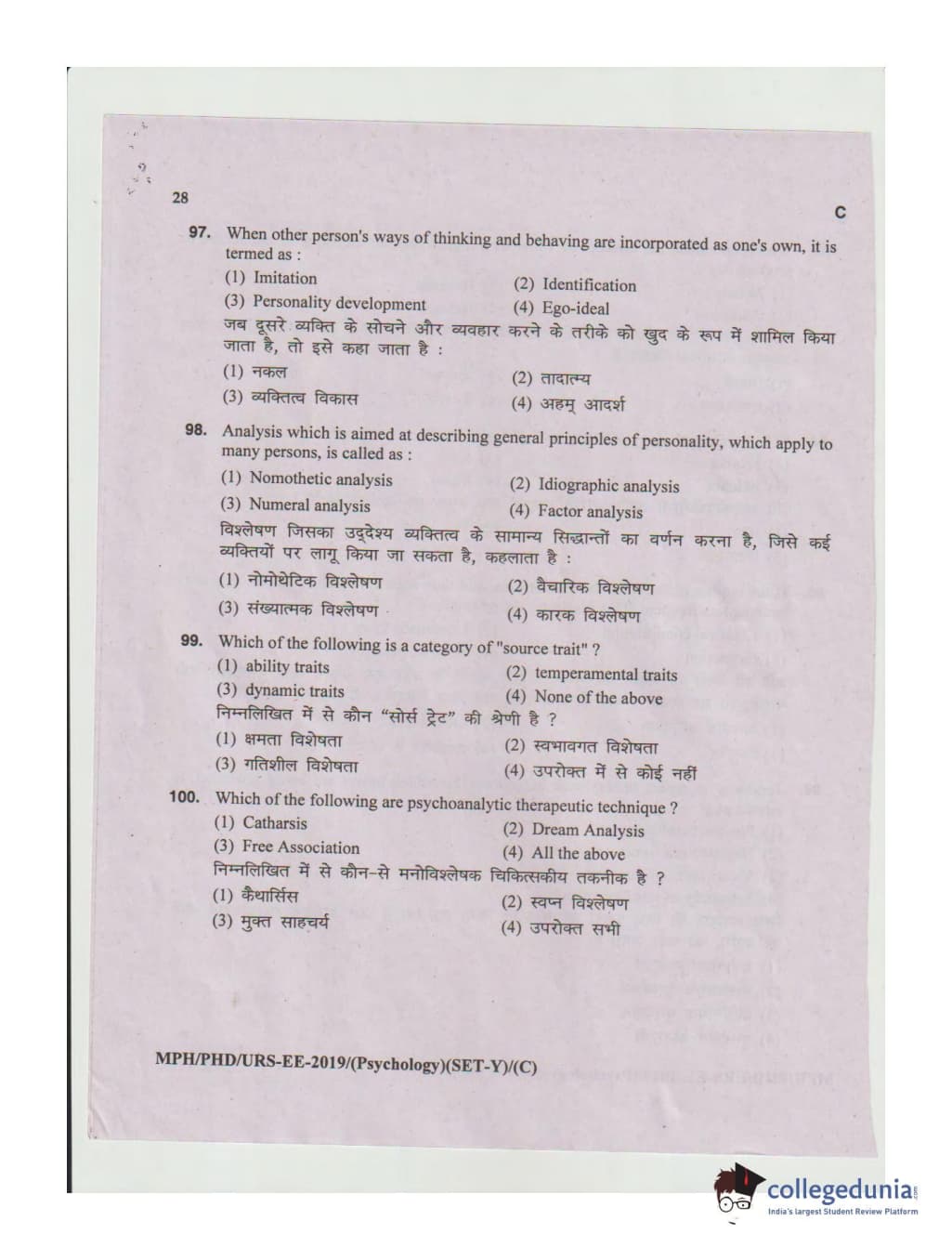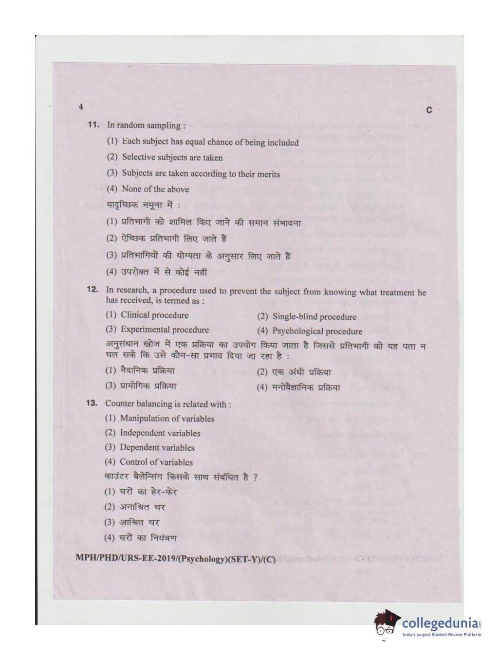 MDUCEE 2019 Ph.D./M.Phil./URS Psychology Set C Question Paper with Answer Key PDFs