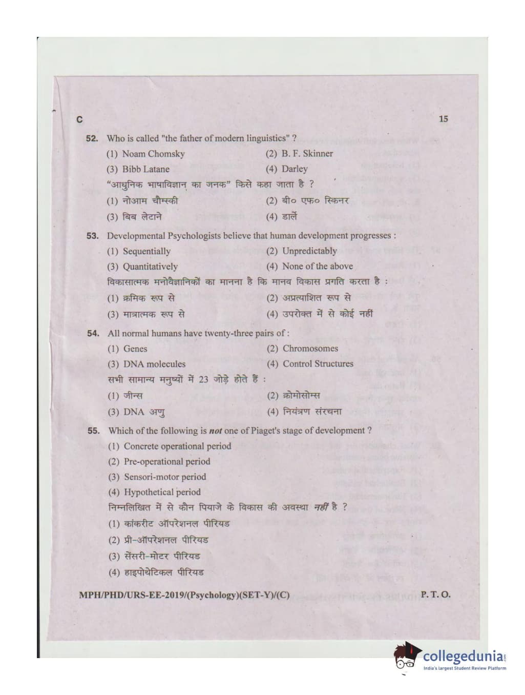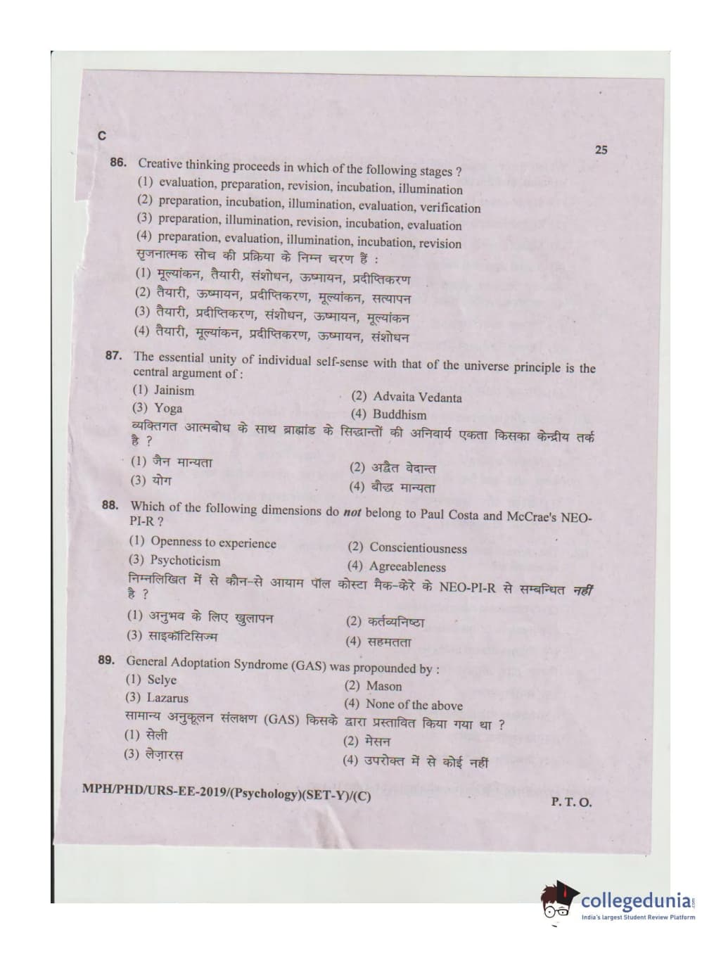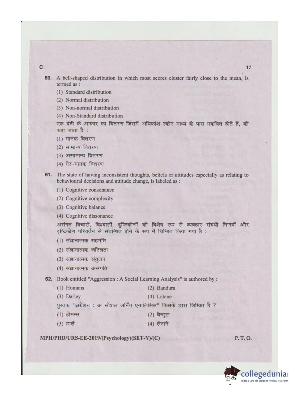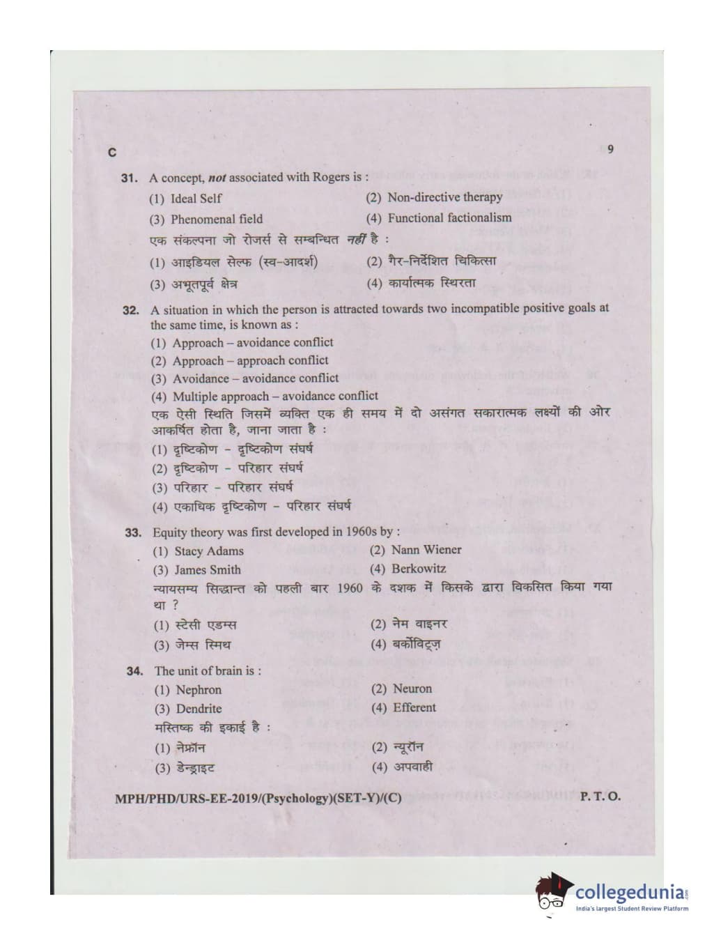 MDUCEE 2019 Ph.D./M.Phil./URS Psychology Set C Question Paper with Answer Key PDFs
