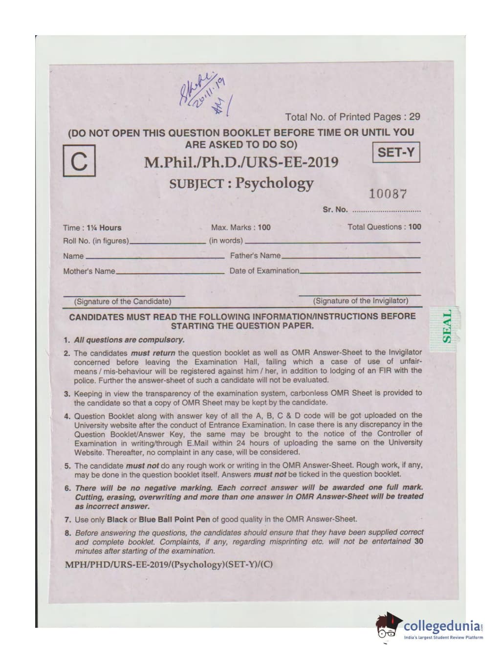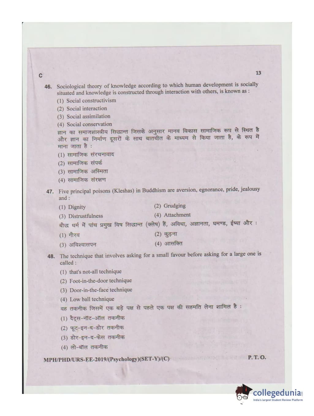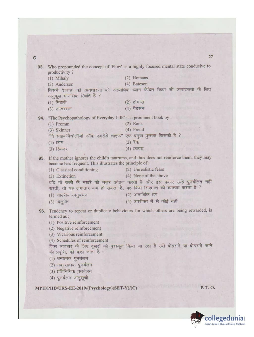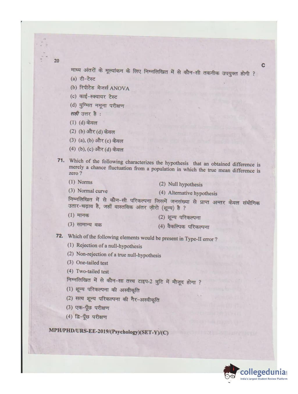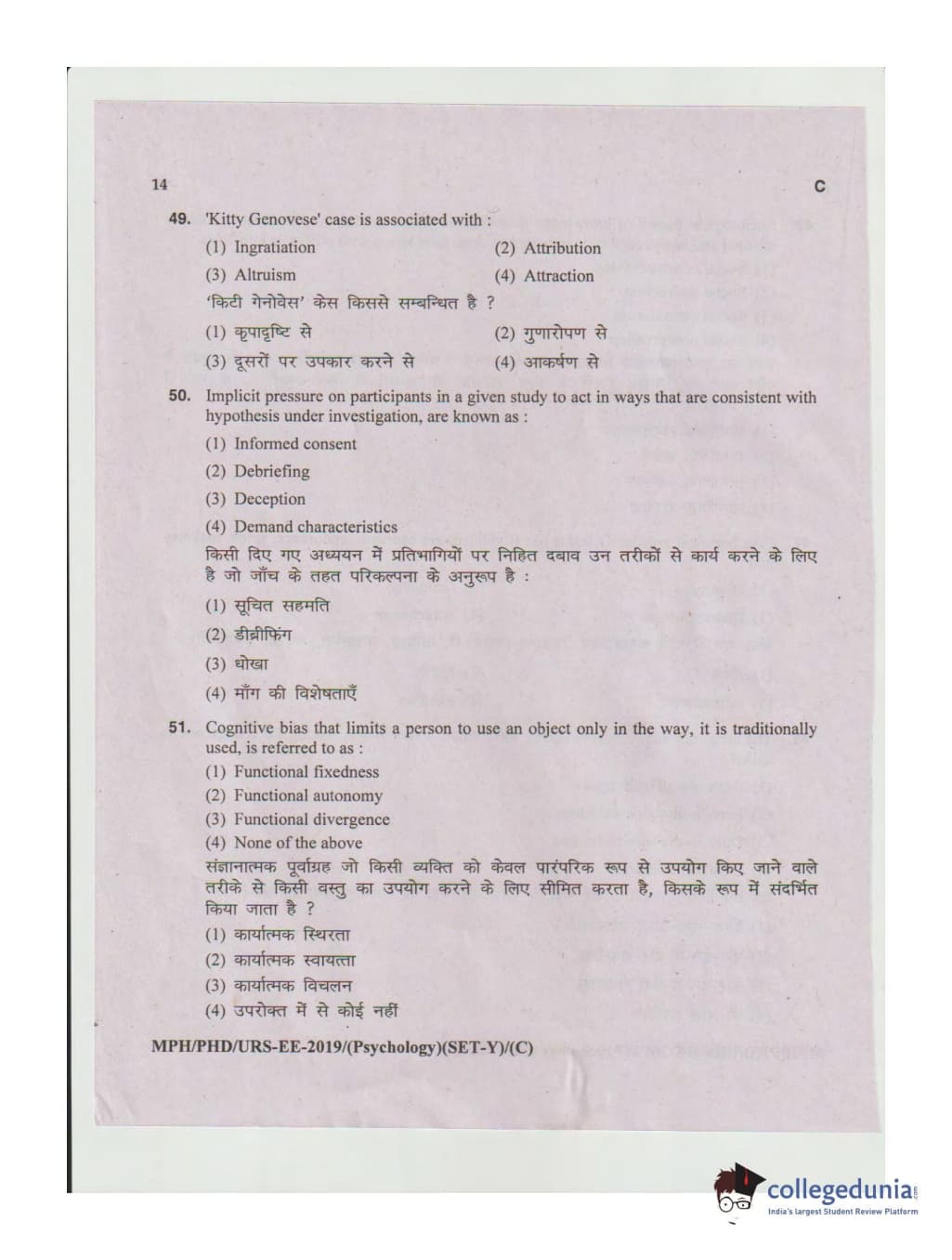 | MDUCEE 2019 Ph.D./M.Phil./URS Psychology Set C Question Paper PDF | MDUCEE 2019 Ph.D./M.Phil./URS Psychology Set C Answer Key PDF |