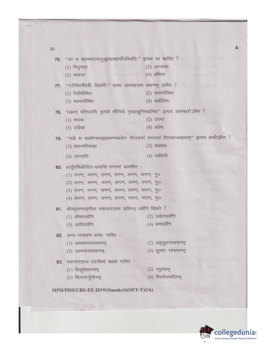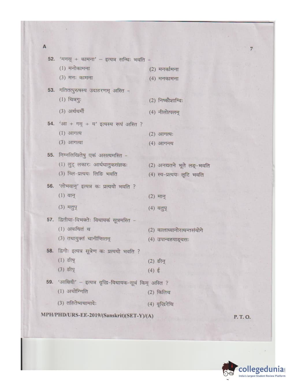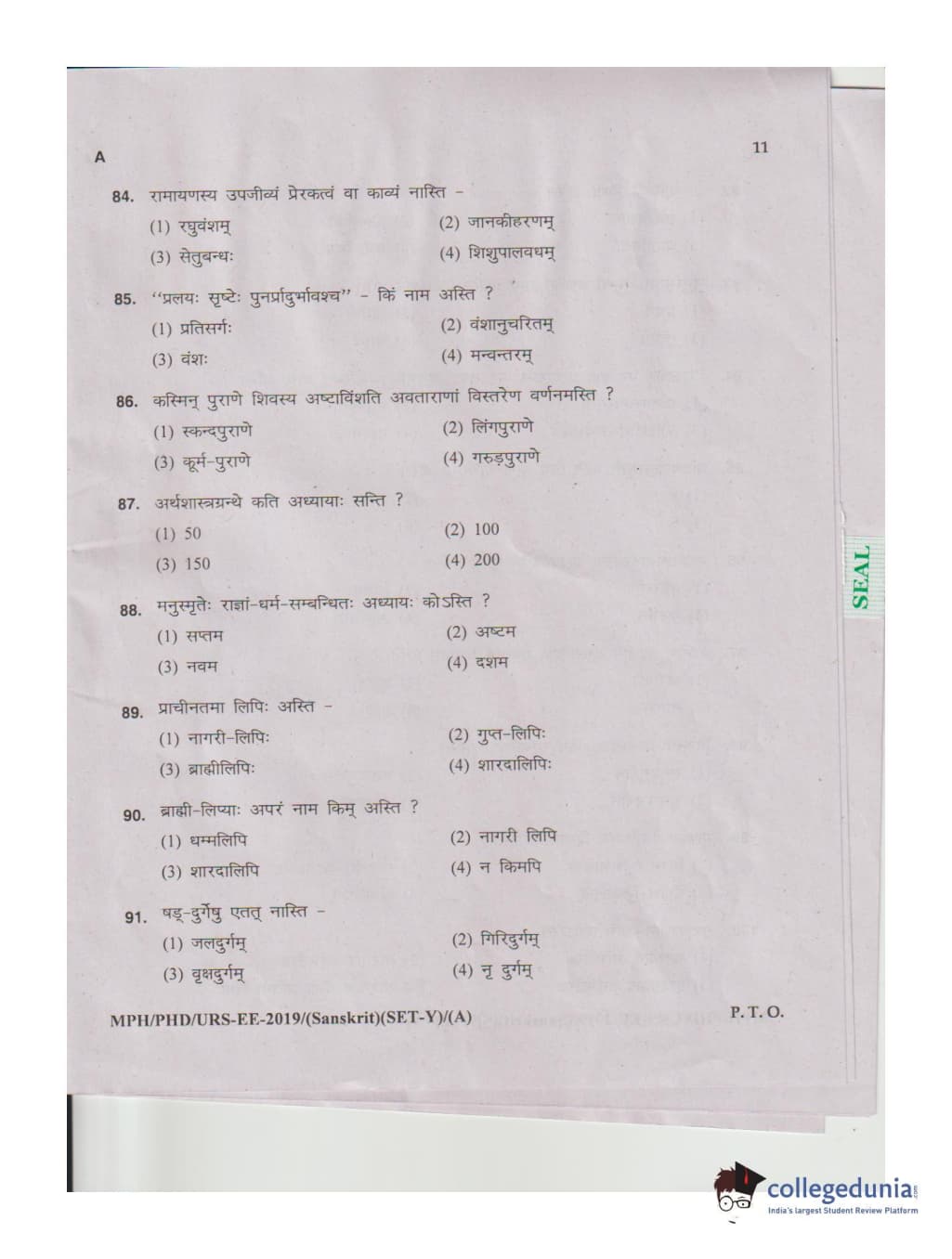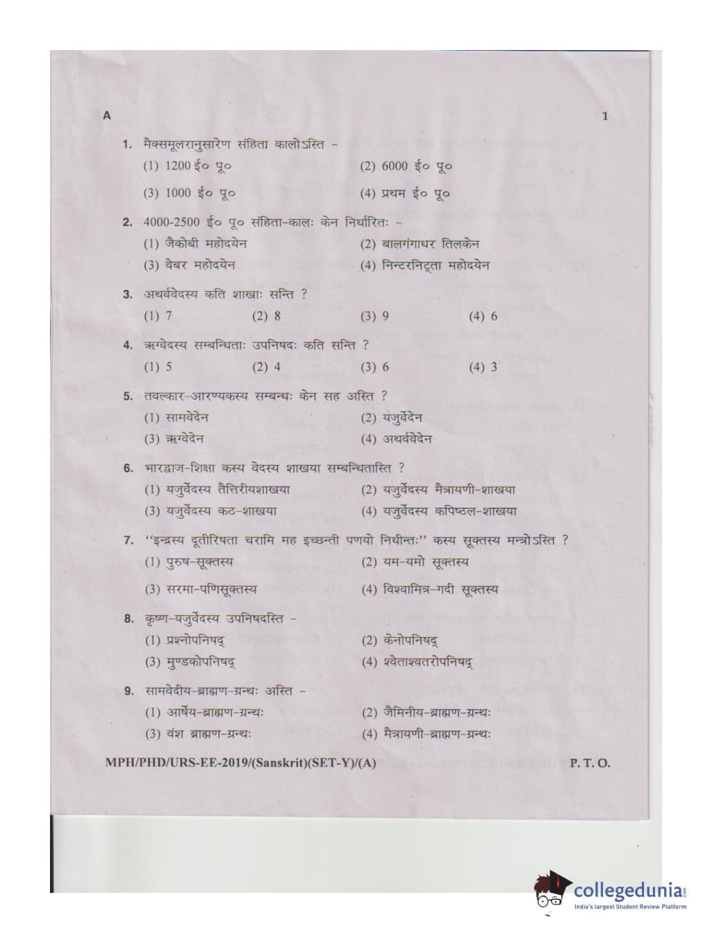 MDUCEE 2019 Ph.D./M.Phil./URS Sanskrit Set A Question Paper with Answer Key PDFs