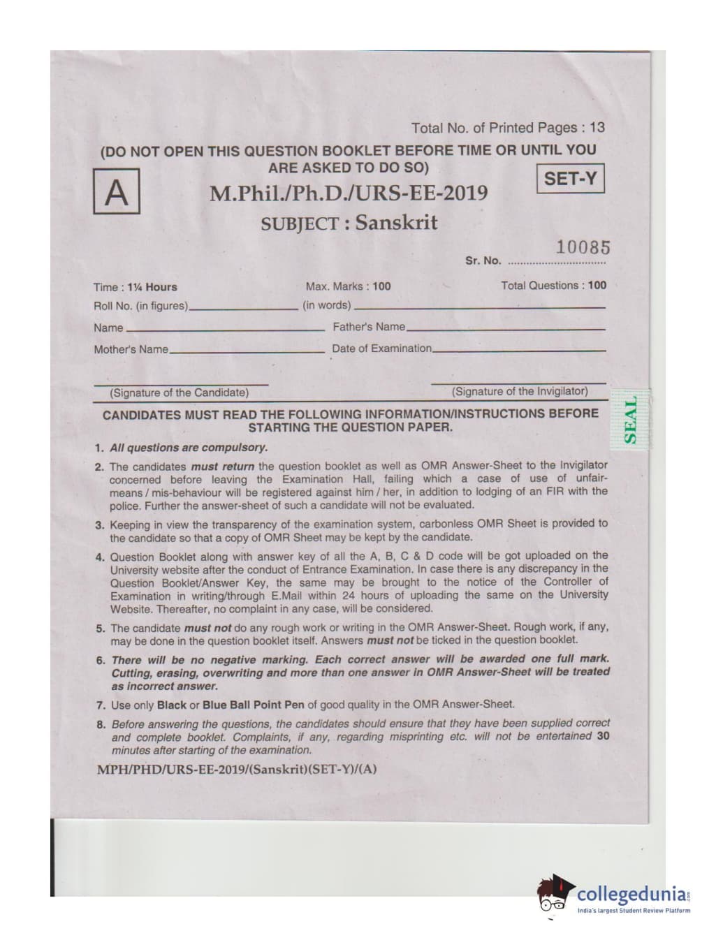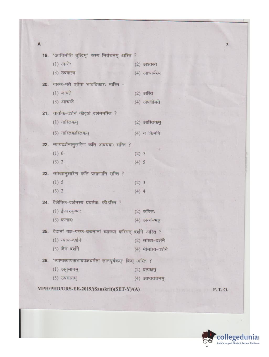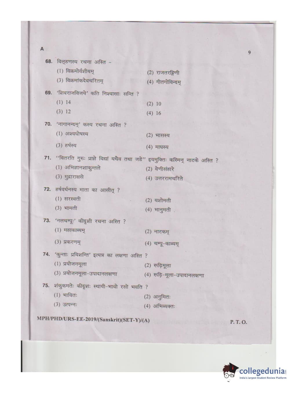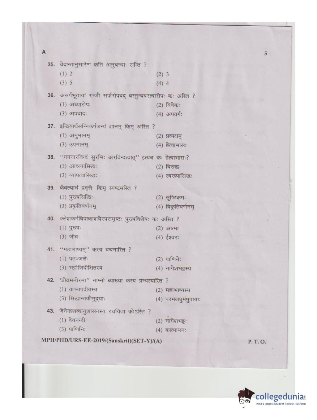MDUCEE 2019 Ph.D./M.Phil./URS Sanskrit Set A Question Paper with Answer Key PDFs