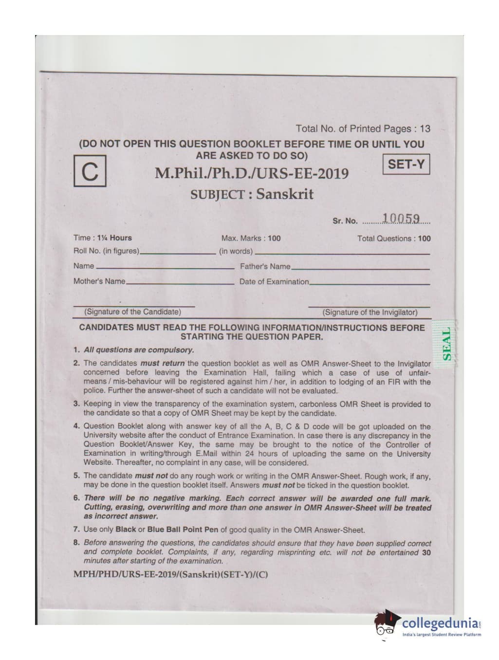 MDUCEE 2019 Ph.D./M.Phil./URS Sanskrit Set C Question paper with answer key pdf is available for download. The exam was successfully organized by Maharishi Dayanand University. The question paper comprised a total of 100 questions.