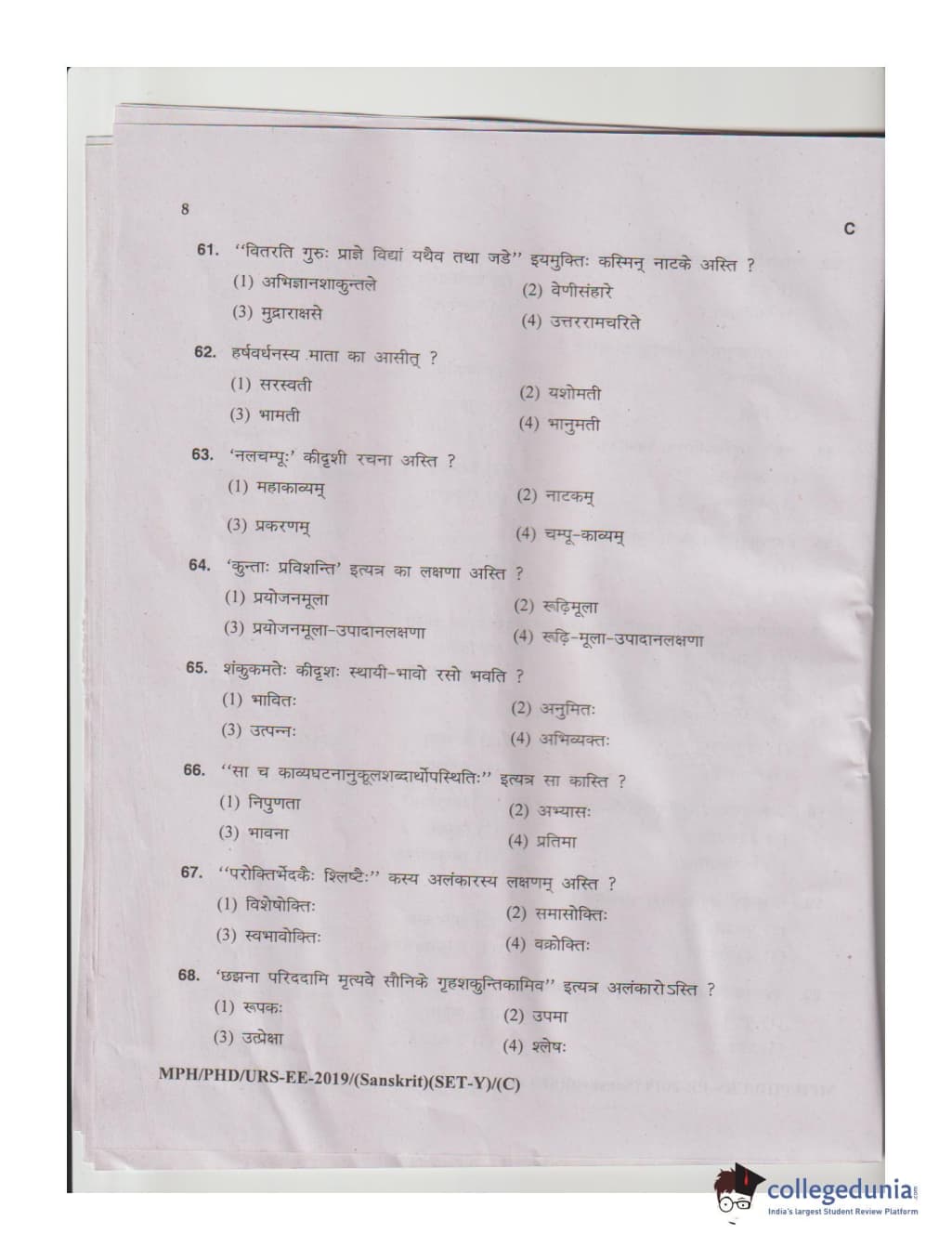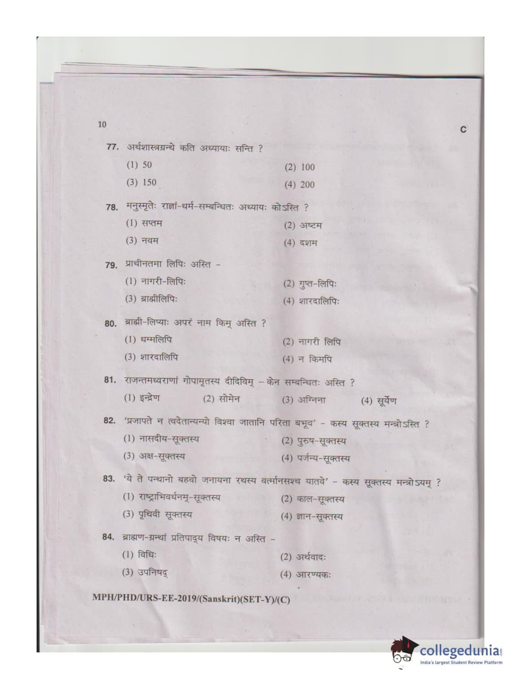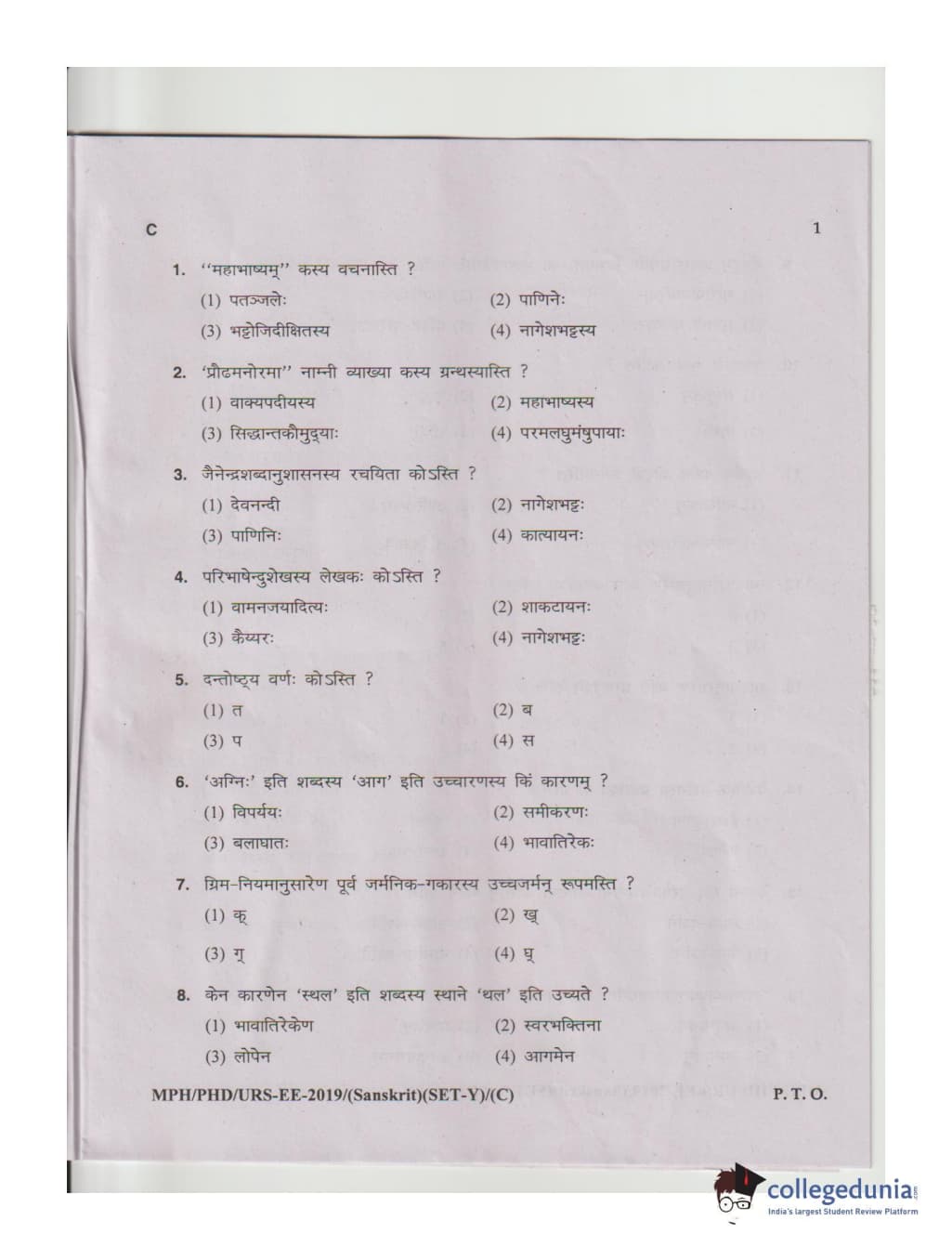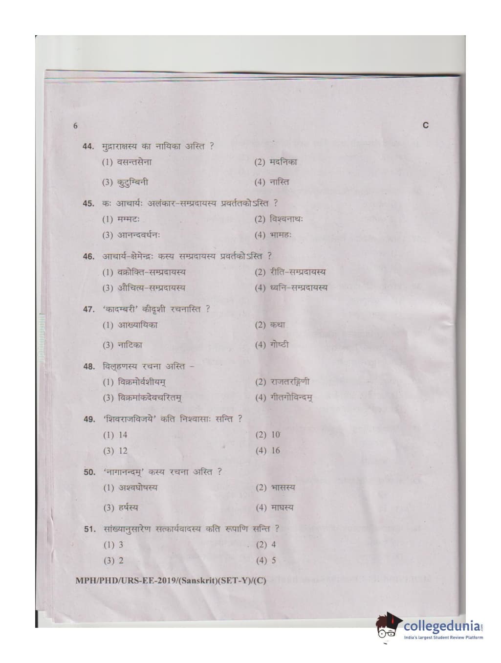 MDUCEE 2019 Ph.D./M.Phil./URS Sanskrit Set C Question Paper with Answer Key PDFs