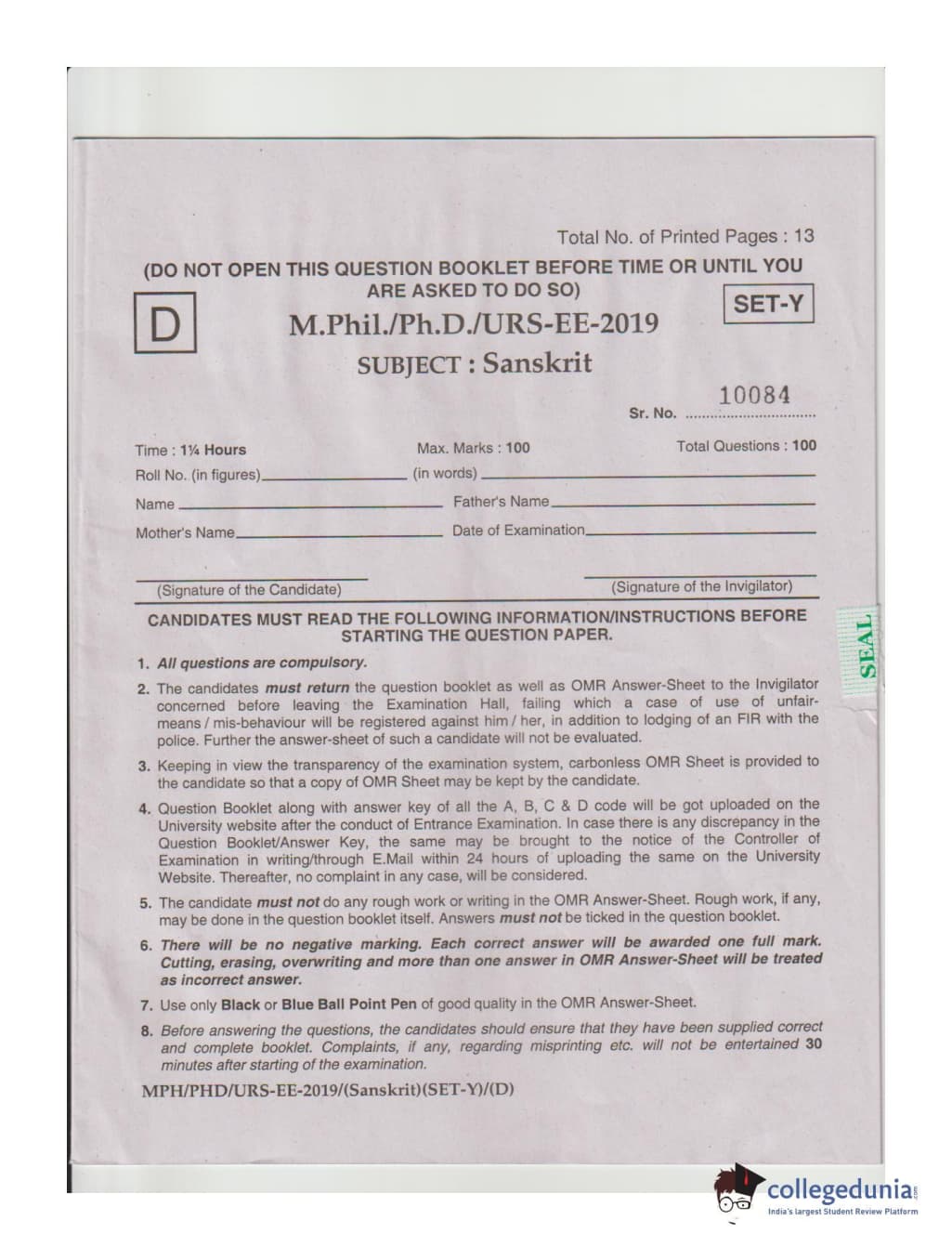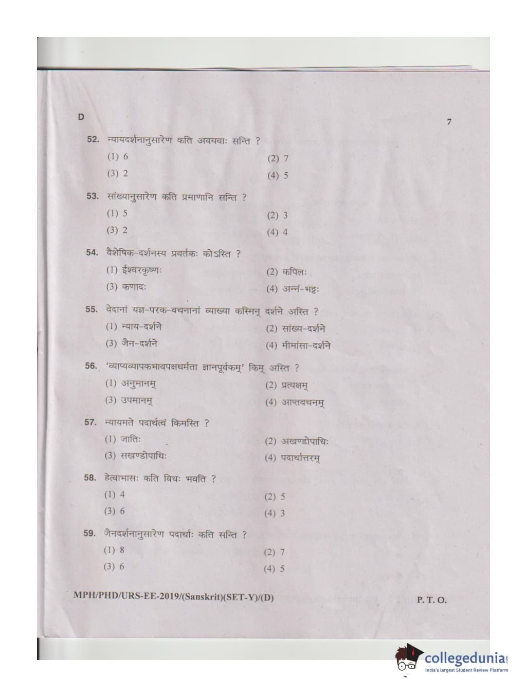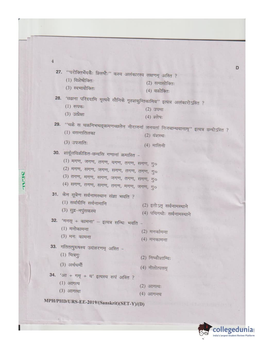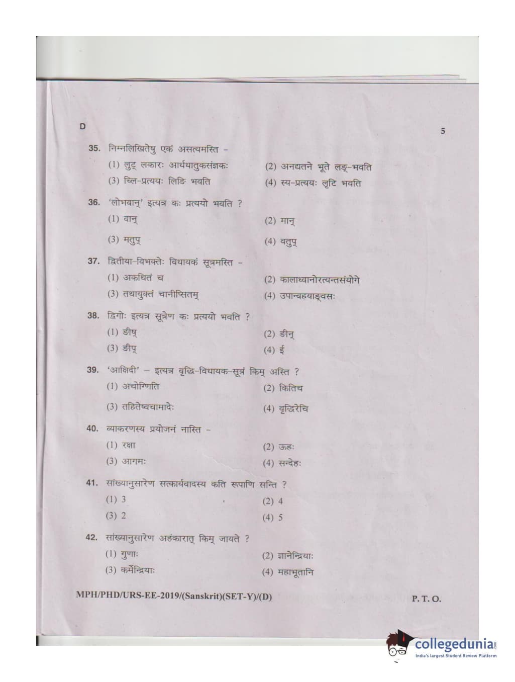 MDUCEE 2019 Ph.D./M.Phil./URS Sanskrit Set D Question Paper with Answer Key PDFs