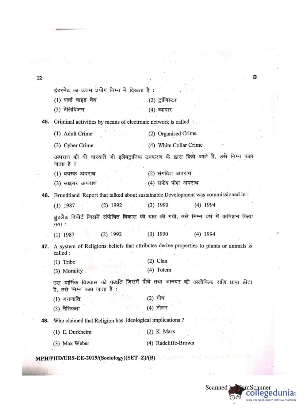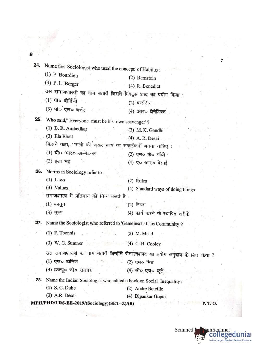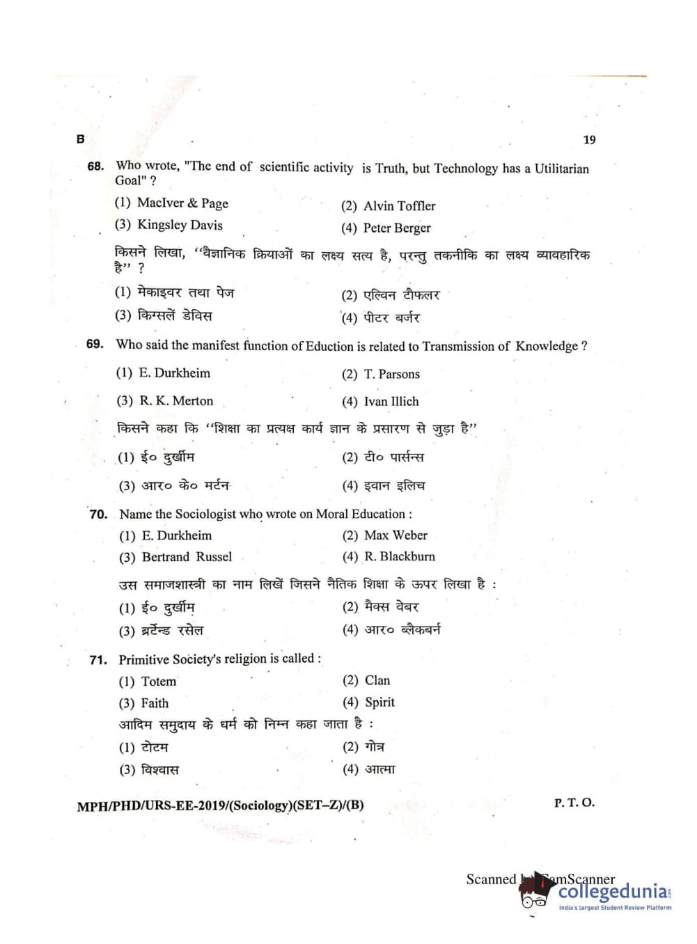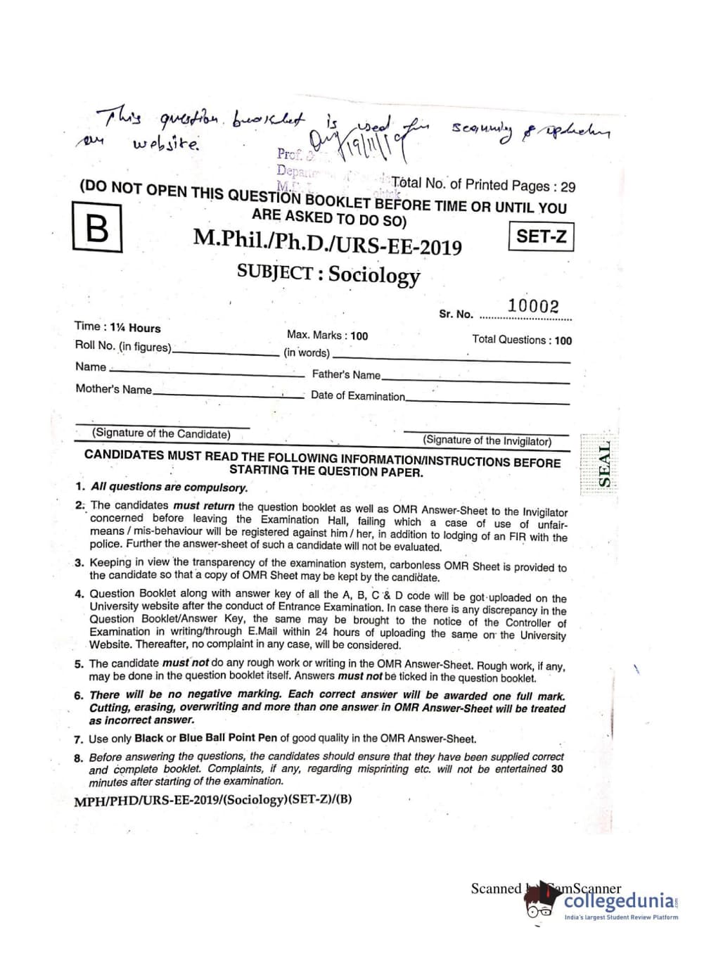 | MDUCEE 2019 Ph.D./M.Phil./URS Sociology Set B Question Paper PDF | MDUCEE 2019 Ph.D./M.Phil./URS Sociology Set B Answer Key PDF |