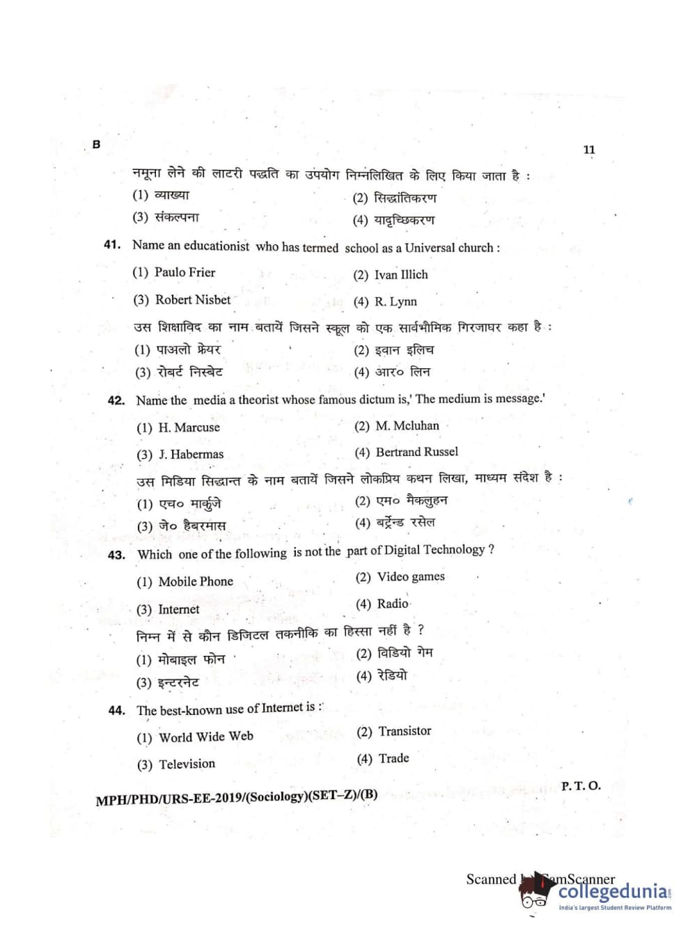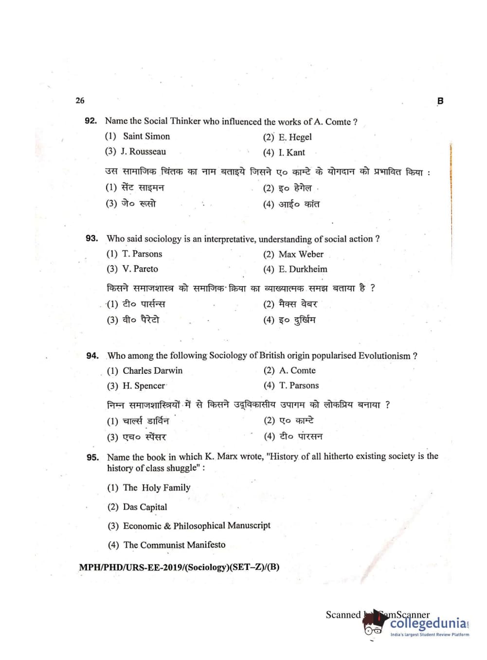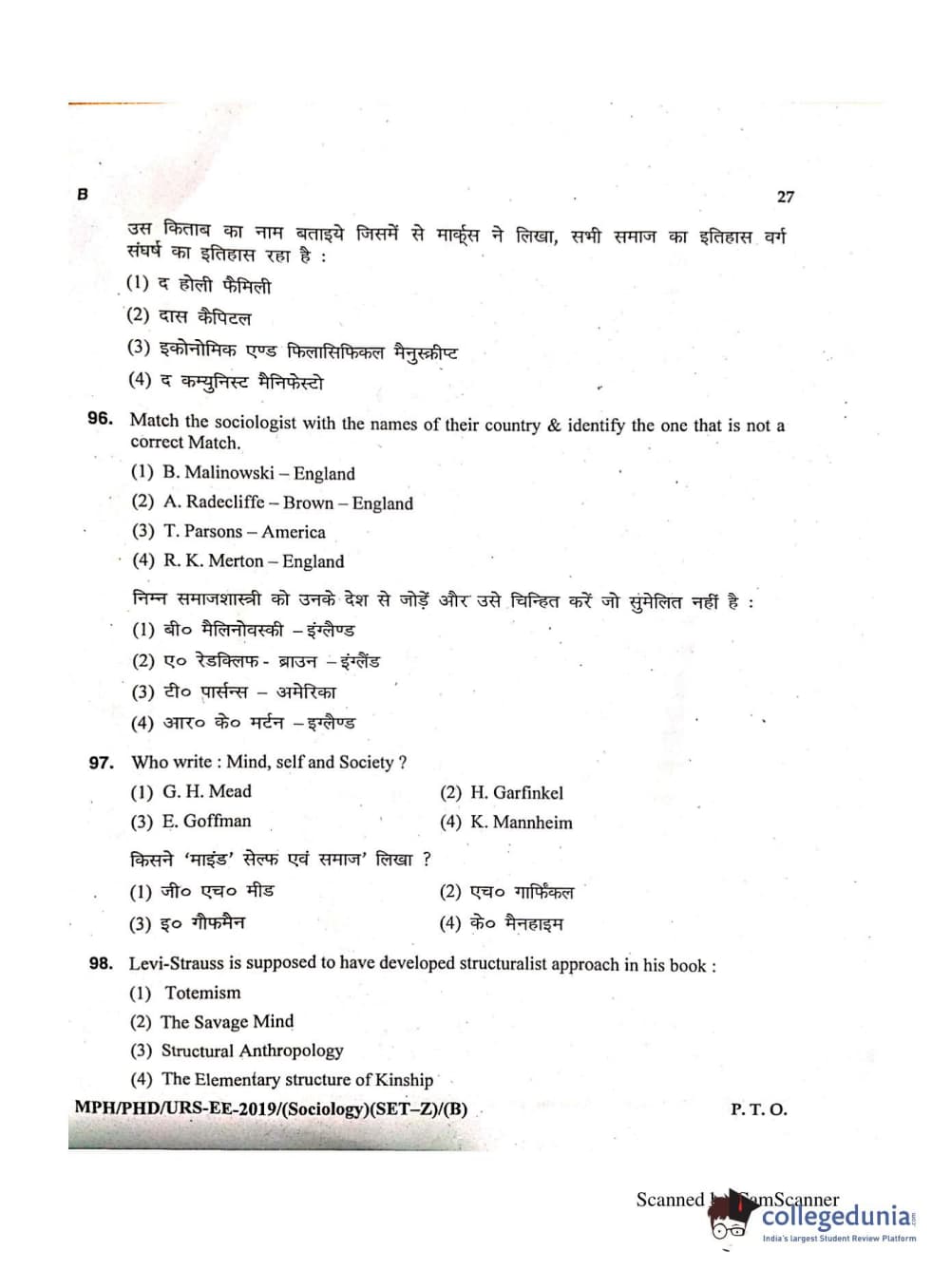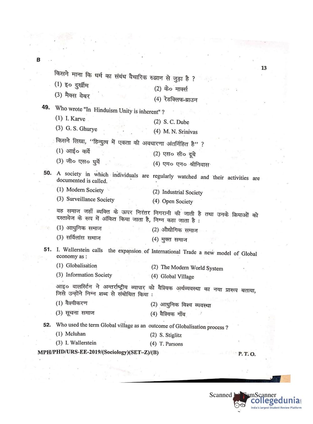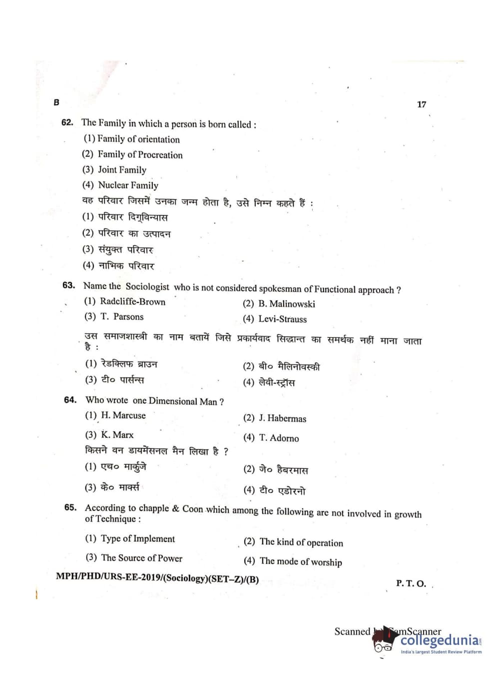 | MDUCEE 2019 Ph.D./M.Phil./URS Sociology Set B Question Paper PDF | MDUCEE 2019 Ph.D./M.Phil./URS Sociology Set B Answer Key PDF |