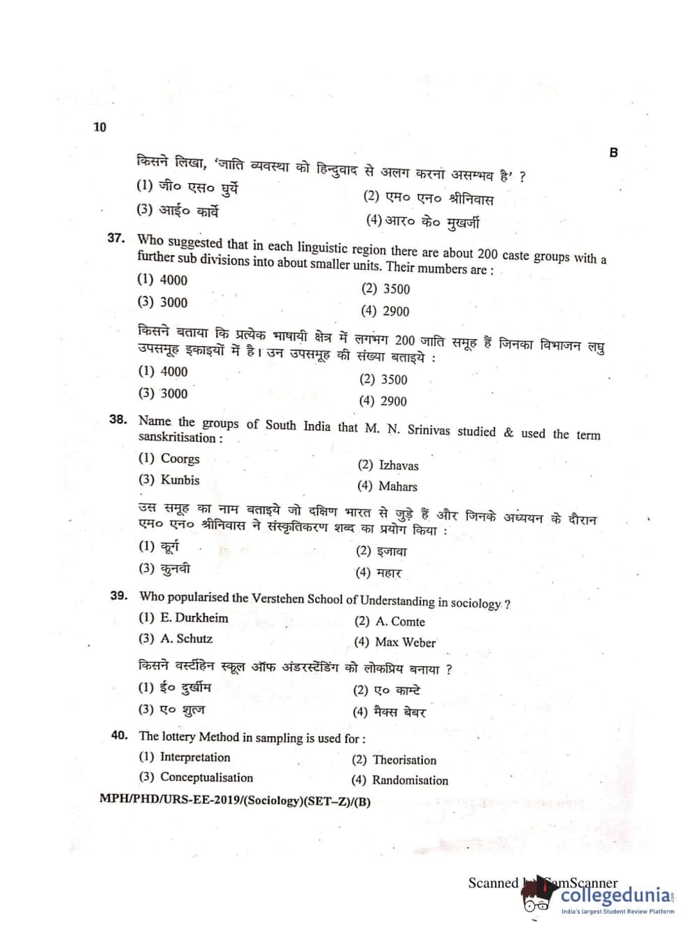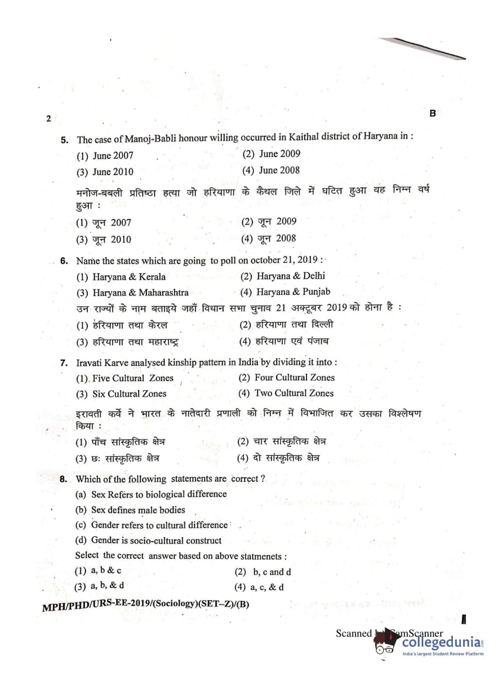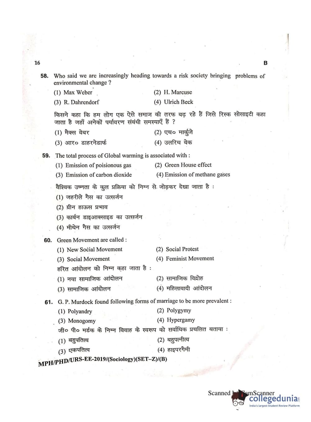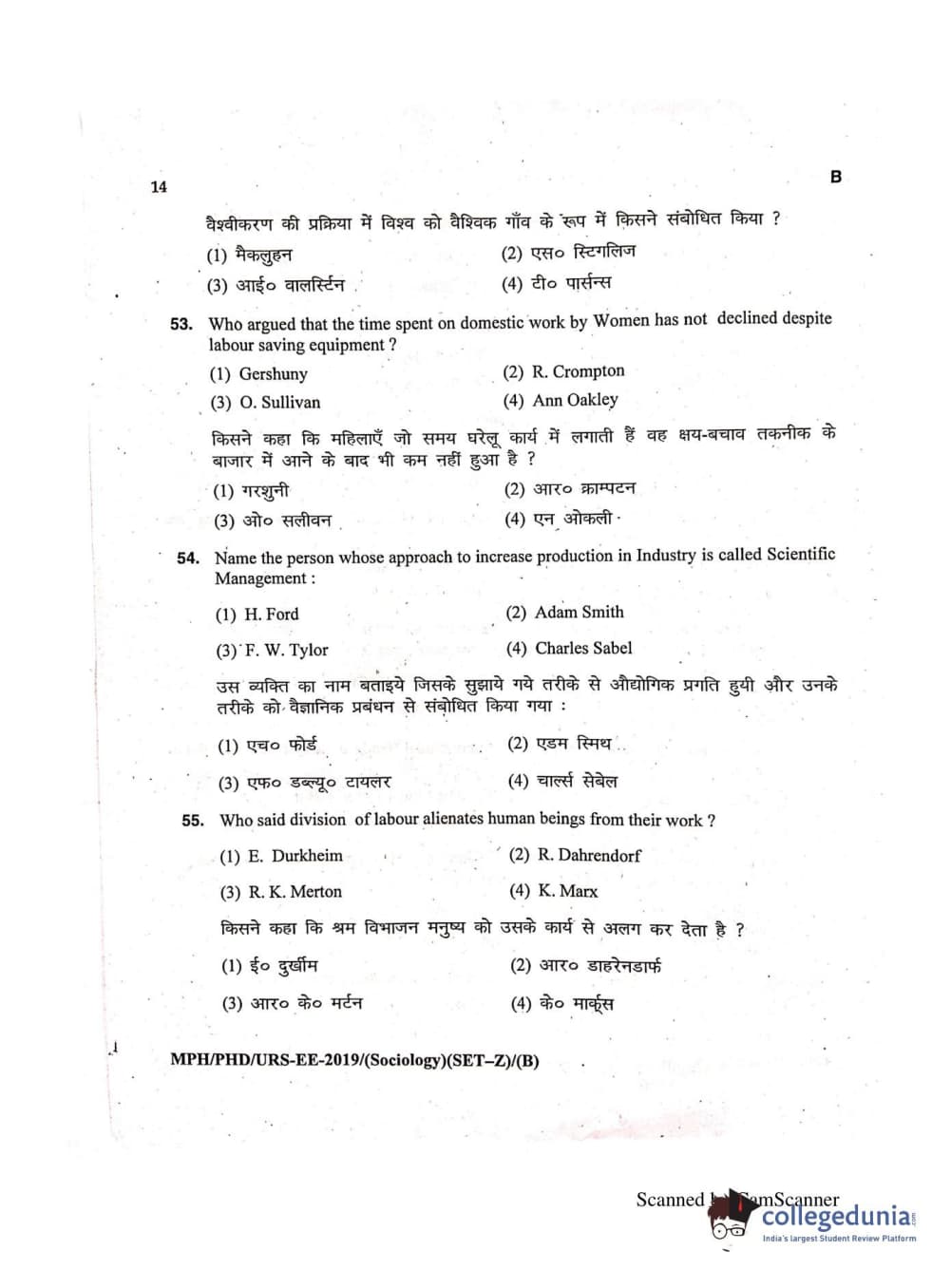 MDUCEE 2019 Ph.D./M.Phil./URS Sociology Set B Question Paper with Answer Key PDFs