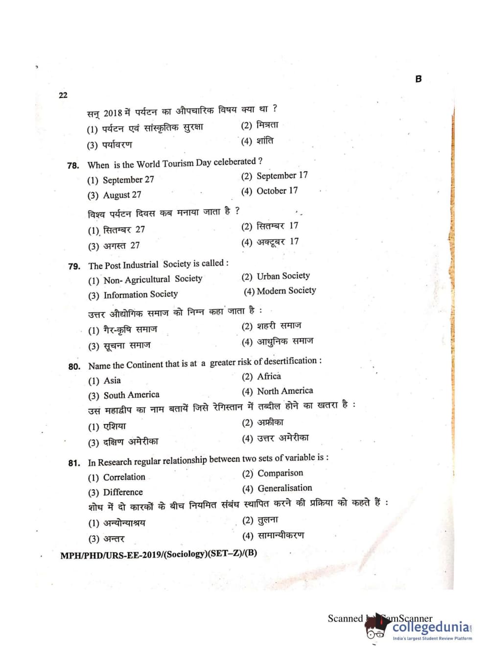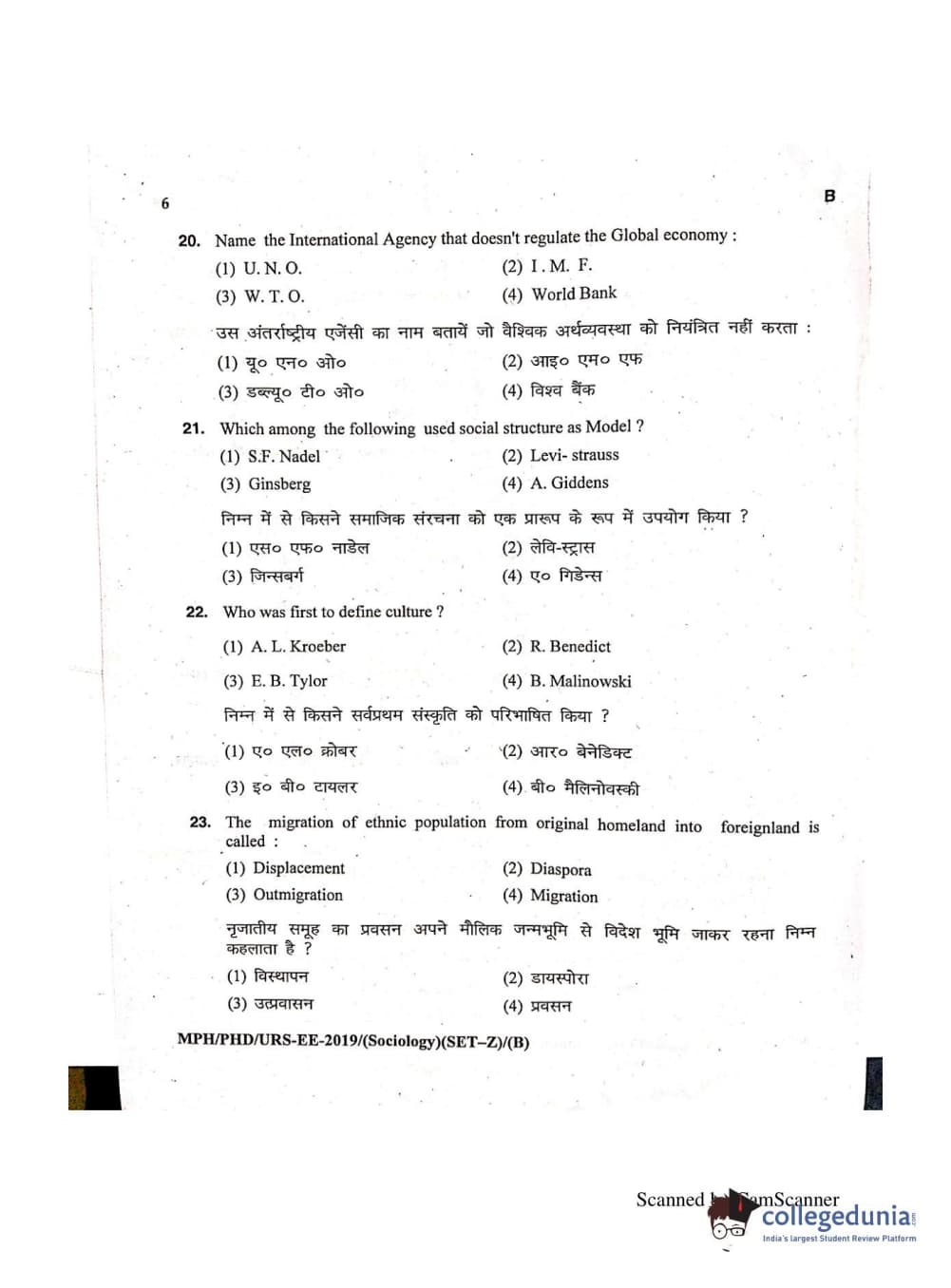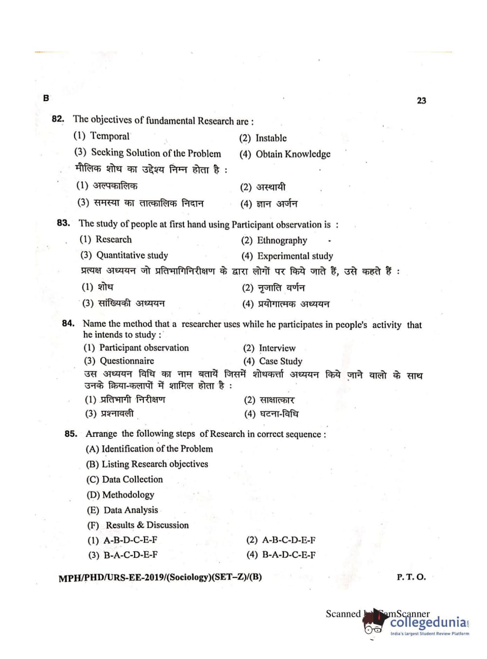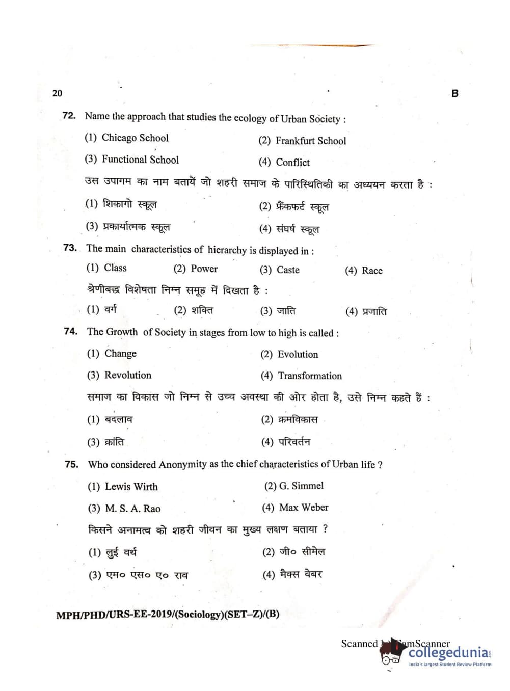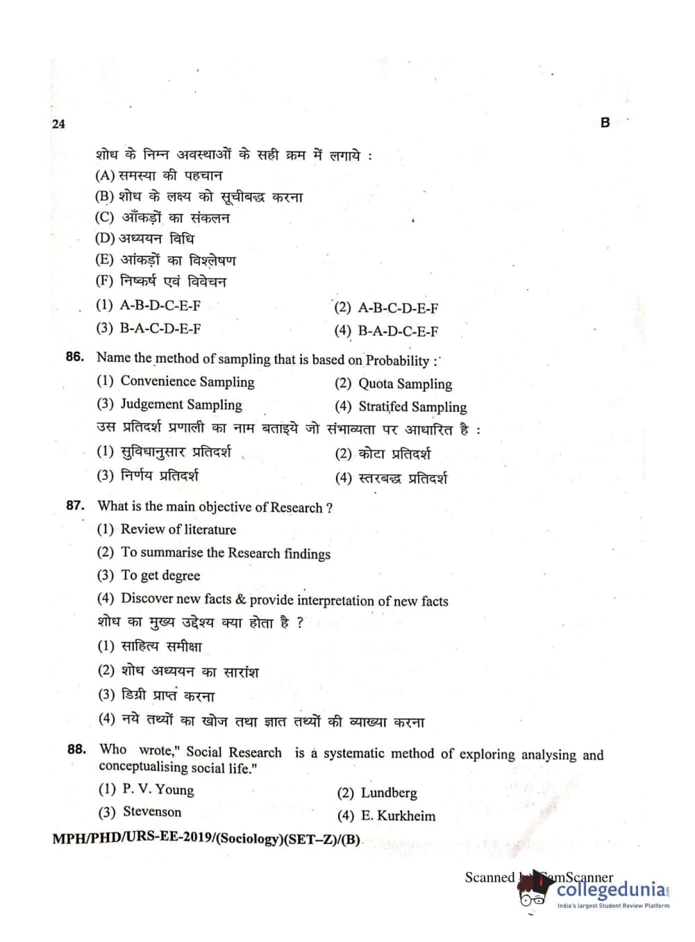 MDUCEE 2019 Ph.D./M.Phil./URS Sociology Set B Question Paper with Answer Key PDFs
