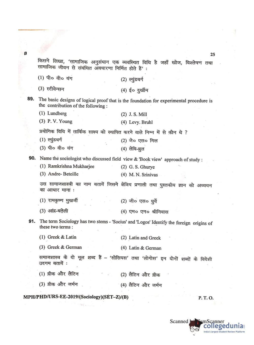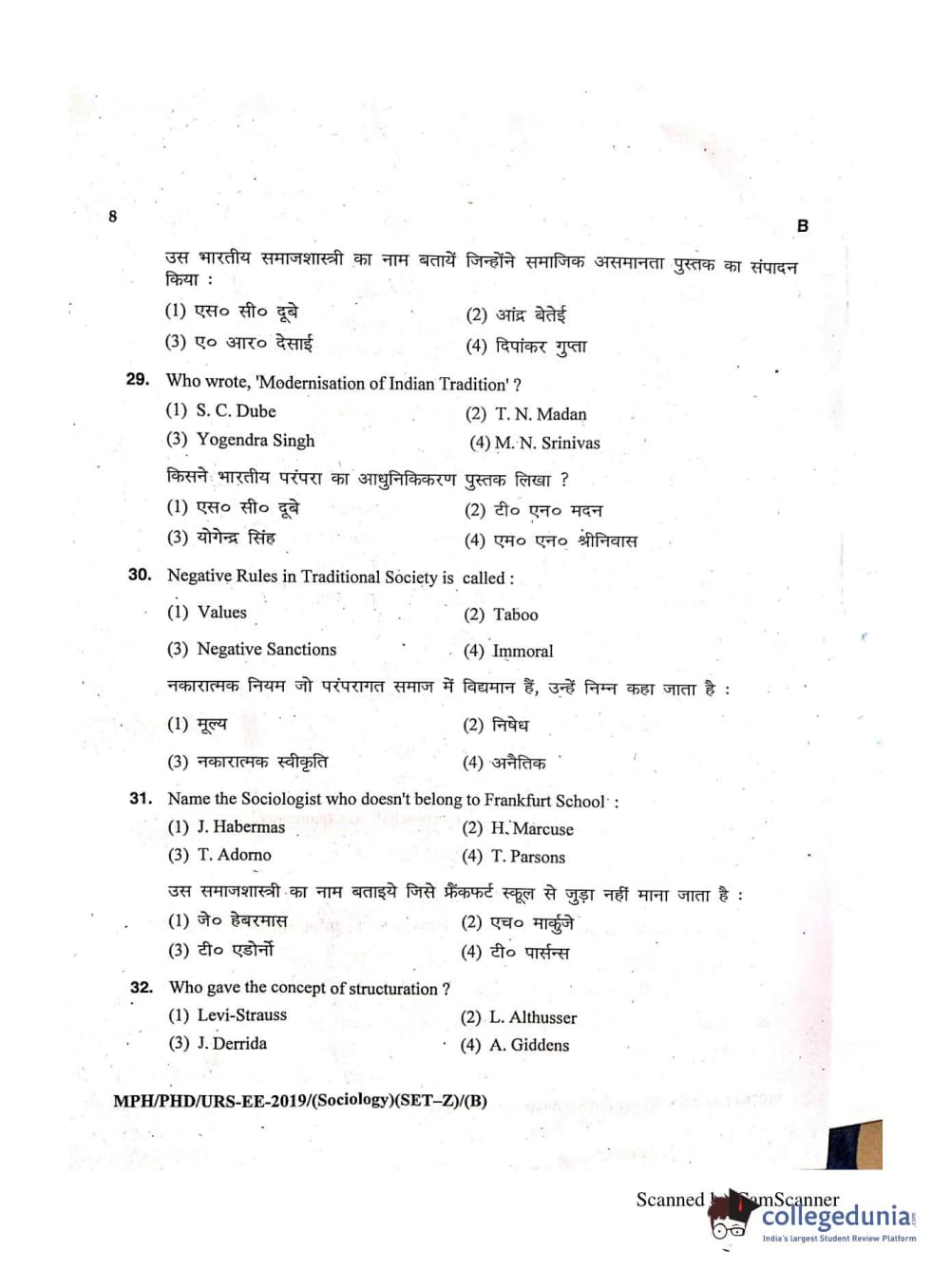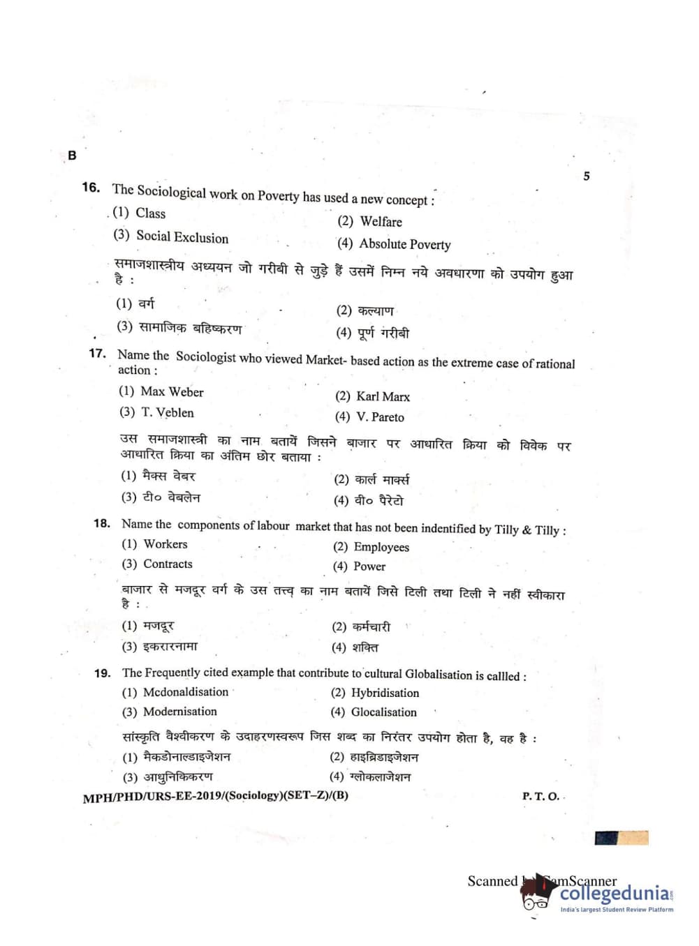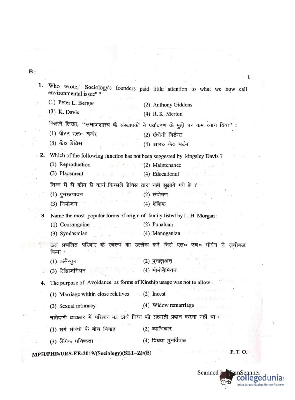 MDUCEE 2019 Ph.D./M.Phil./URS Sociology Set B Question Paper with Answer Key PDFs