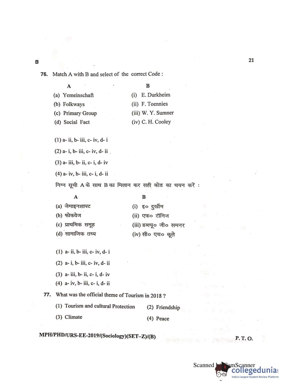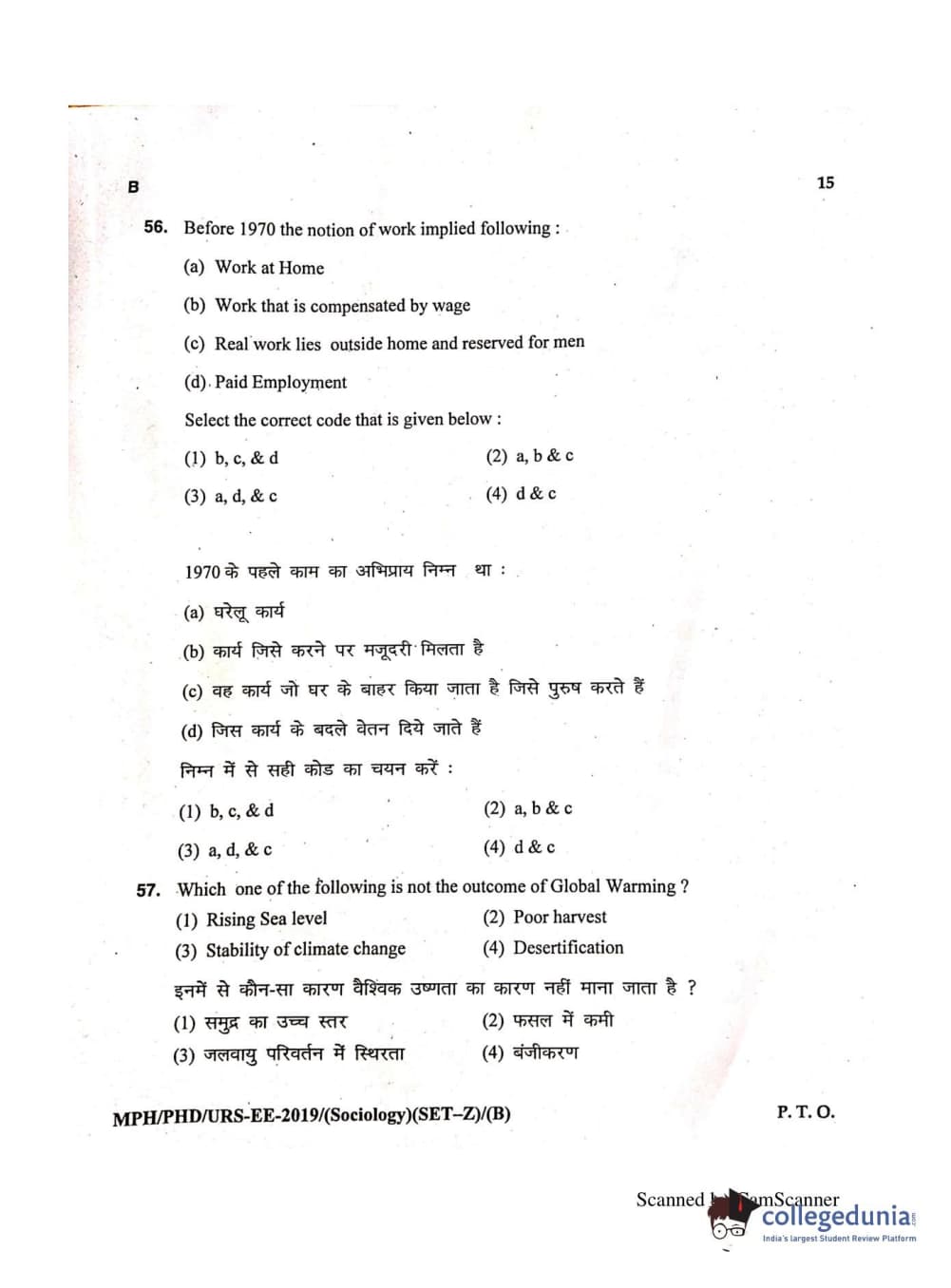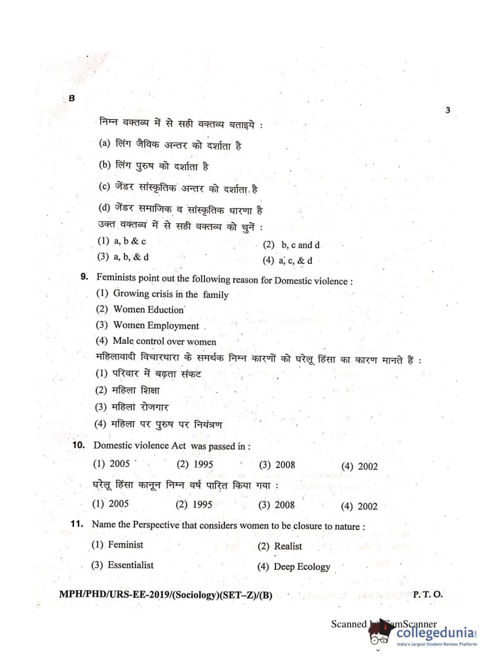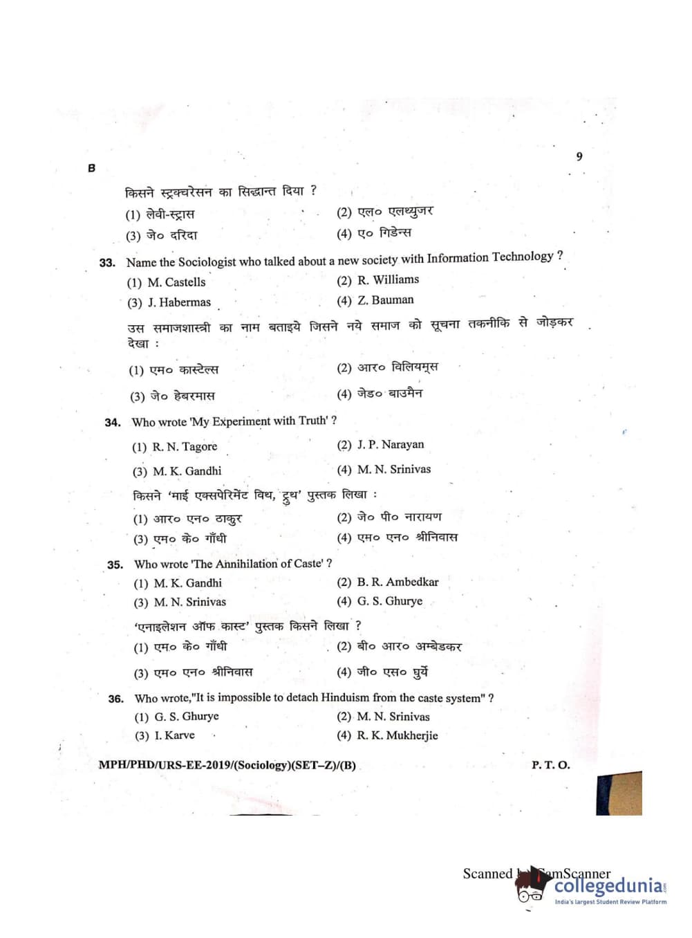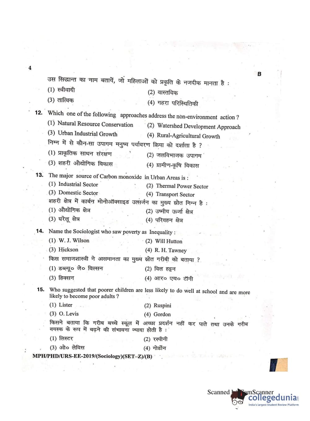 MDUCEE 2019 Ph.D./M.Phil./URS Sociology Set B Question Paper with Answer Key PDFs