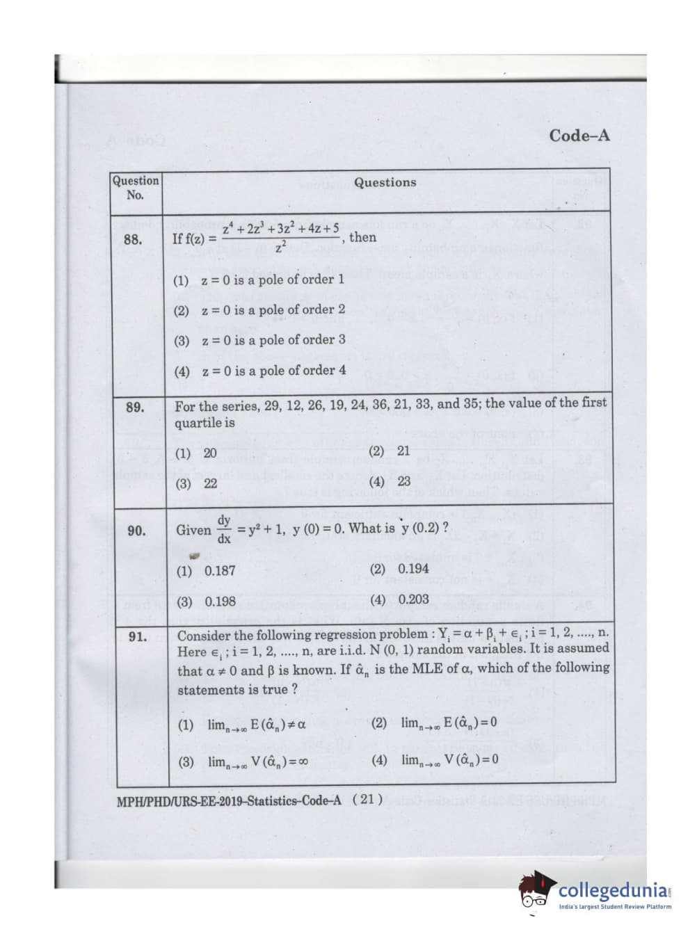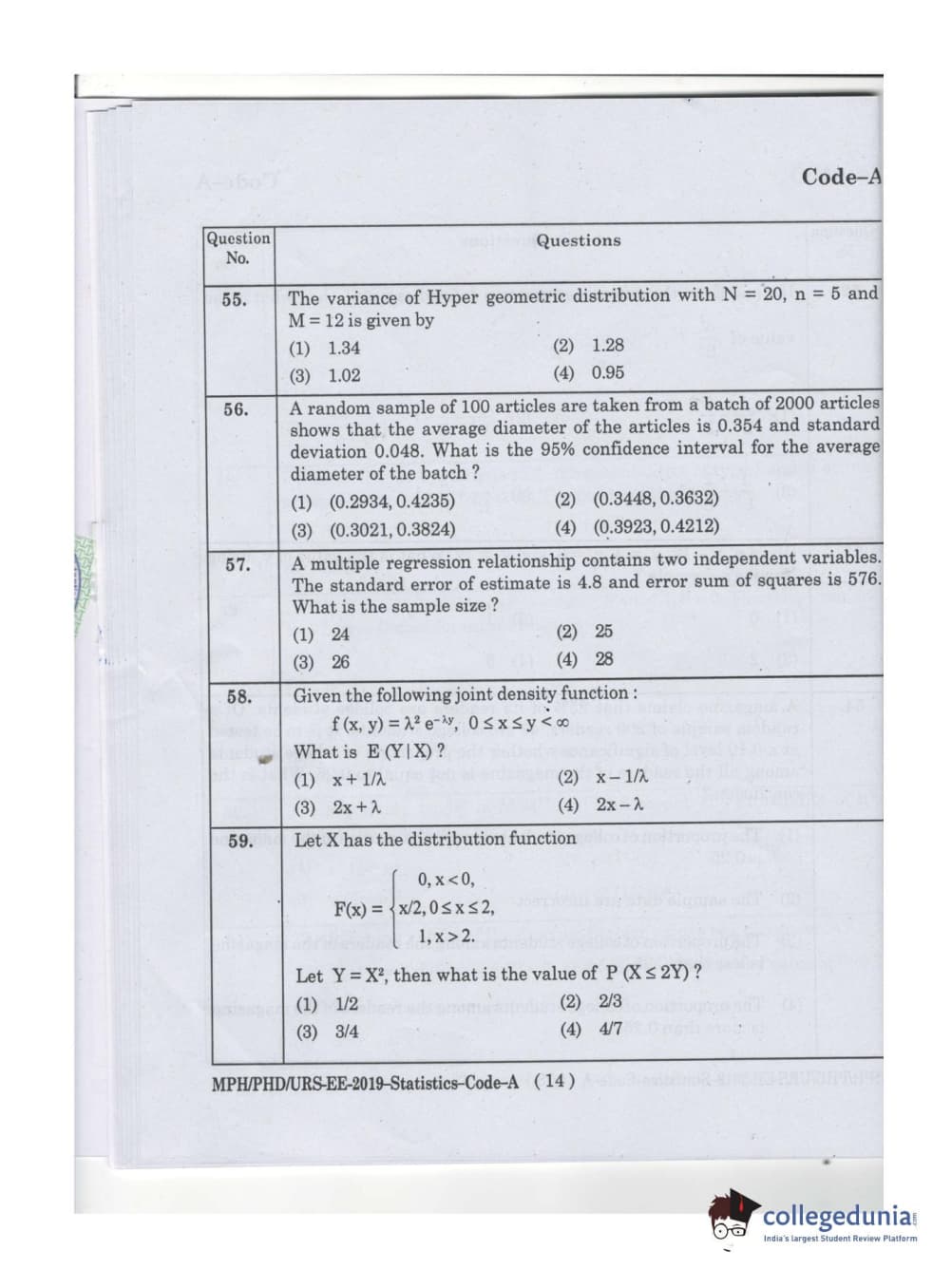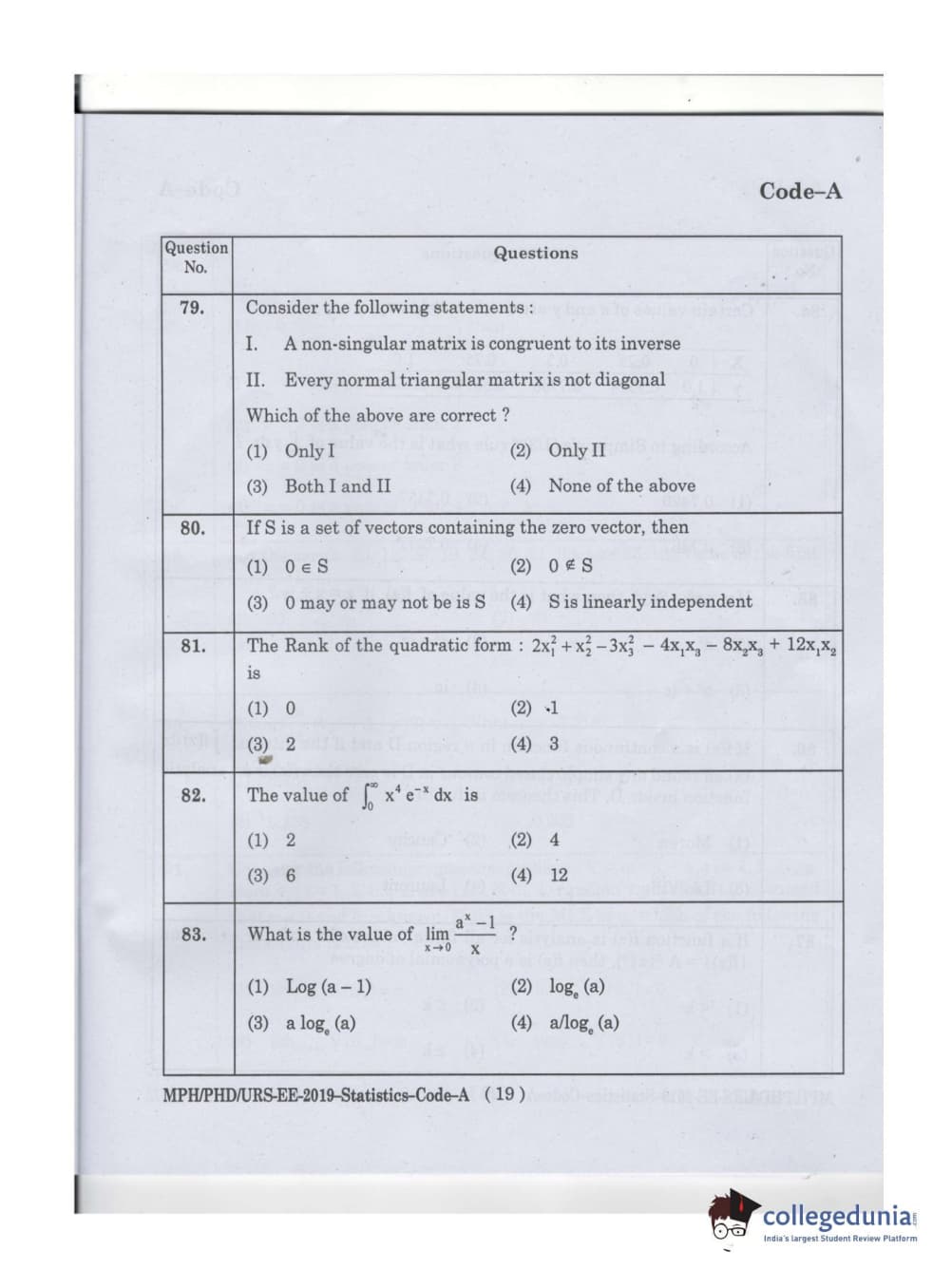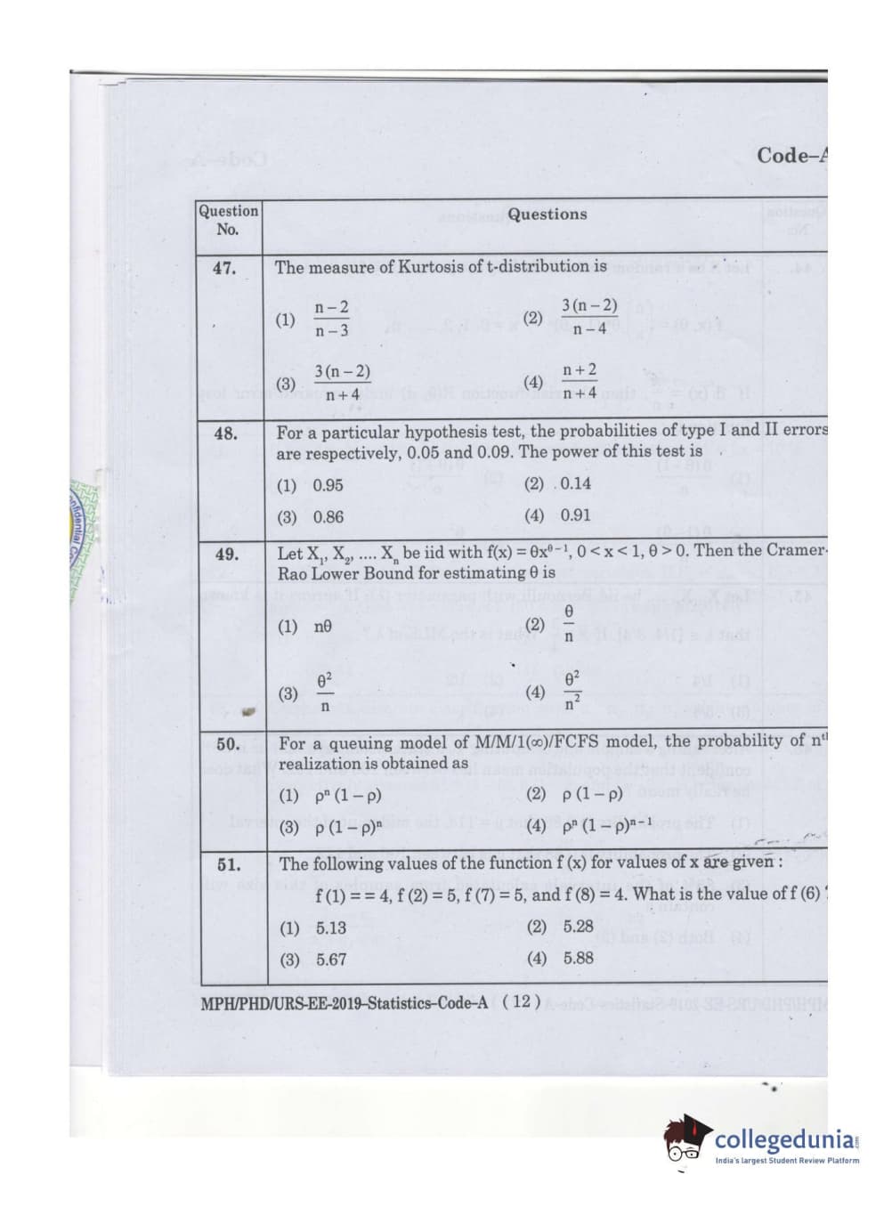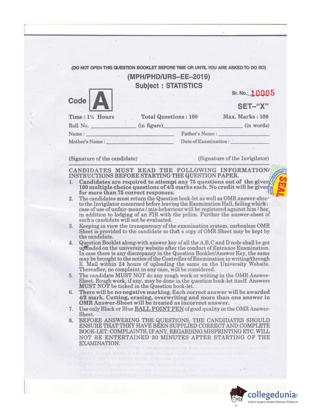 MDUCEE 2019 Ph.D./M.Phil./URS Statistcs Set A Question Paper with Answer Key PDFs