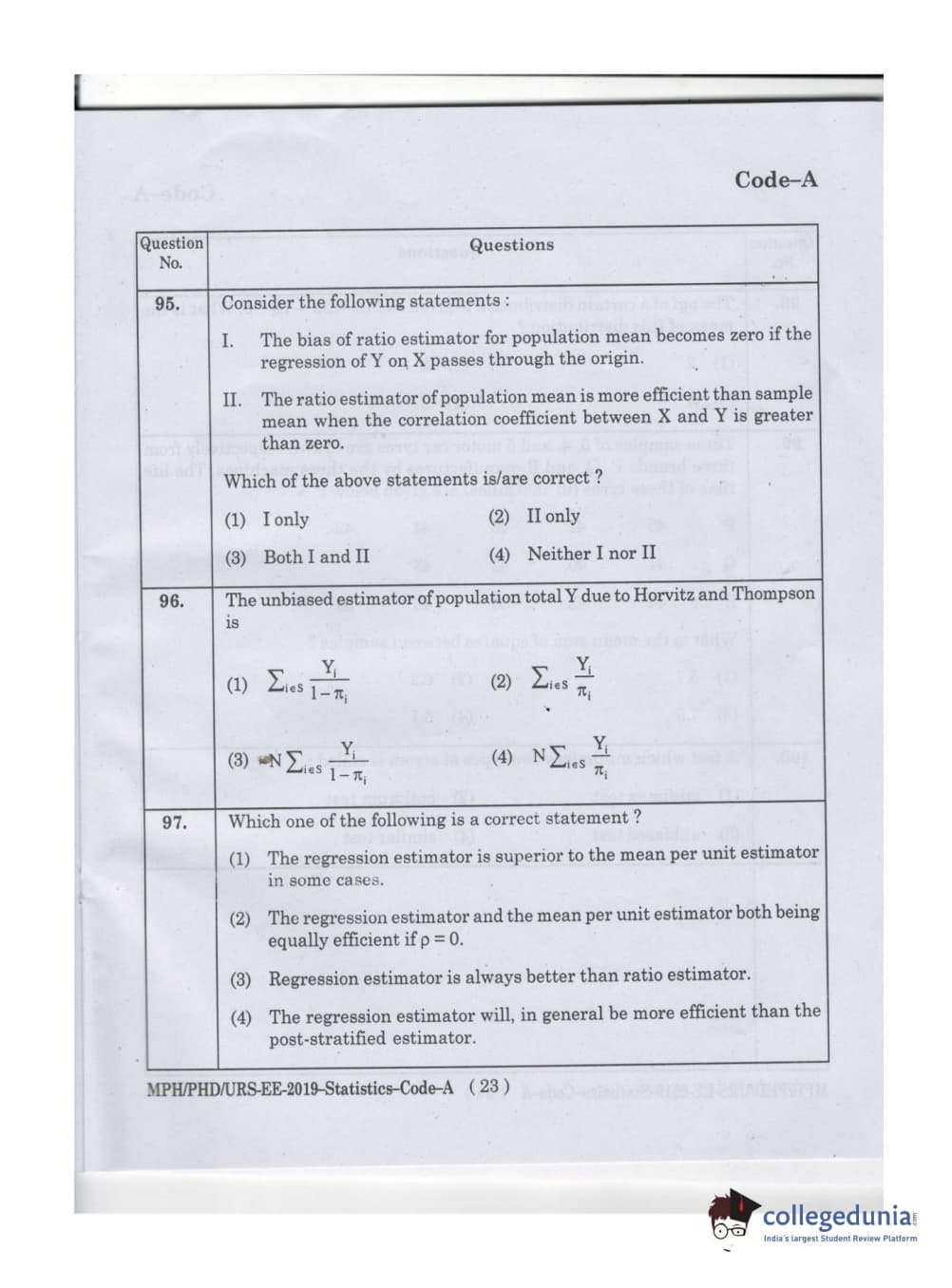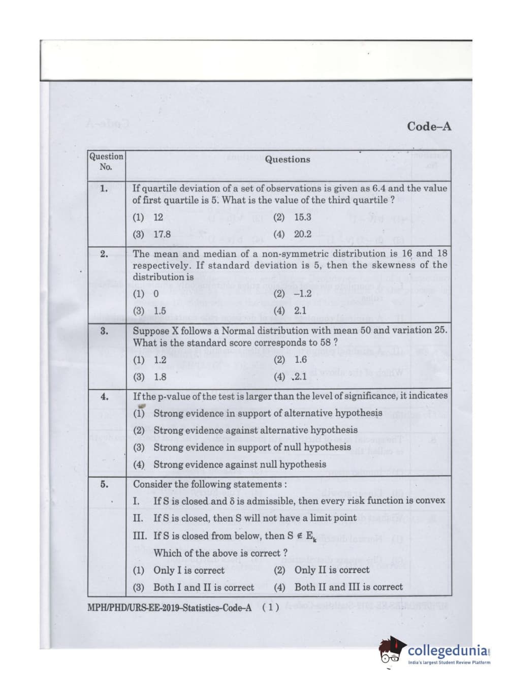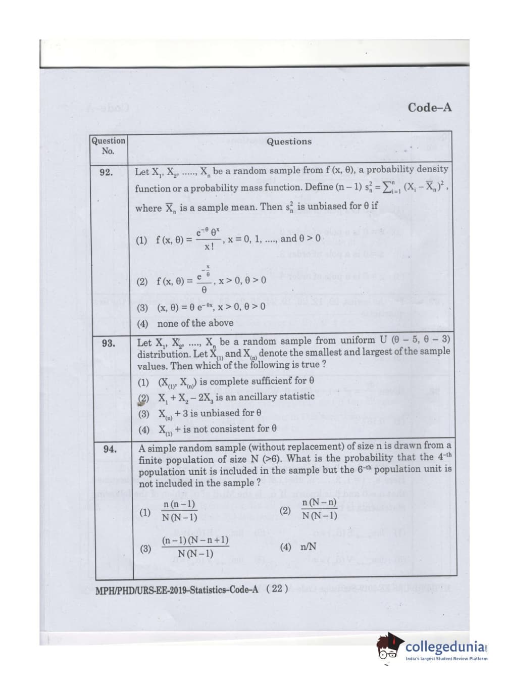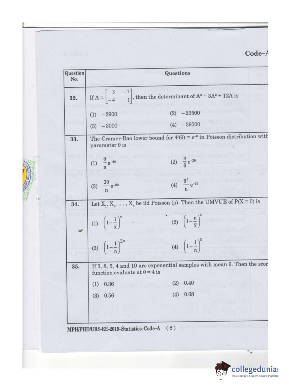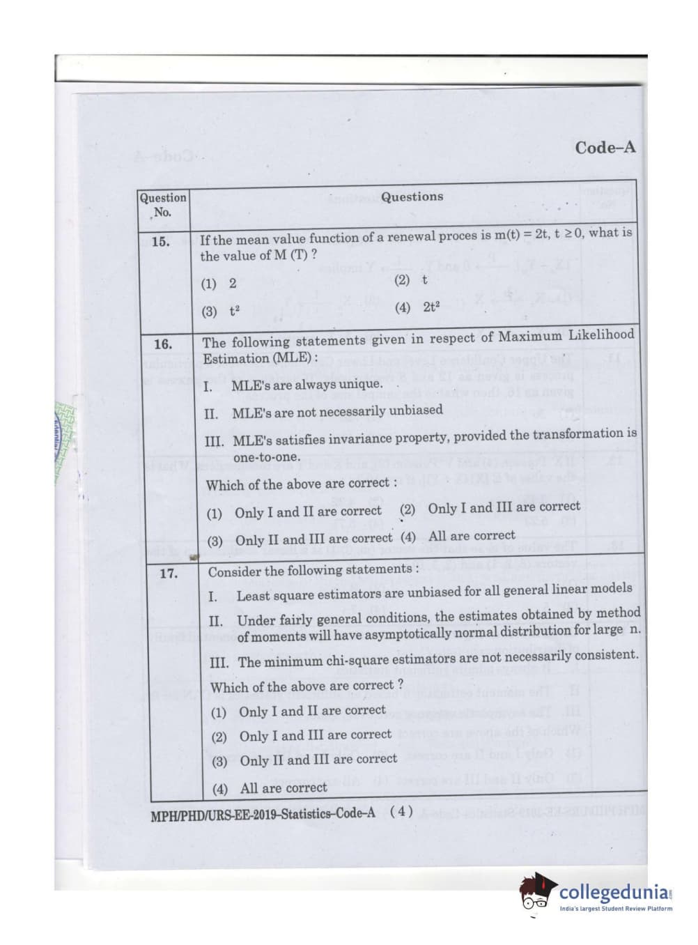 MDUCEE 2019 Ph.D./M.Phil./URS Statistcs Set A Question Paper with Answer Key PDFs