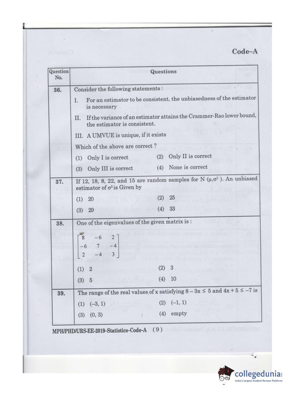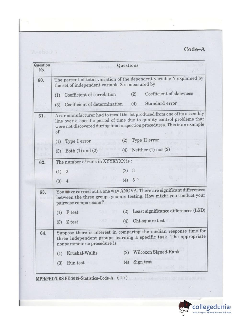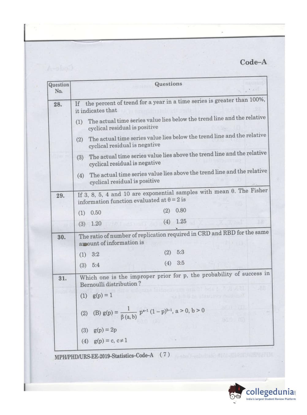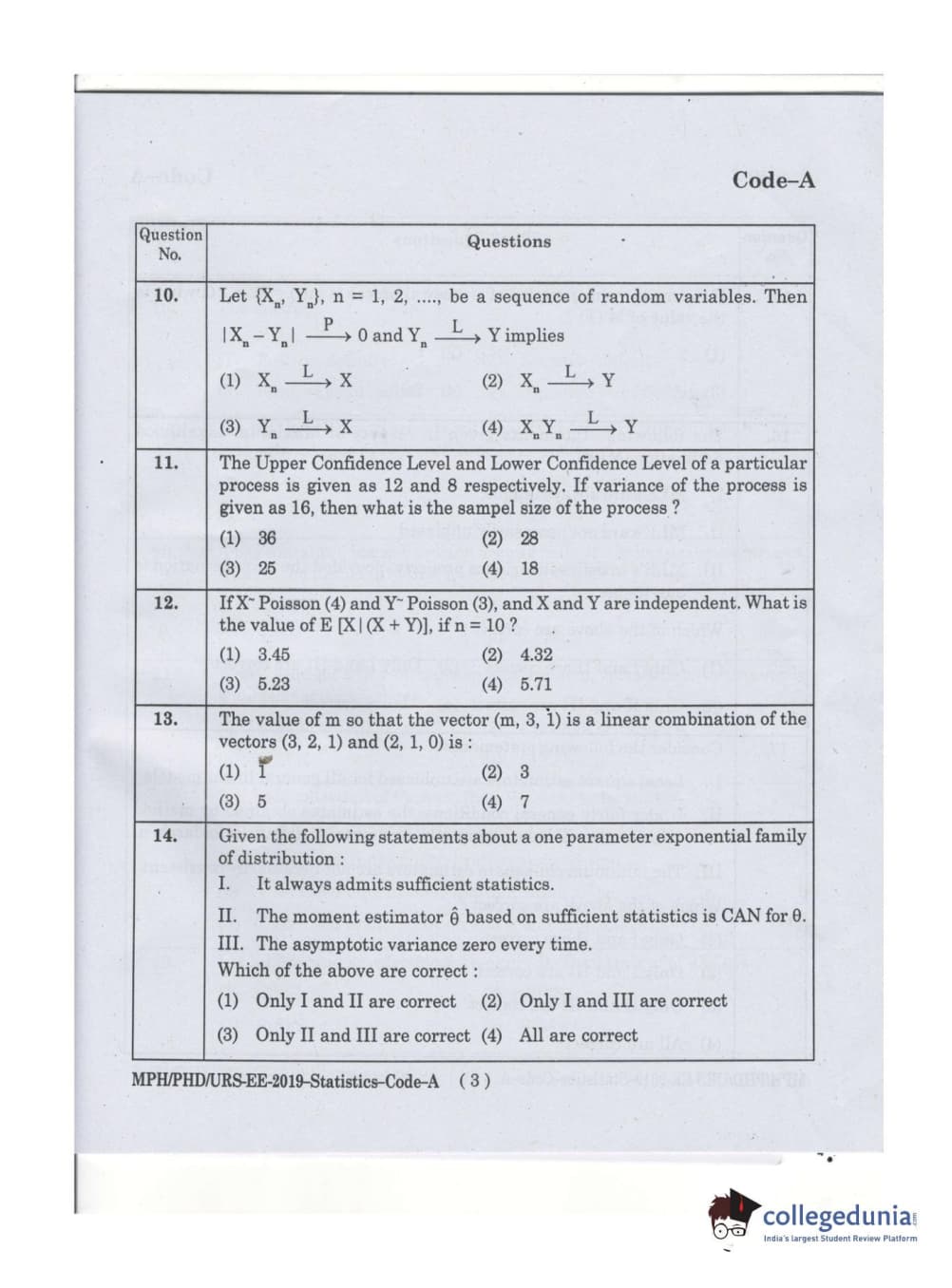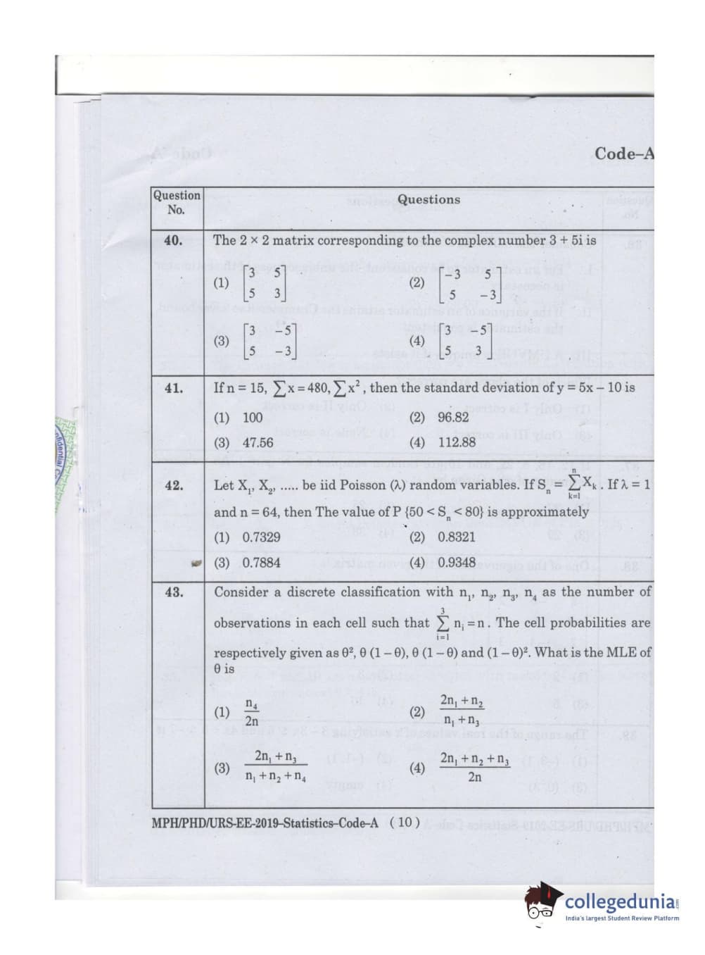 MDUCEE 2019 Ph.D./M.Phil./URS Statistcs Set A Question Paper with Answer Key PDFs