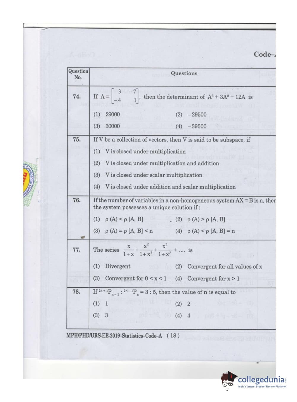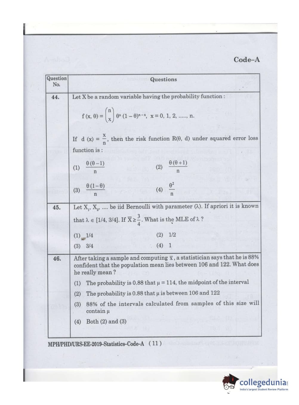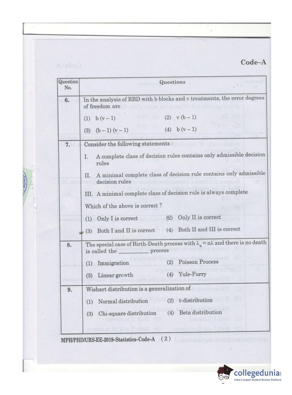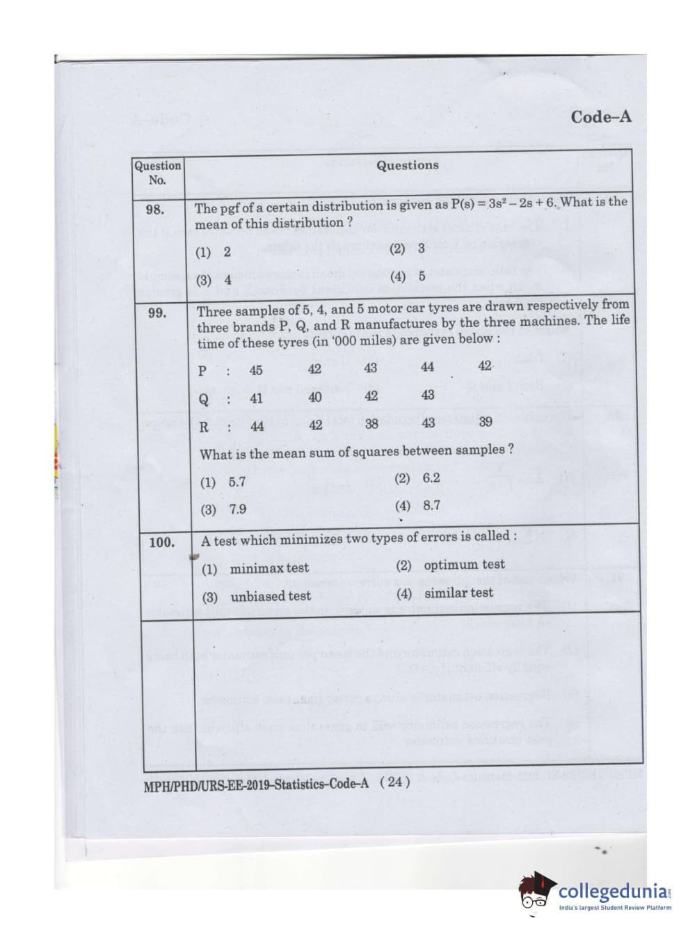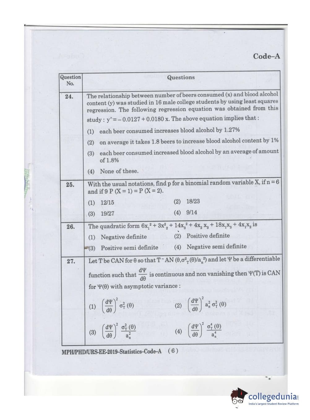 MDUCEE 2019 Ph.D./M.Phil./URS Statistcs Set A Question Paper with Answer Key PDFs