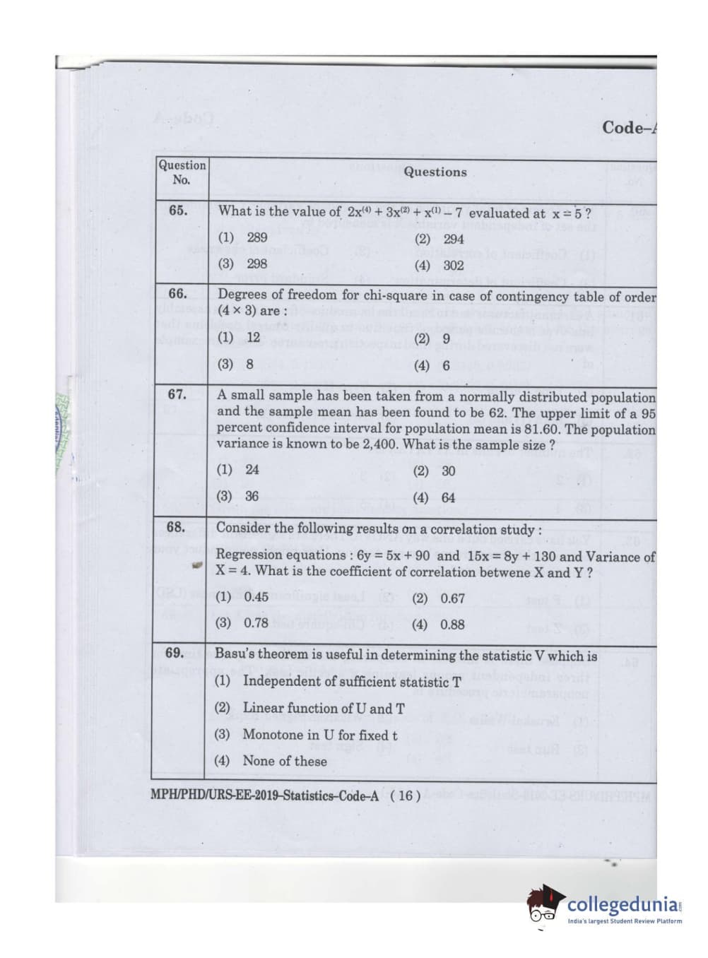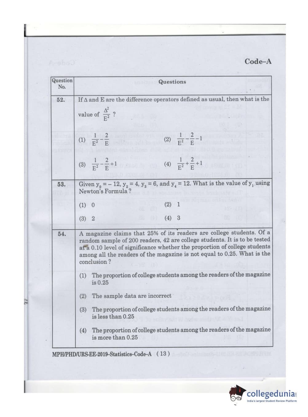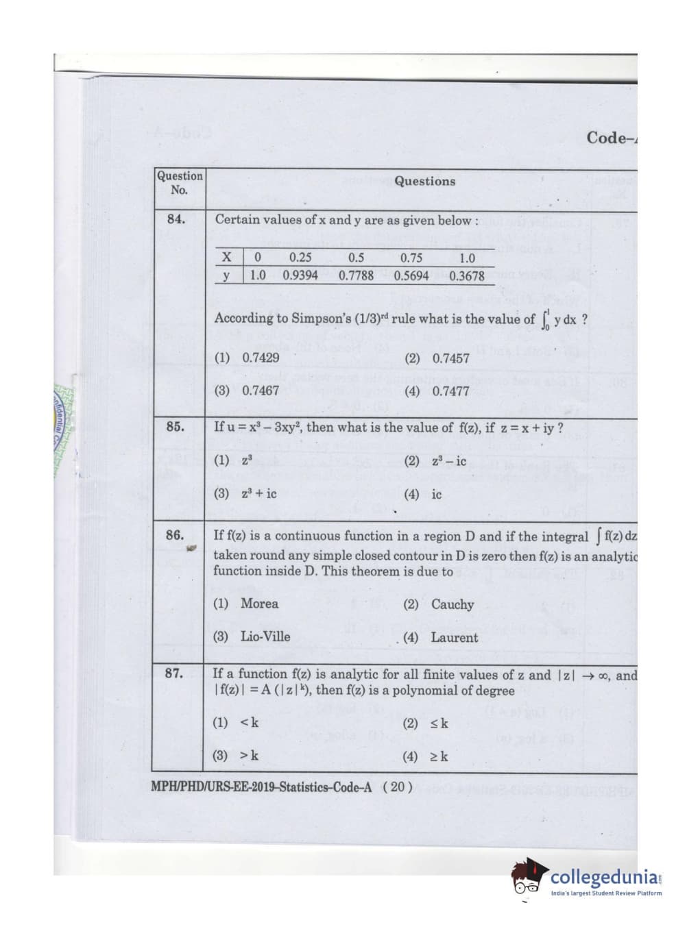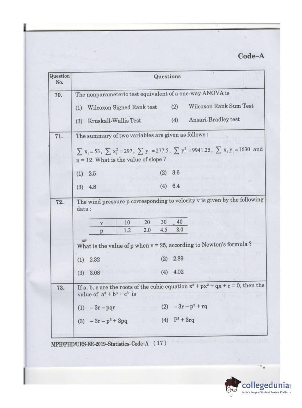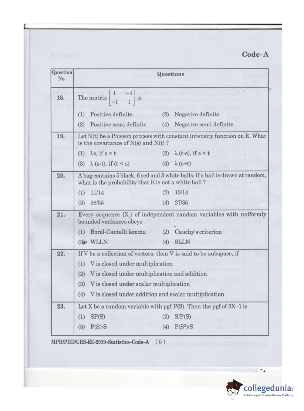 MDUCEE 2019 Ph.D./M.Phil./URS Statistcs Set A Question Paper with Answer Key PDFs