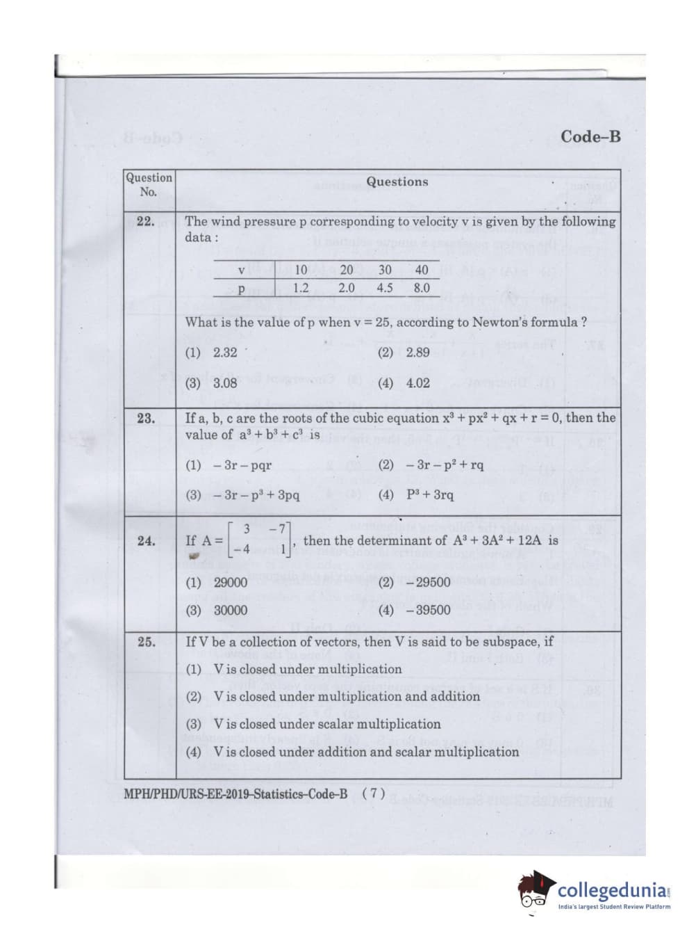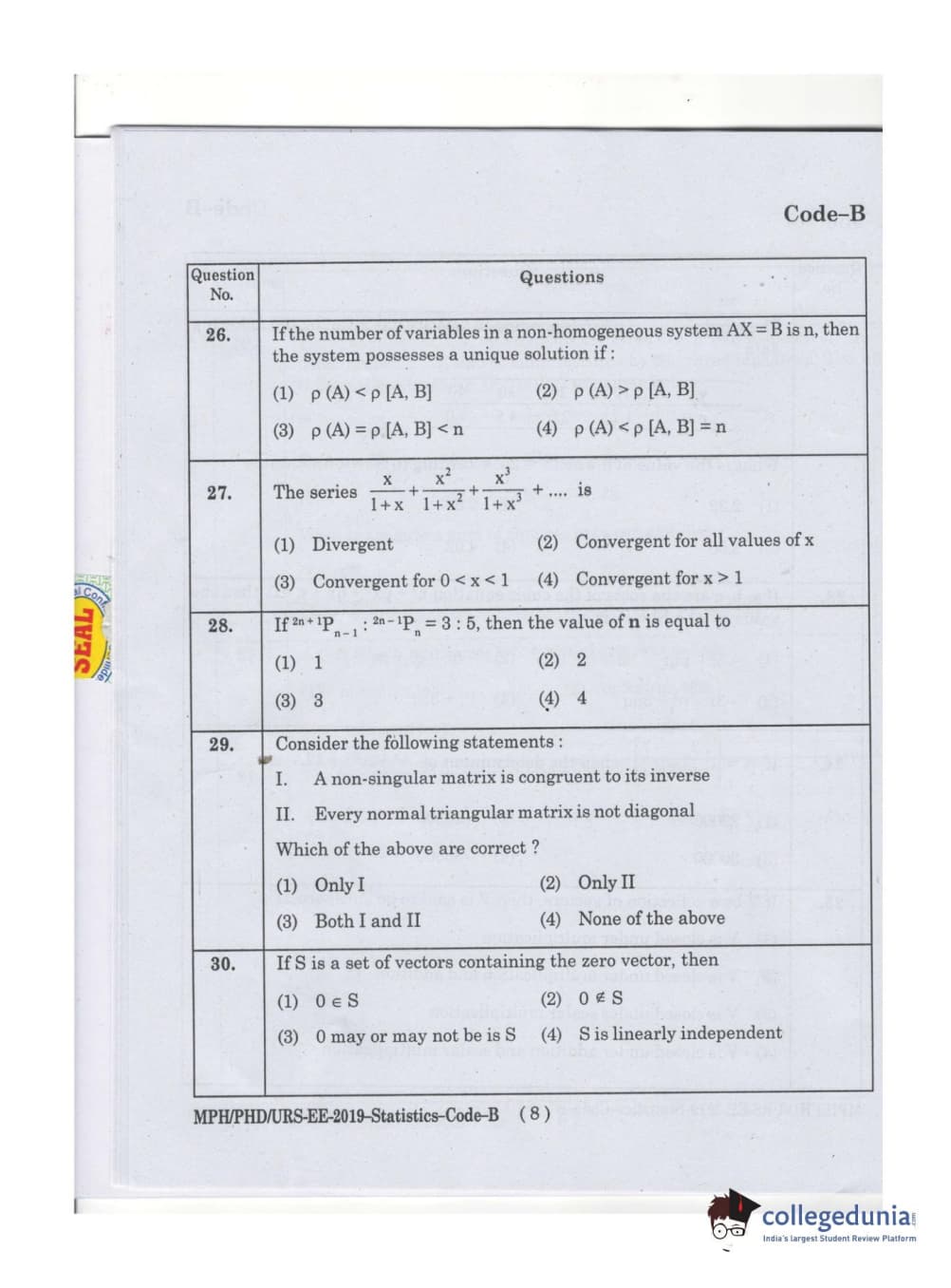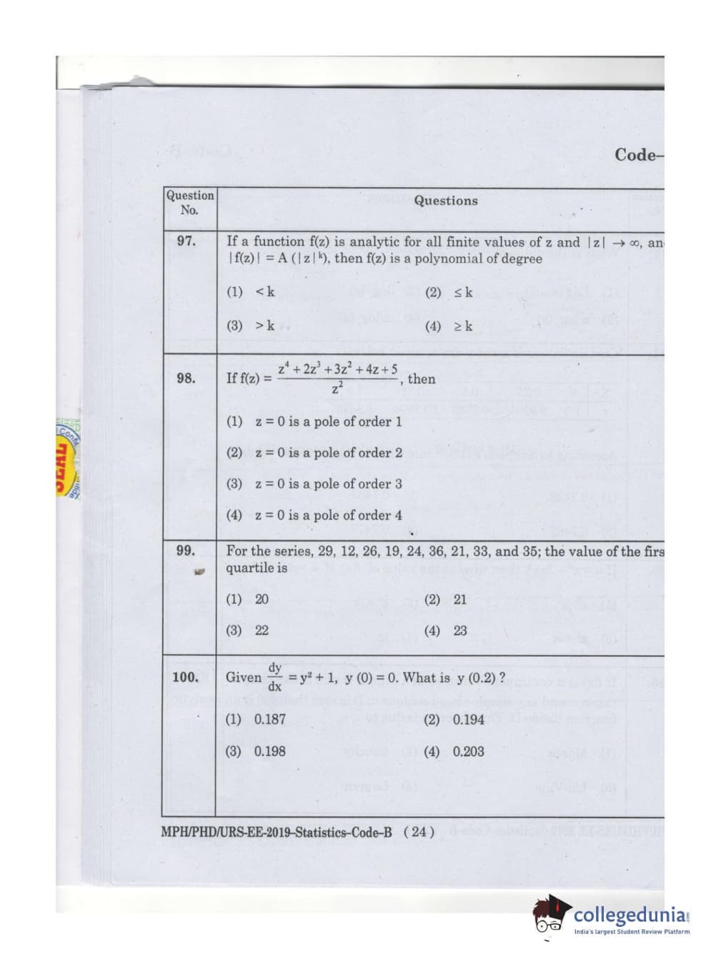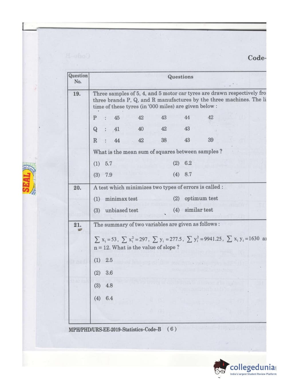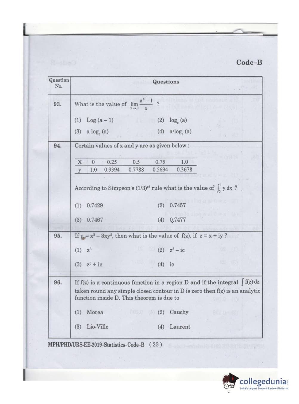 MDUCEE 2019 Ph.D./M.Phil./URS Statistcs Set B Question Paper with Answer Key PDFs