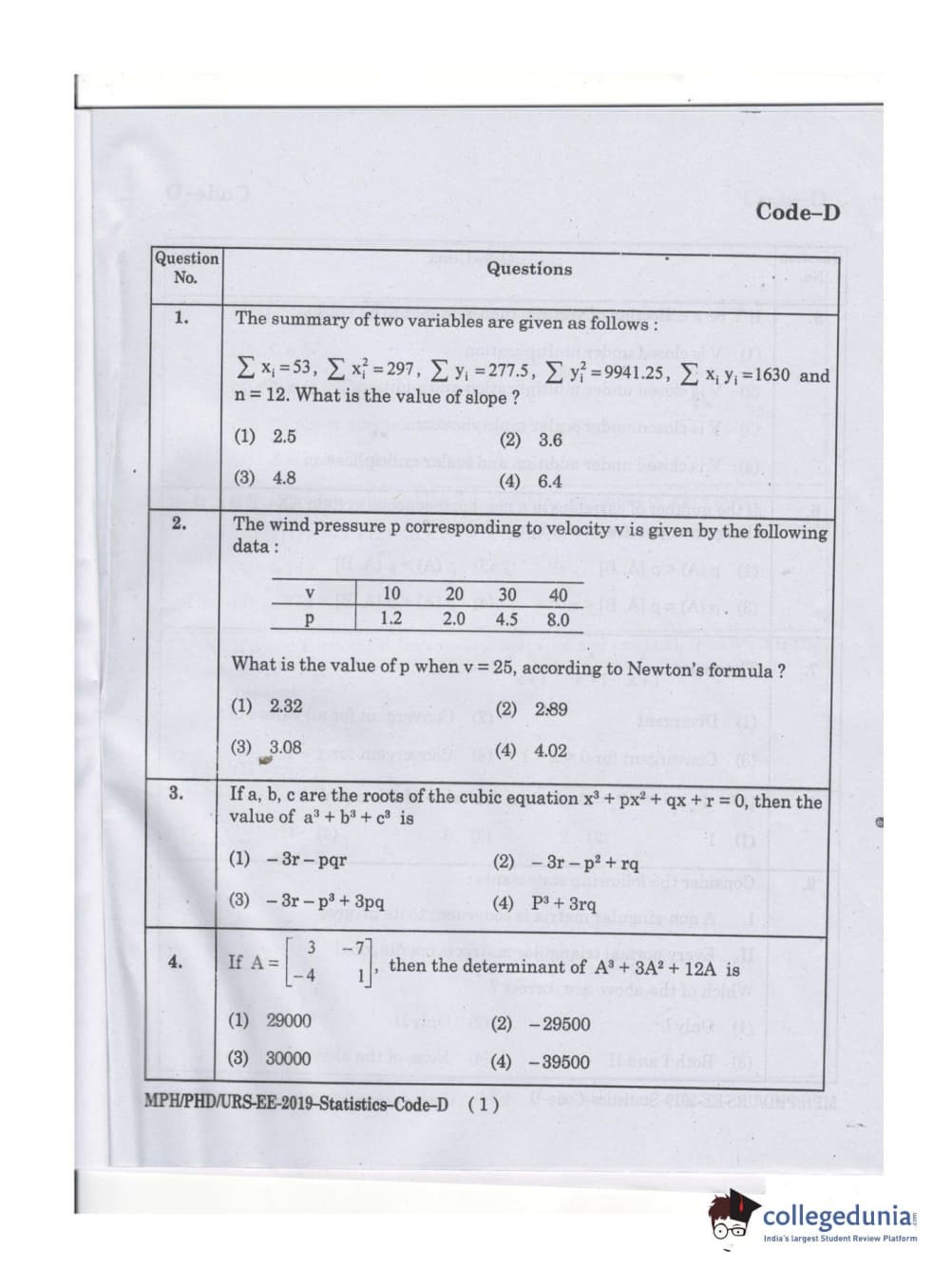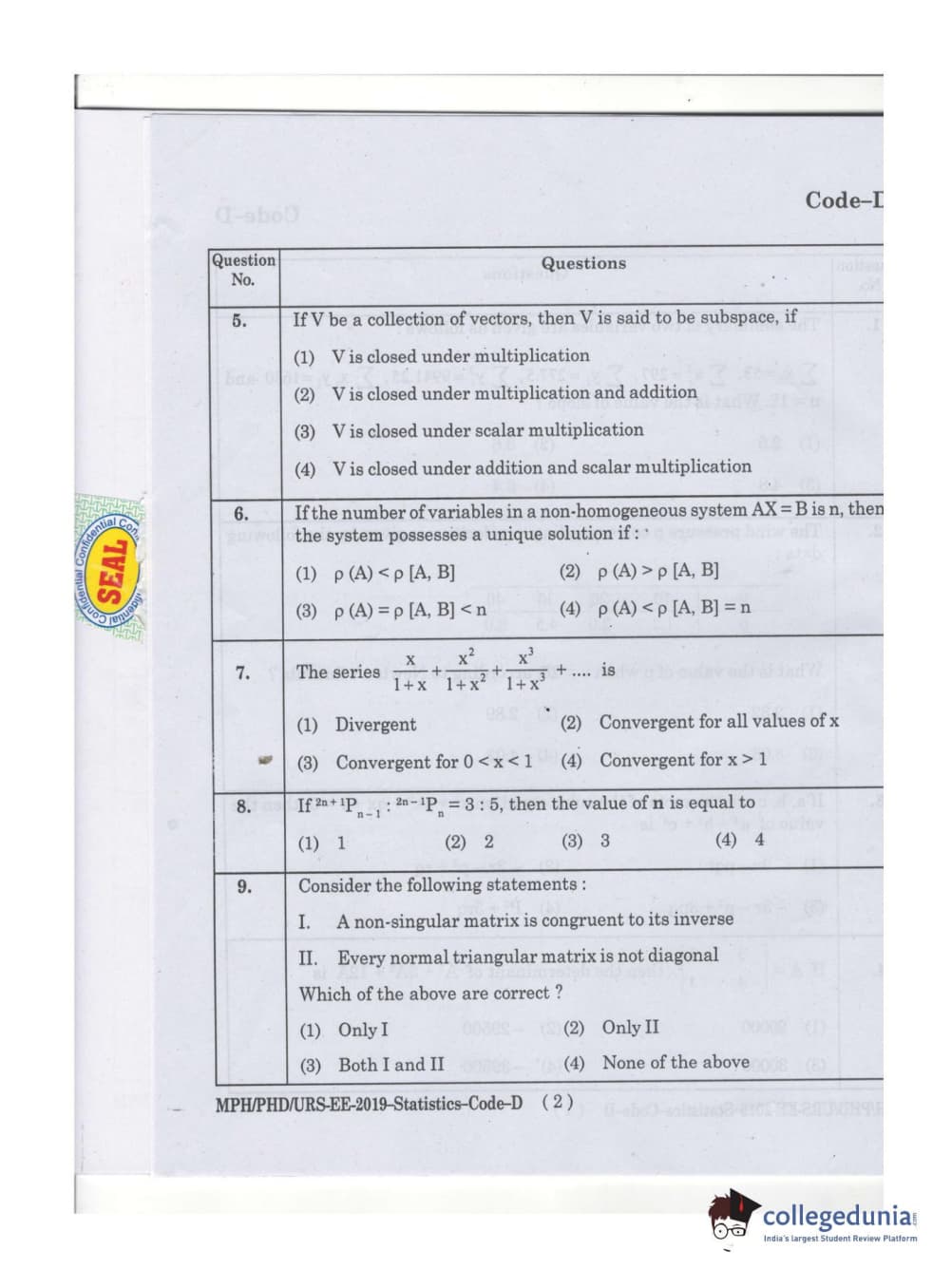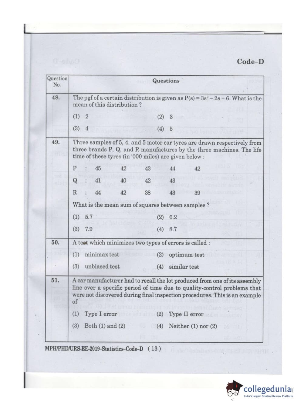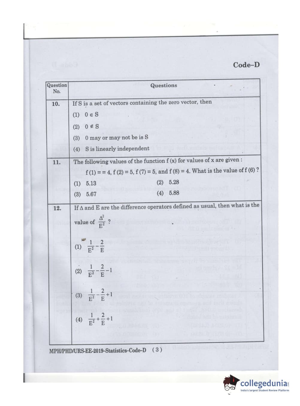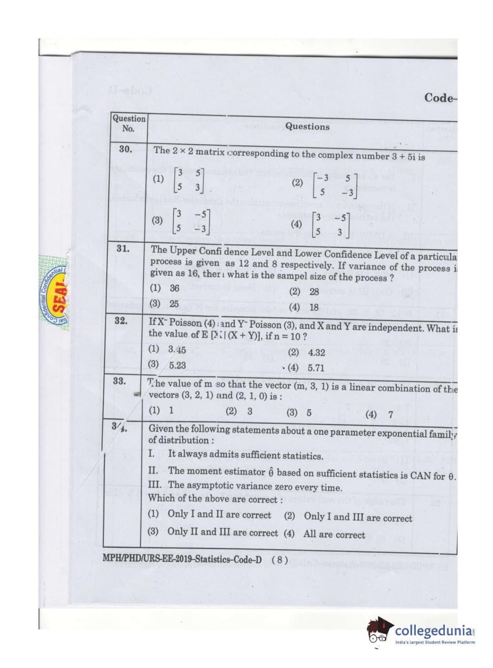 MDUCEE 2019 Ph.D./M.Phil./URS Statistcs Set D Question Paper with Answer Key PDFs
